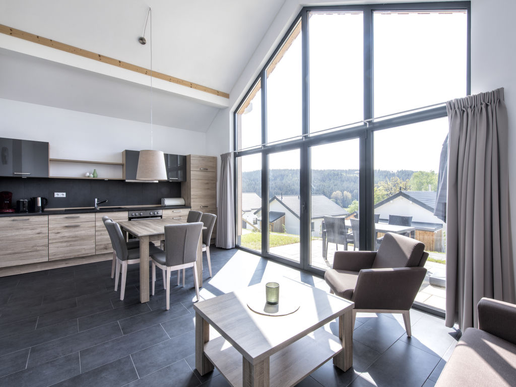 Obernsees 7 km von Mistelgau: Kinderfreundliche, moderne Ferienanlage Feriendorf an der Therme Obernsees. Ausserhalb des Ortes, 2 km vom Zentrum von Obernsees, ruhige, sonnige, erhöhte Lage am Hang, 100 m vom Waldrand, in einer Sackgasse. Zur Mitbenutzung: Kinderspielplatz (Rutschbahn, Schaukel, Sandkasten). Zur Alleinbenutzung: kleiner Garten mit Rasen. In der Anlage: Empfang, Zentralheizung. Einkaufsgeschäft 6 km, Lebensmittelgeschäft 6 km, Supermarkt 6 km, Restaurant 2 km, Bar 6 km, Bäckerei 750 m, Café 6 km, Bushaltestelle Therme Obernsee 600 m, Bahnstation Bayreuth 17 km, Freibad 12 km, Thermalbad Therme Obernsees 1 km. Wanderwege ab Haus, Radweg 100 m. Bekannte Skigebiete sind gut erreichbar: Fichtelgebirge 38 km. Bitte beachten: Fahrzeug empfohlen. Das Foto ist nur ein Hausbeispiel. Alle Häuser/Wohnungen sind individuell eingerichtet. Direkt am in der Fränkischen Schweiz liegenden Feriendorf verlaufen ein Radweg sowie Einstiegsmöglichkeiten in unzählige Kurz- und Weitwanderwege sowie Nordic-Walking-Strecken. REISEN UND SPAREN: Der Eintritt (täglich 2 Stunden, auch am An- und Abreisetag) in die Badewelt/Thermalbad der Therme Obernsees und die Erlebniscard mit zahlreichen Ermässigungen in der Region sind im Mietpreis bereits enthalten.
