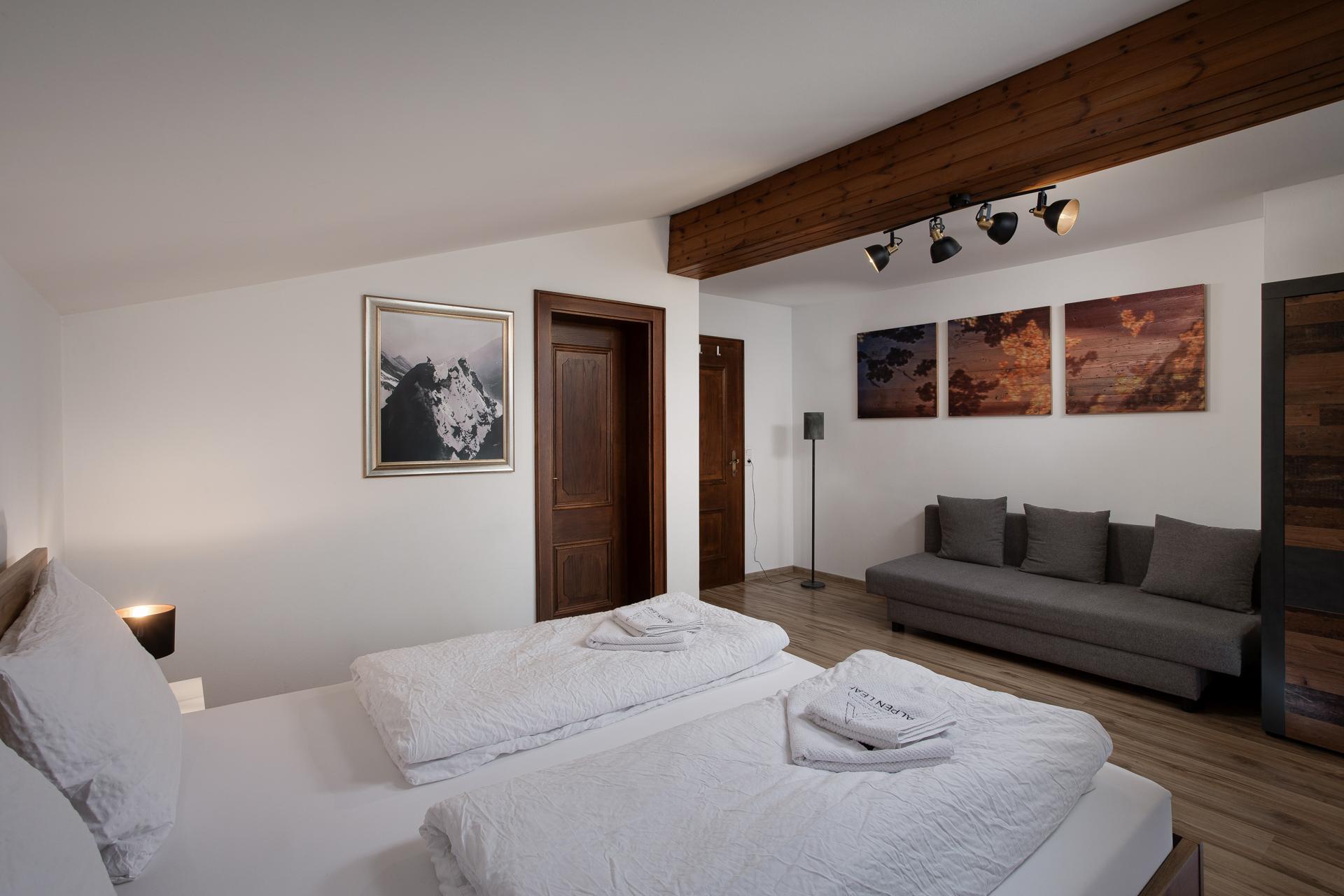 Lassen Sie sich bei freiem Blick auf die Bergwelt inspirieren und genießen Sie schon am Morgen das Gefühl, über allen Dingen zu stehen! Das Apartment BIRD’S VIEW bietet Ihnen mit dem großzügigen Wohnbereich, zwei getrennten Schlafräumen (einer davon mit direktem Balkonzugang), einem Einzelzimmer sowie drei Badezimmern Platz zum Durchatmen. Eine komplett ausgestattete Küche und eine Ausziehcouch gehören selbstverständlich auch dazu!