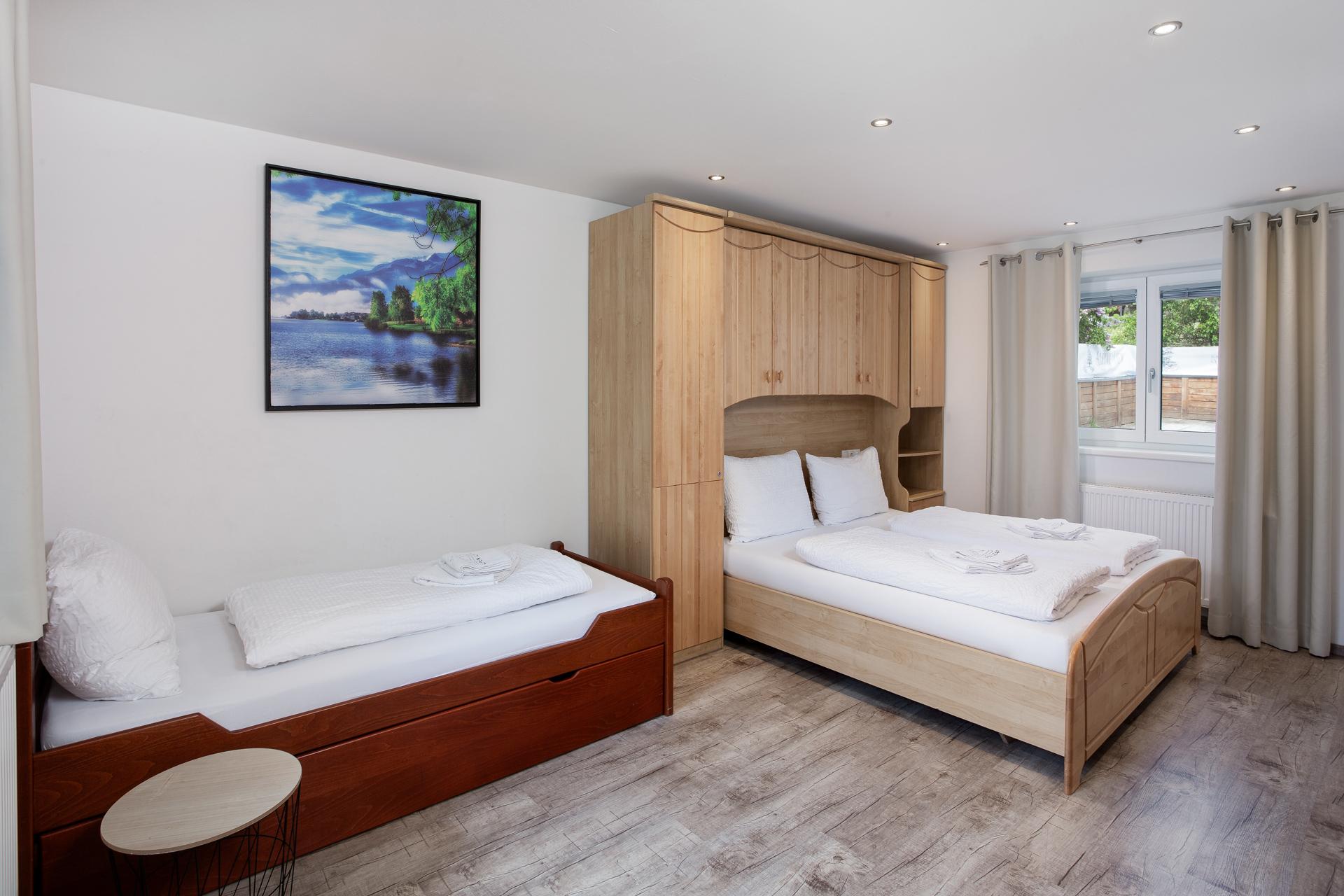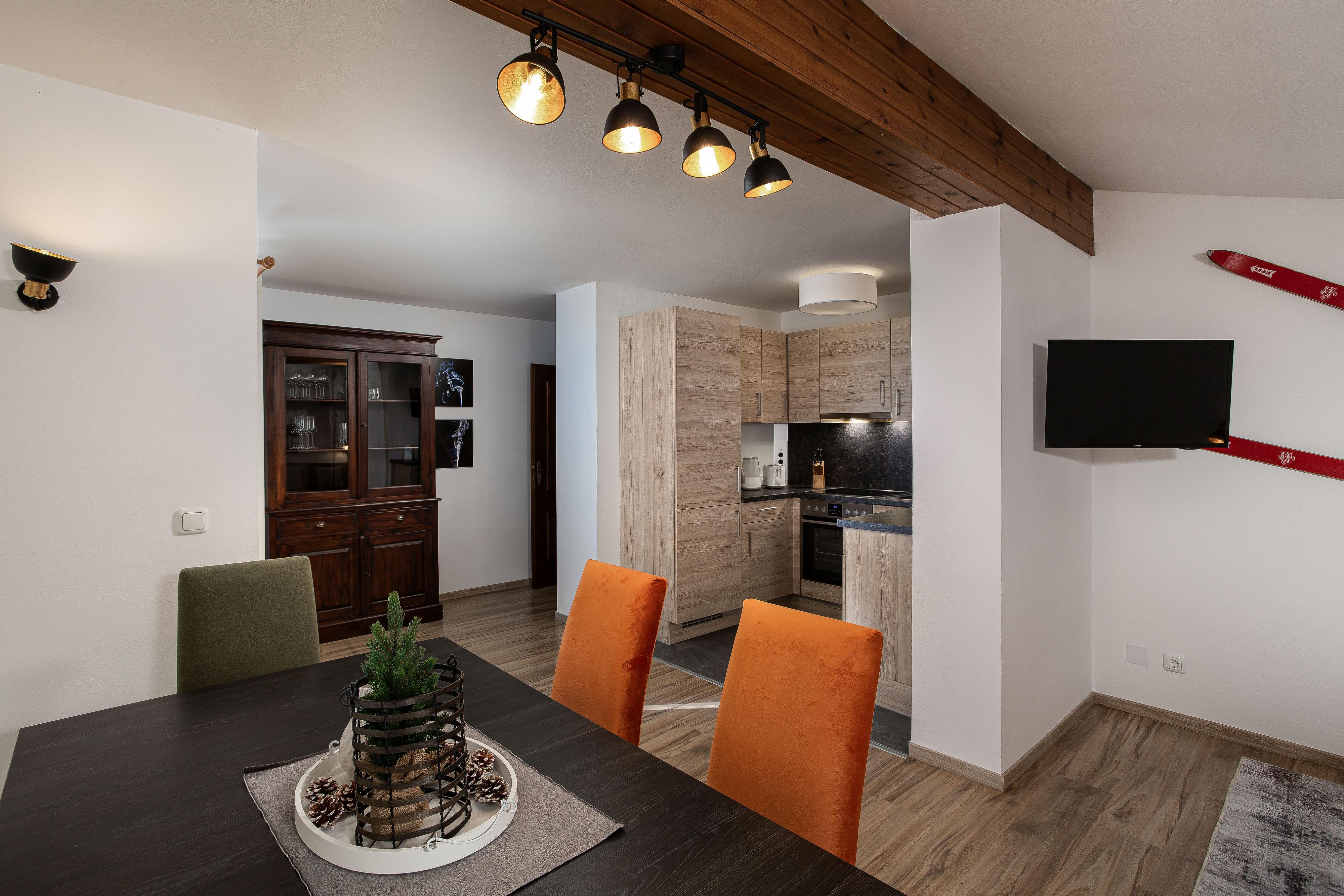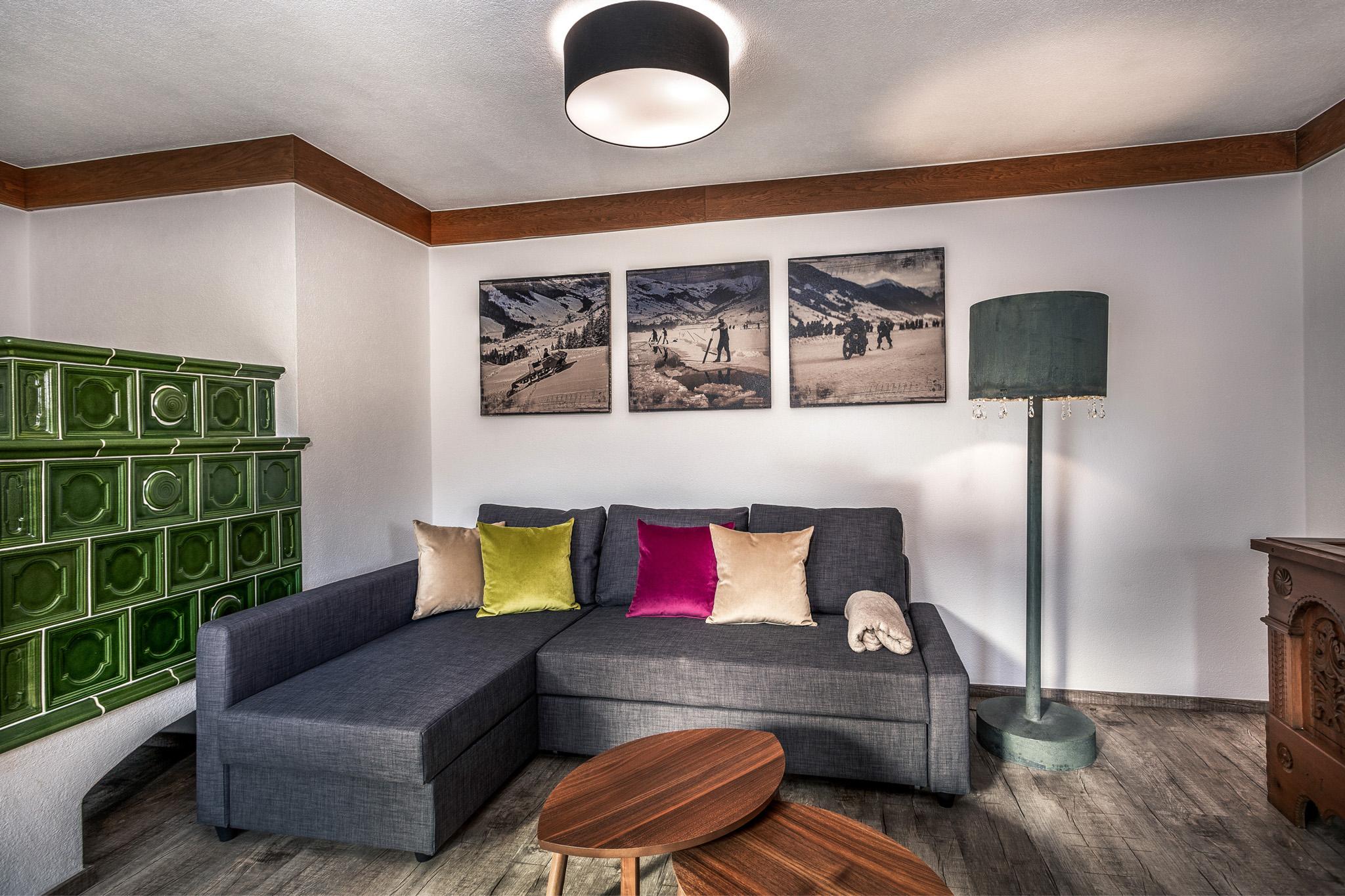 Ob Sie für sich und Ihre Familie ein gemütliches Zuhause auf Zeit suchen oder gemeinsam mit Ihren besten Freunden für ein paar Tage und Nächte das Salzburger Land erkunden wollen – unser Apartment GARDEN VIEW bietet Ihnen den optimalen Ausgangspunkt. Sie verfügen über einen geräumigen Wohnbereich mit einem Sitzerker und Sicht ins Grüne und – für alle Fälle – ein zusätzliches Ausziehsofa. Die drei separaten Schlafzimmer geben genügend Rückzugsraum, eines davon hat auch ein eigenes Badezimmer. Die anderen beiden Schlafräume teilen sich ein gemeinsames Badezimmer. Die hochwertige, komplett ausgestattete Küche bietet Ihnen alle Möglichkeiten zur kreativen Genussentfaltung.