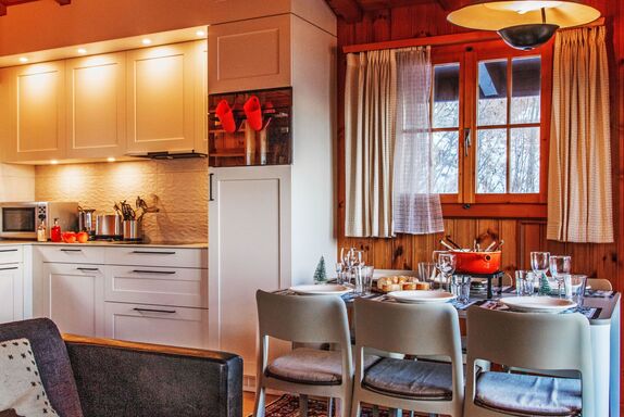 Magicien, 4-Zimmer-Chalet 80 m2 auf 2 Stockwerken. Einfach eingerichtet: Wohn-/Esszimmer mit offenem Kamin, Kabel-TV, Radio, CD und DVD. Ausgang zum Balkon. Offene Küche (4 Kochplatten, Backofen, Geschirrspüler, Toaster, Wasserkocher, Mikrowelle, elektrische Kaffeemaschine, Kapseln für die Kaffeemaschine (nespresso) extra, Racletteofen, Fondue Set (Käse)). Sep. WC. E-Heizung. Unteres Geschoss: 1 Zimmer mit 2 Betten (90 cm, Länge 190 cm). 1 kleines Kinderzimmer mit 1 x 2 Etagenbetten (90 cm, Länge 180 cm). 1 Zimmer mit 2 Betten (90 cm, Länge 190 cm). Bad/WC. 2 Balkone, Nordlage und Westlage. Terrassenmöbel, Gartengrill. Schöne Sicht auf die Berge und das Tal. Zur Verfügung: Waschmaschine. Internet (WLAN, gratis). Parkplatz (1 Auto), Garage (1 Auto), Höhe 200 cm, Breite 240 cm. Bitte beachten: Nichtraucher-Unterkunft.