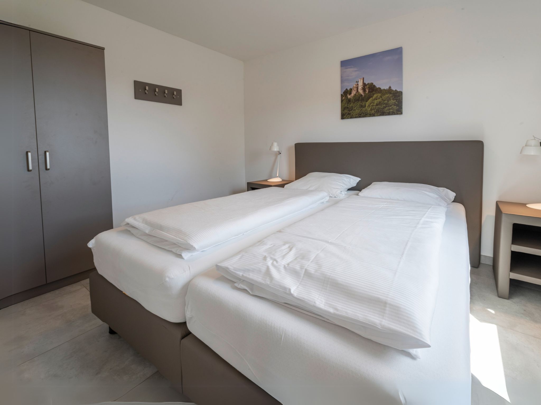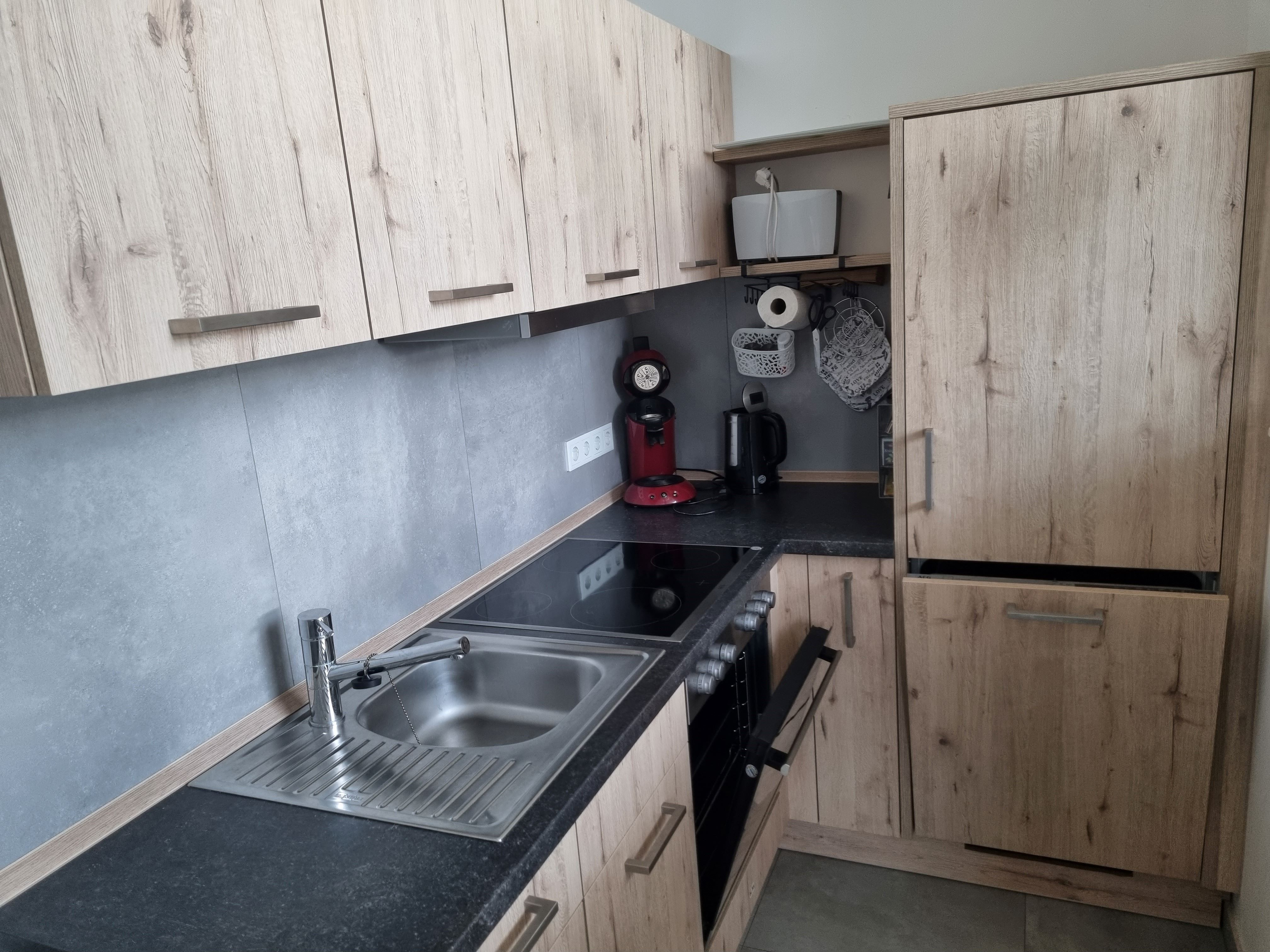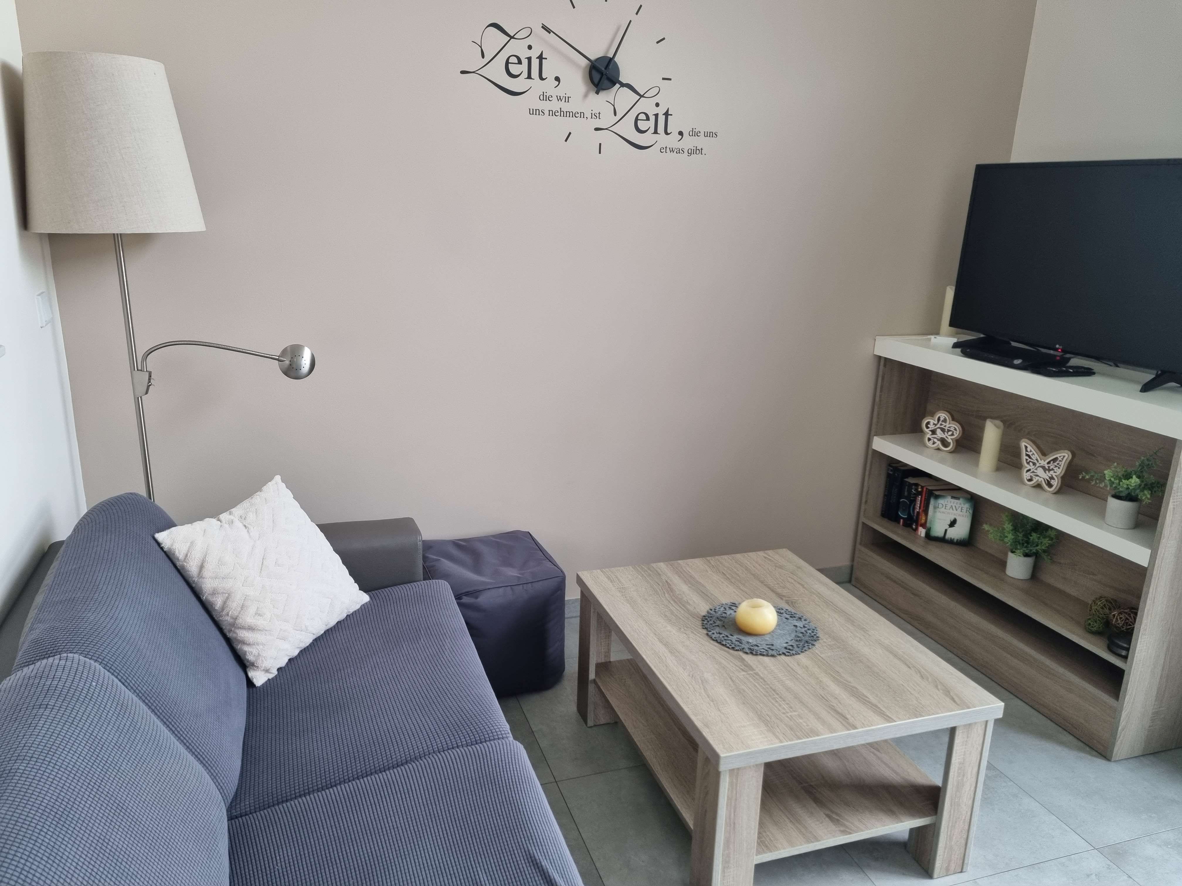 Der offene Wohnbereich kombiniert gemütliches Wohnen, Arbeiten und Essen und ist mit einem komfortablen Schlafsofa, einem Flat-TV und einem Esstisch ausgestattet. Die voll ausgestattete Küche umfasst ein Ceranfeld, eine Kaffeemaschine, einen Wasserkocher, einen Toaster und eine Geschirrspülmaschine. Das Appartement bietet ein Schlafzimmer mit Doppelbett und ein modernes Badezimmer mit Dusche und WC. Eine sonnige Terrasse lädt zum Entspannen im Freien ein.