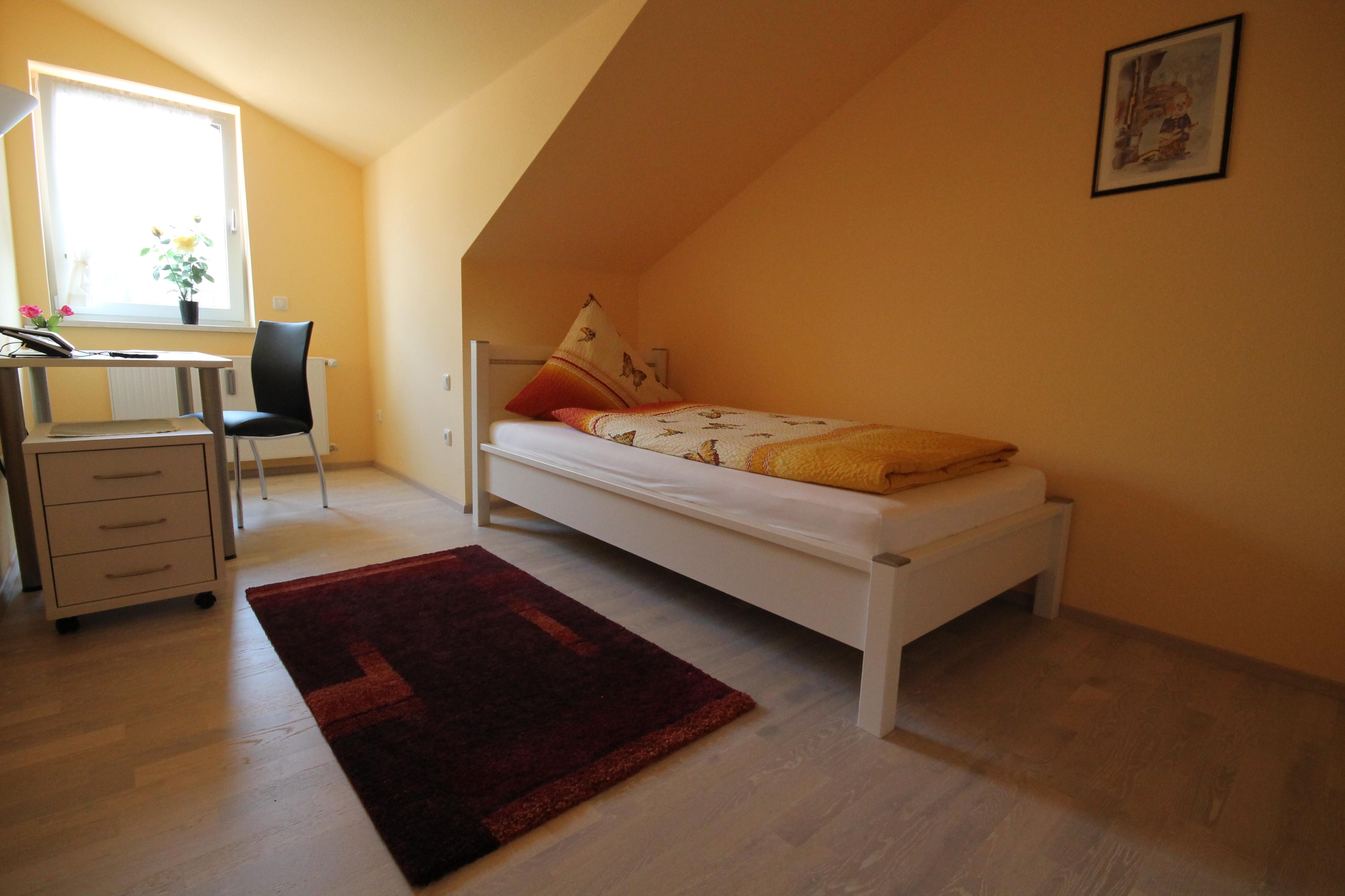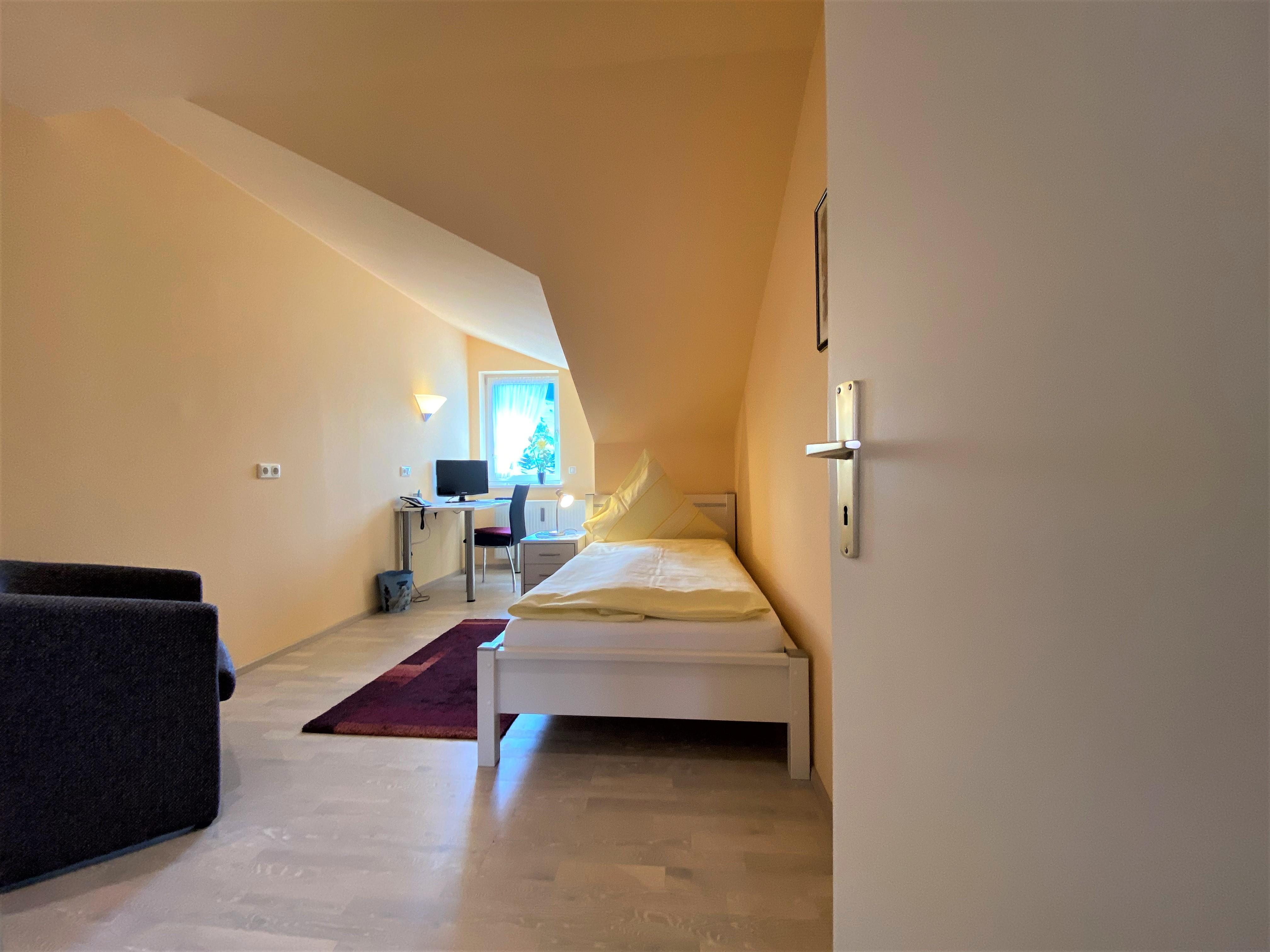 Schlafzimmer mit Parkettboden, Doppelbett 2x2 m und großem Kleiderschrank. Weiteres Zimmer mit Parkettboden, Schreibtisch, Einzelbett 2x1m und Kleiderschrank. Kabel-TV-Anschluß, Durchwahltelefon und LAN u.WLAN-Internetzugang.