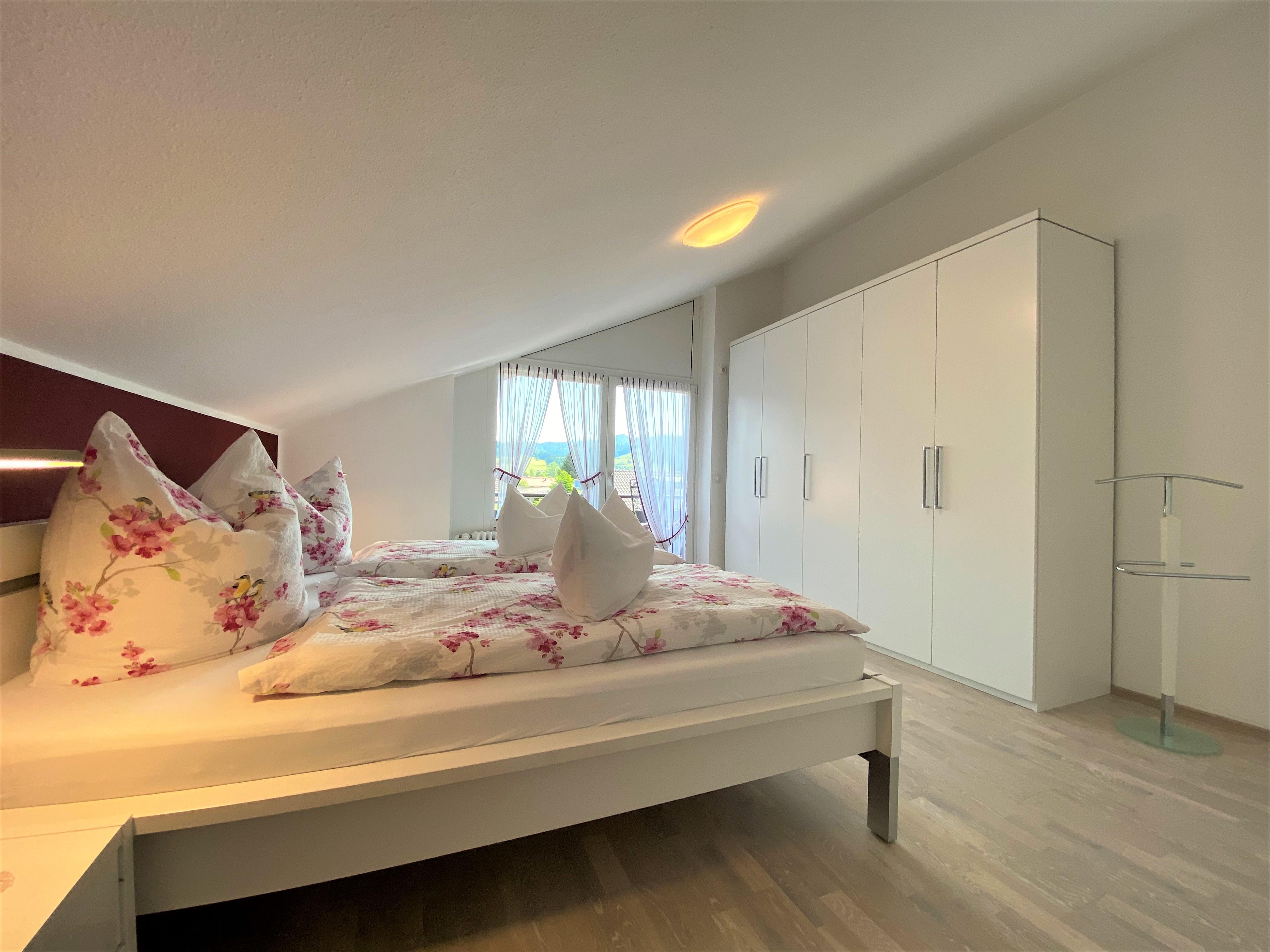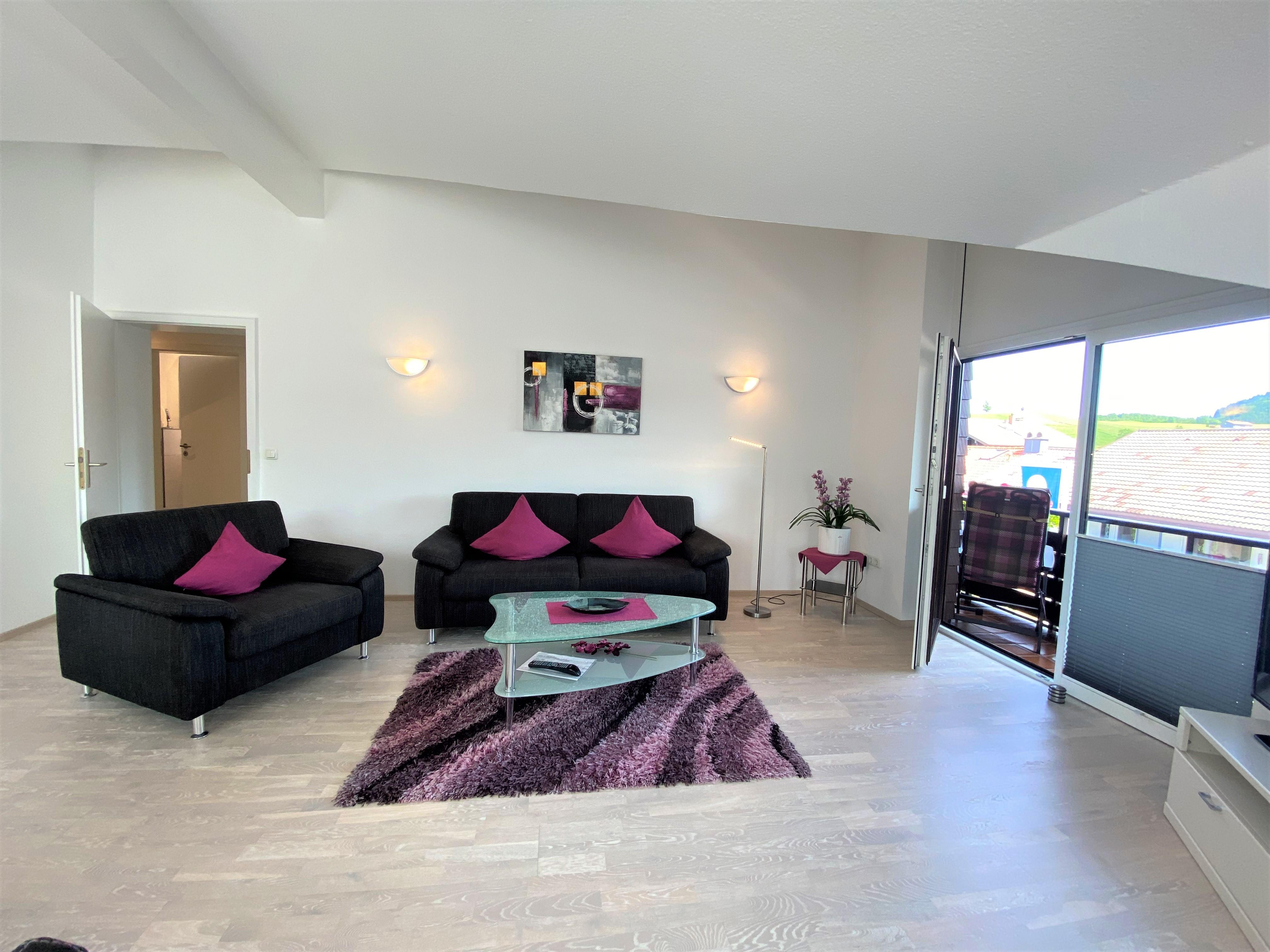 Moderne, hübsch eingerichtete Nichtraucher-Komfortwohnung, 105 qm, für 2-3 Personen im Dachgeschoß, Lage Süd-Ost, Balkon mit Tischgarnitur.