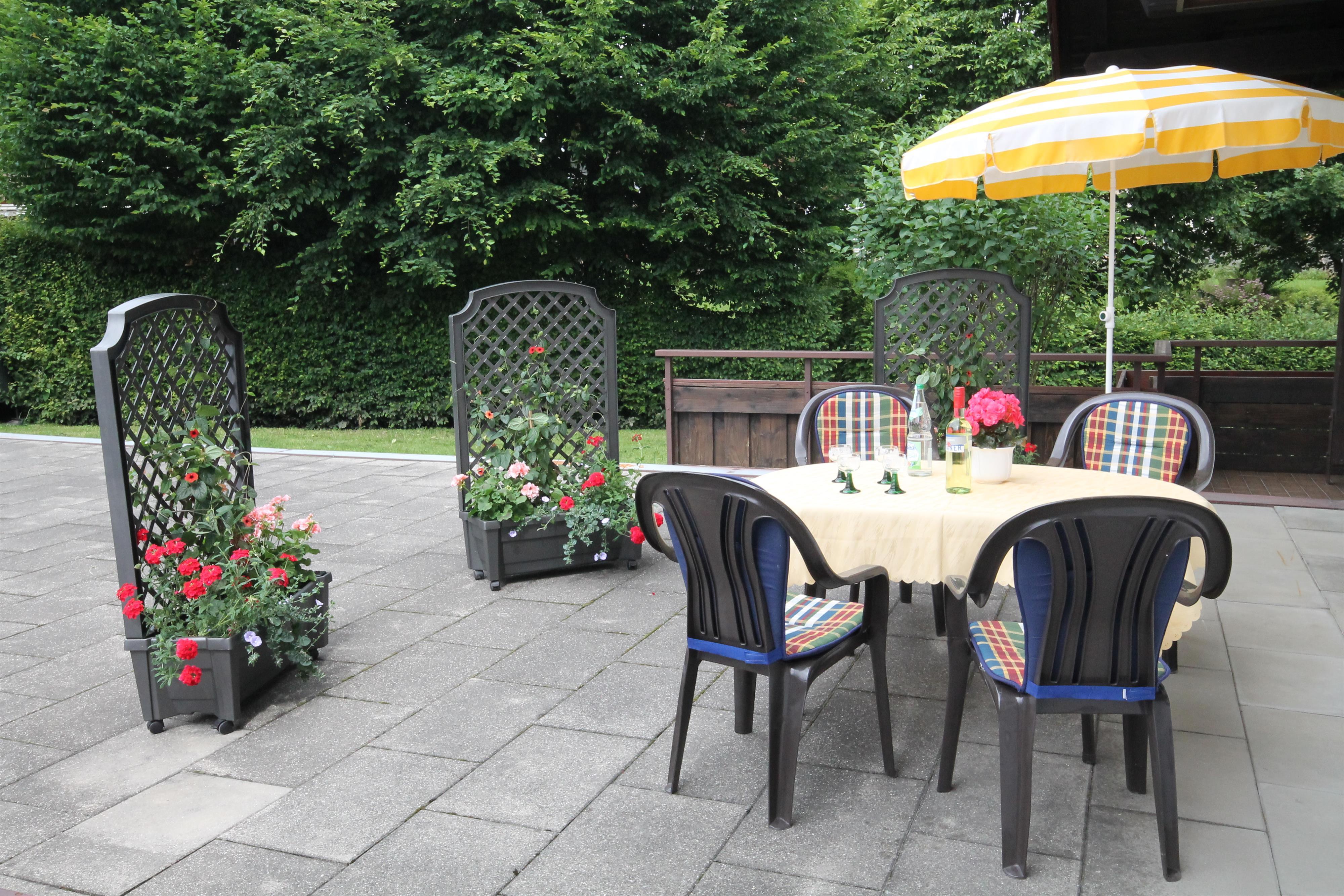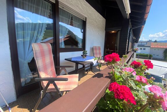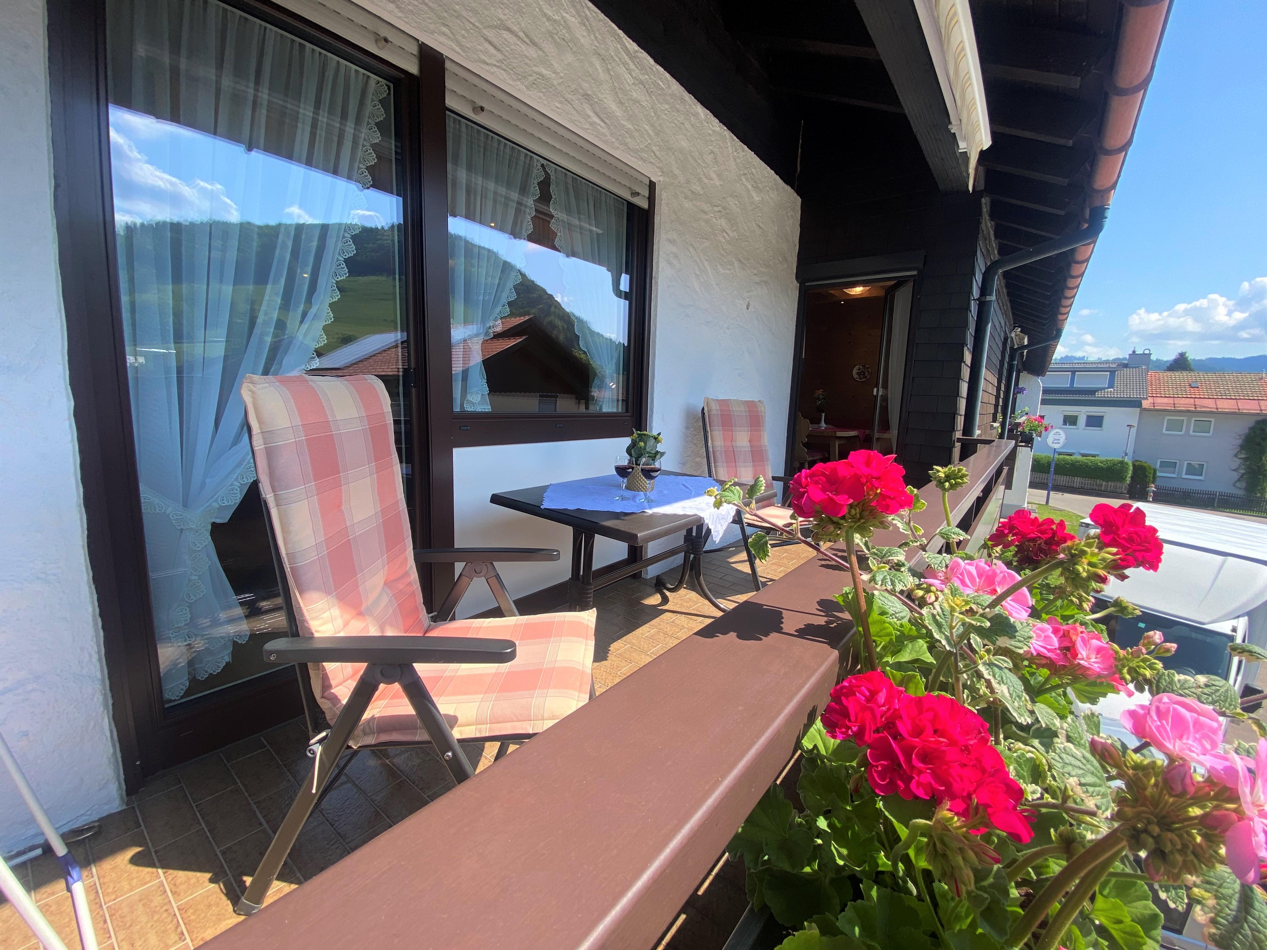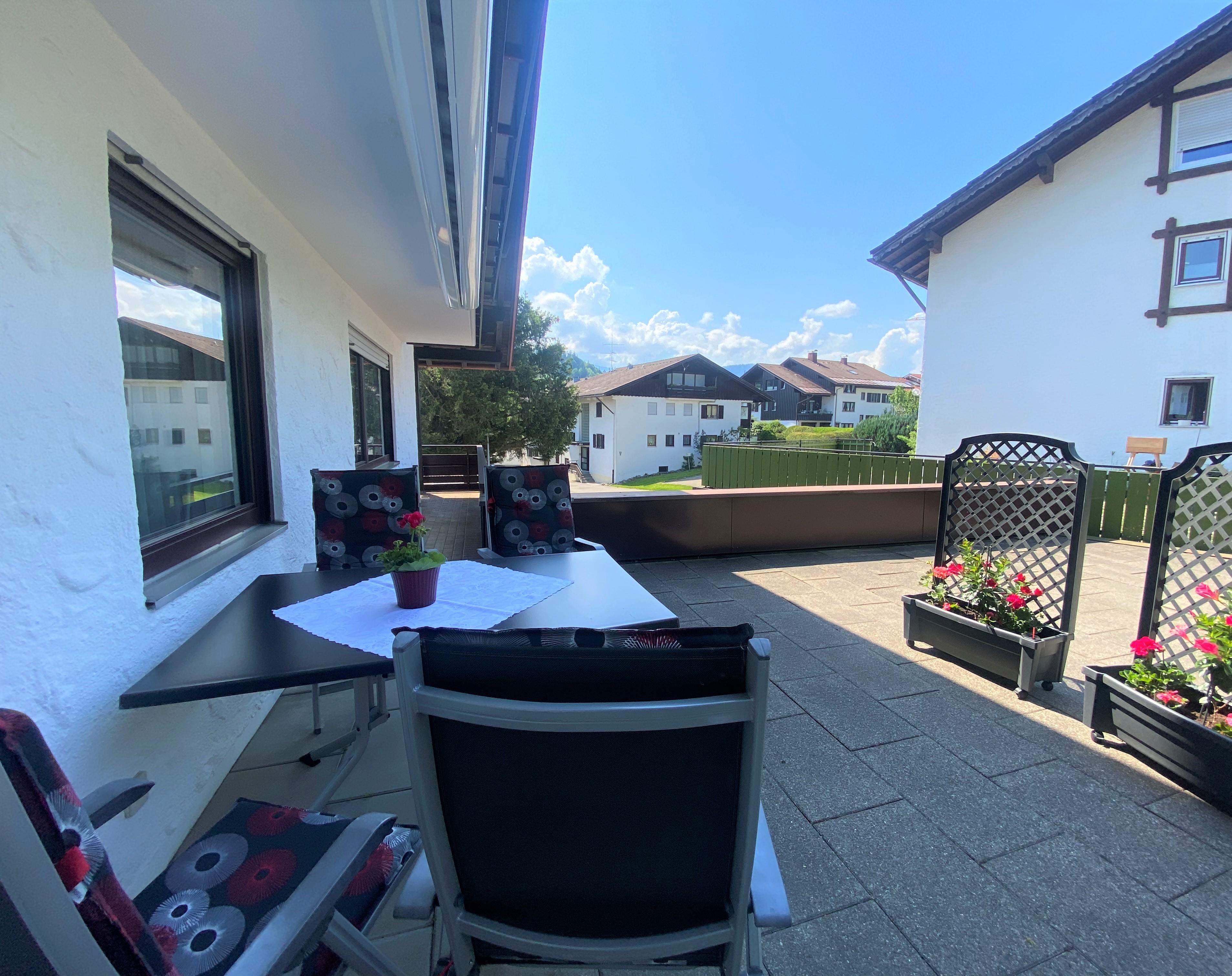 Ein großer Rundumbalkon mit Tischgarnitur und eine große Terrasse bietet Ihnen zu jeder Jahreszeit herrliche Sicht auf die umliegenden Berge.