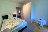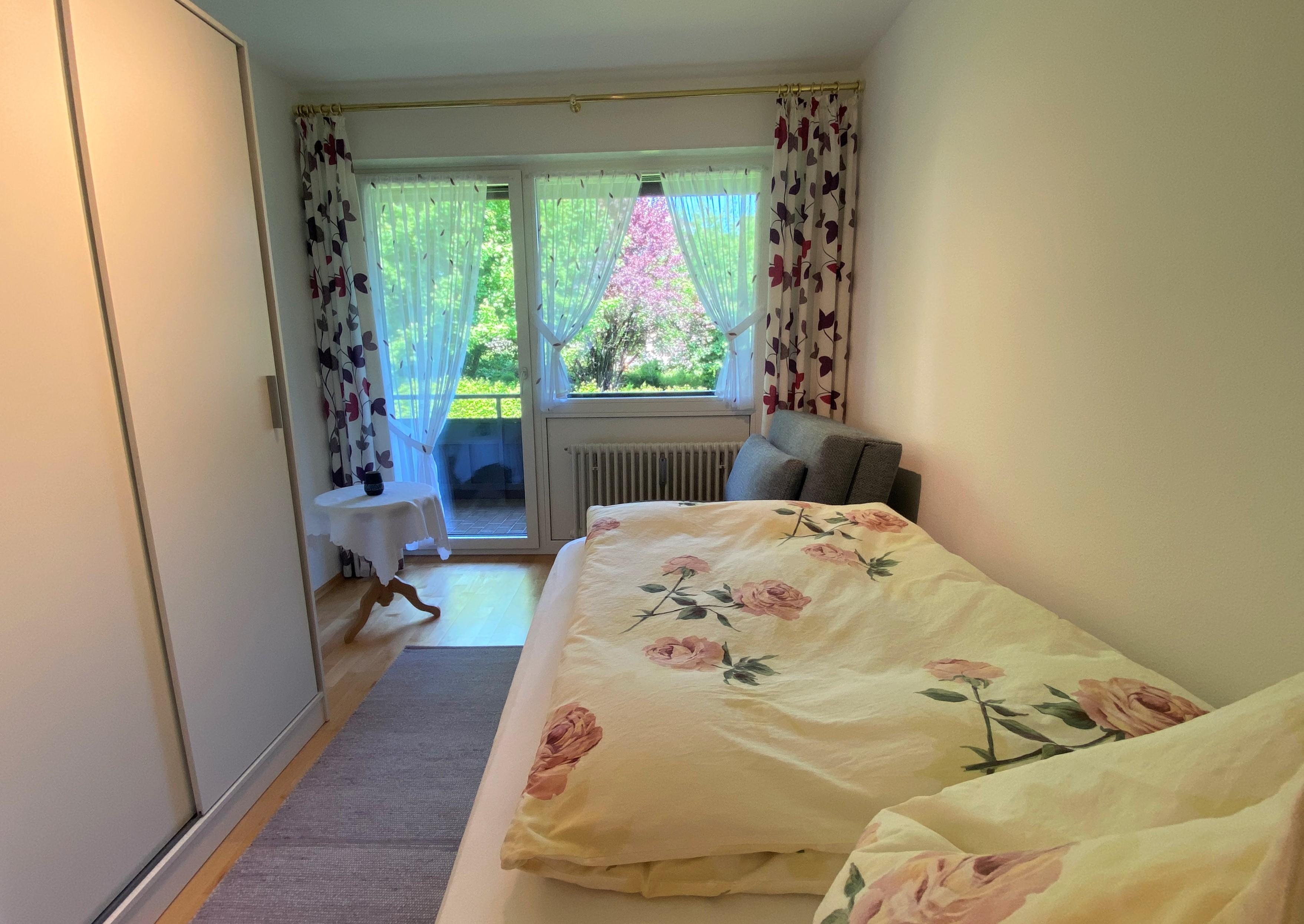 Weiteres Schlafzimmer mit Parkettboden, Boxspringbett 2x1,20 m und Kleiderschrank.