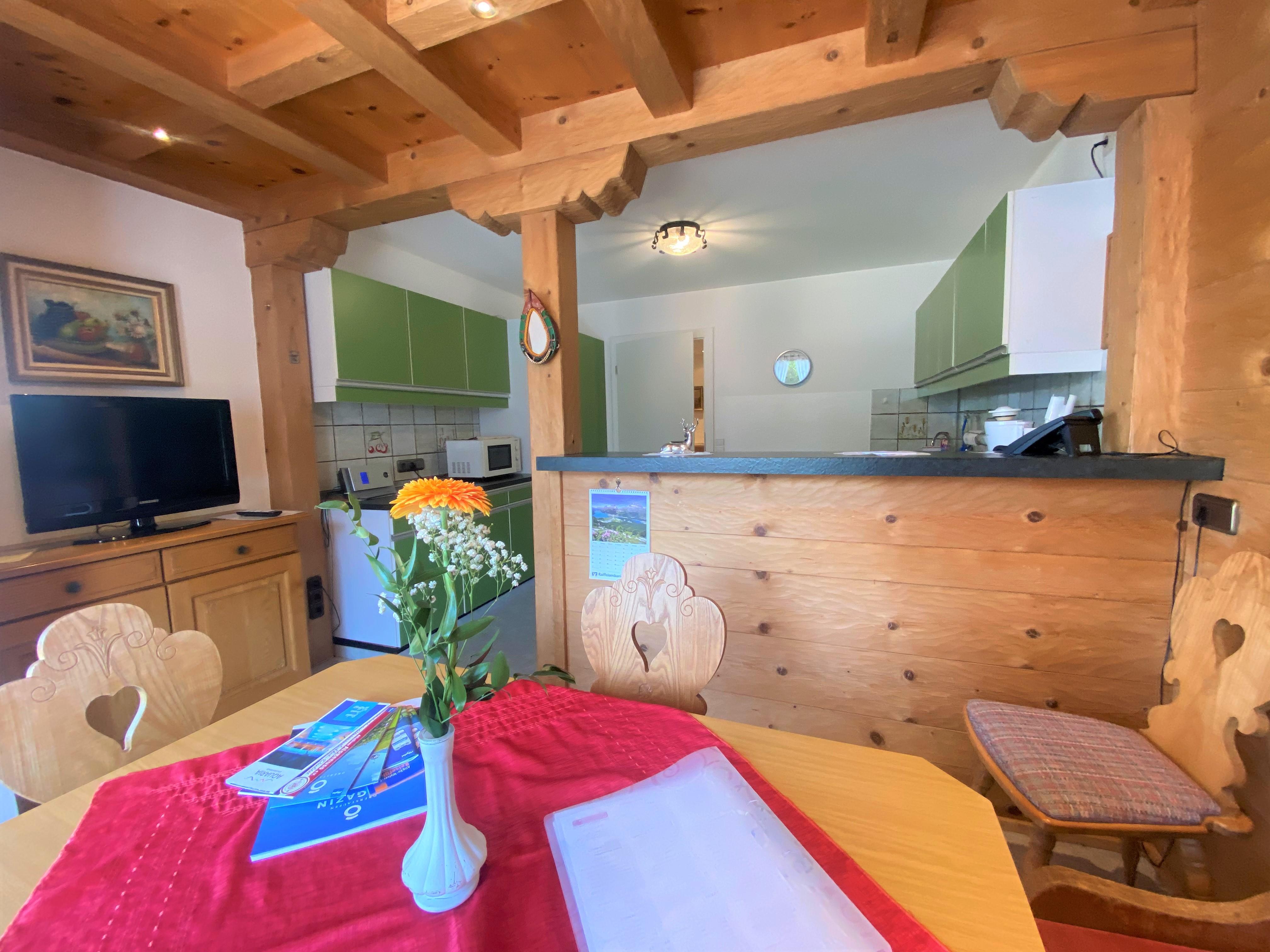 Küche, komplett mit Herd, Spülmaschine, Mikrowelle usw. ausgestattet. Rustikale Essecke mit Eckbank/Tisch und Theke. Kabel-TV, Durchwahltelefon,