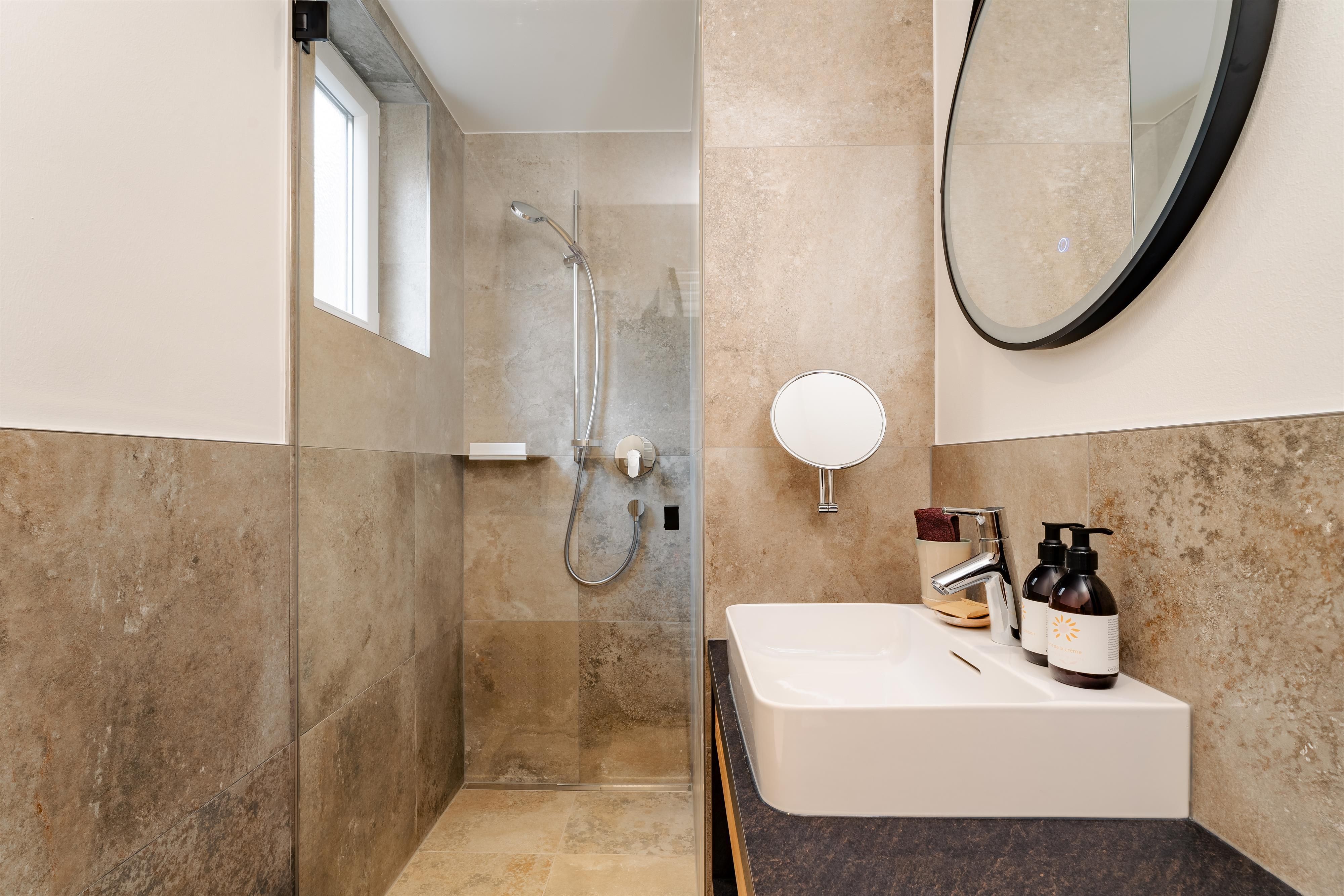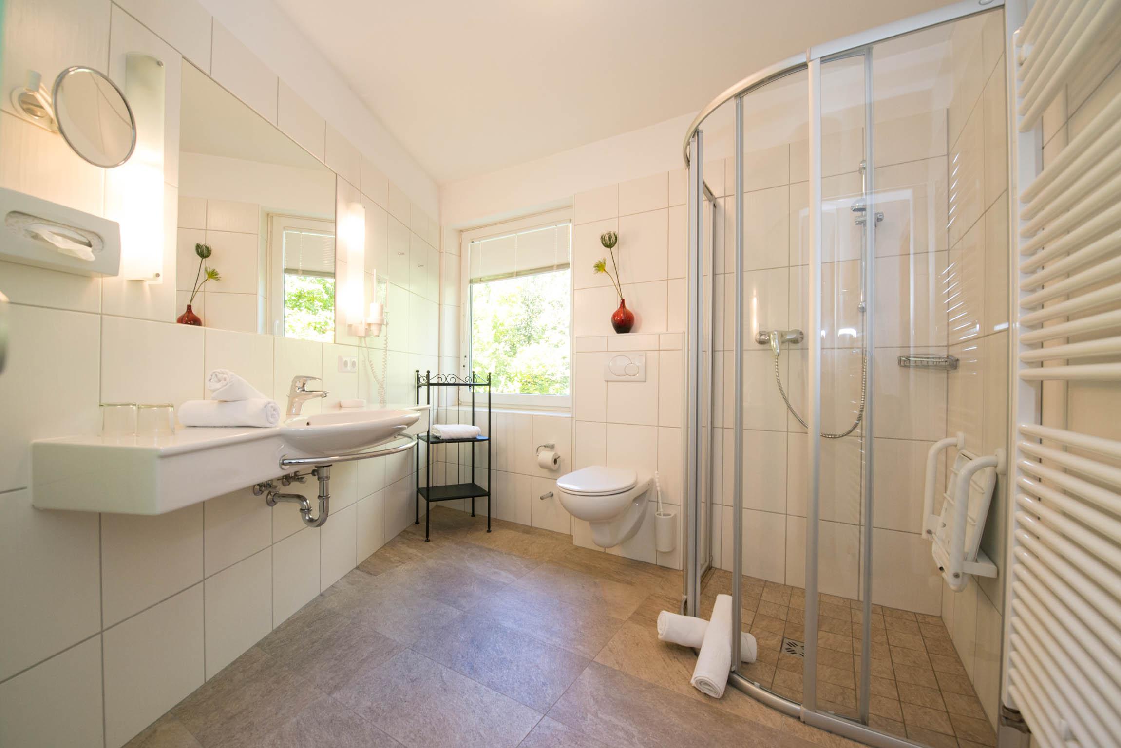 Modern eingerichtetes Zimmer mit Dusche/Bad und WC, SAT-TV und Balkon.