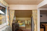Doppelbett, Zusatzbett möglich, Wohnraum mit Sitzecke, Couch und großem