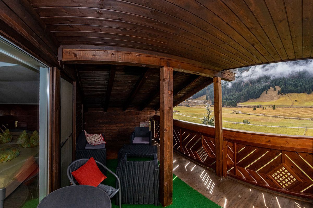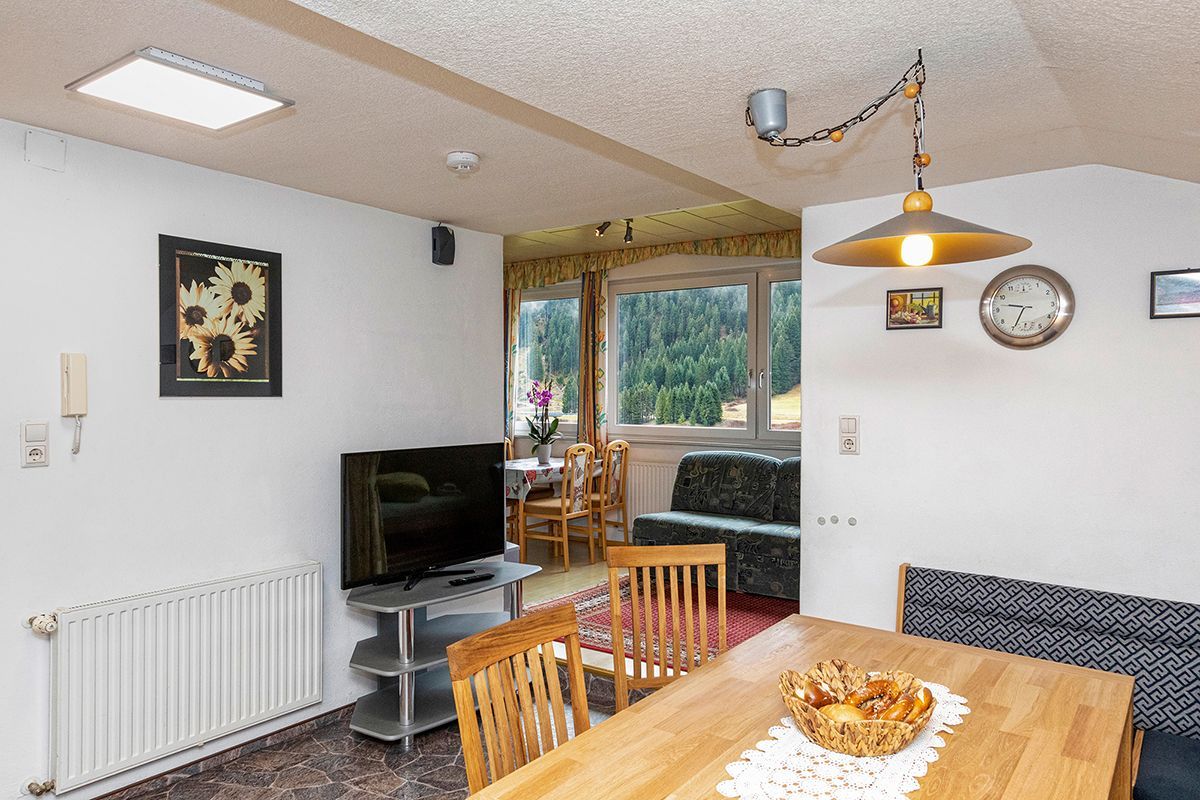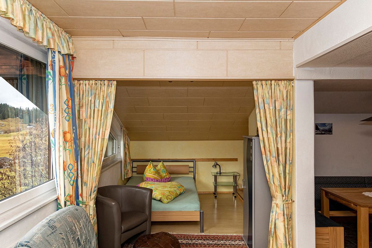Panoramafenster, herrlichem Rundblick auf die Krinnenspitze,  im Wohnraum befindet sich eine Nische  mit franz. Bett (1,40 m)   mit Vorhang abtrennbar, große,gemütliche Loggia,