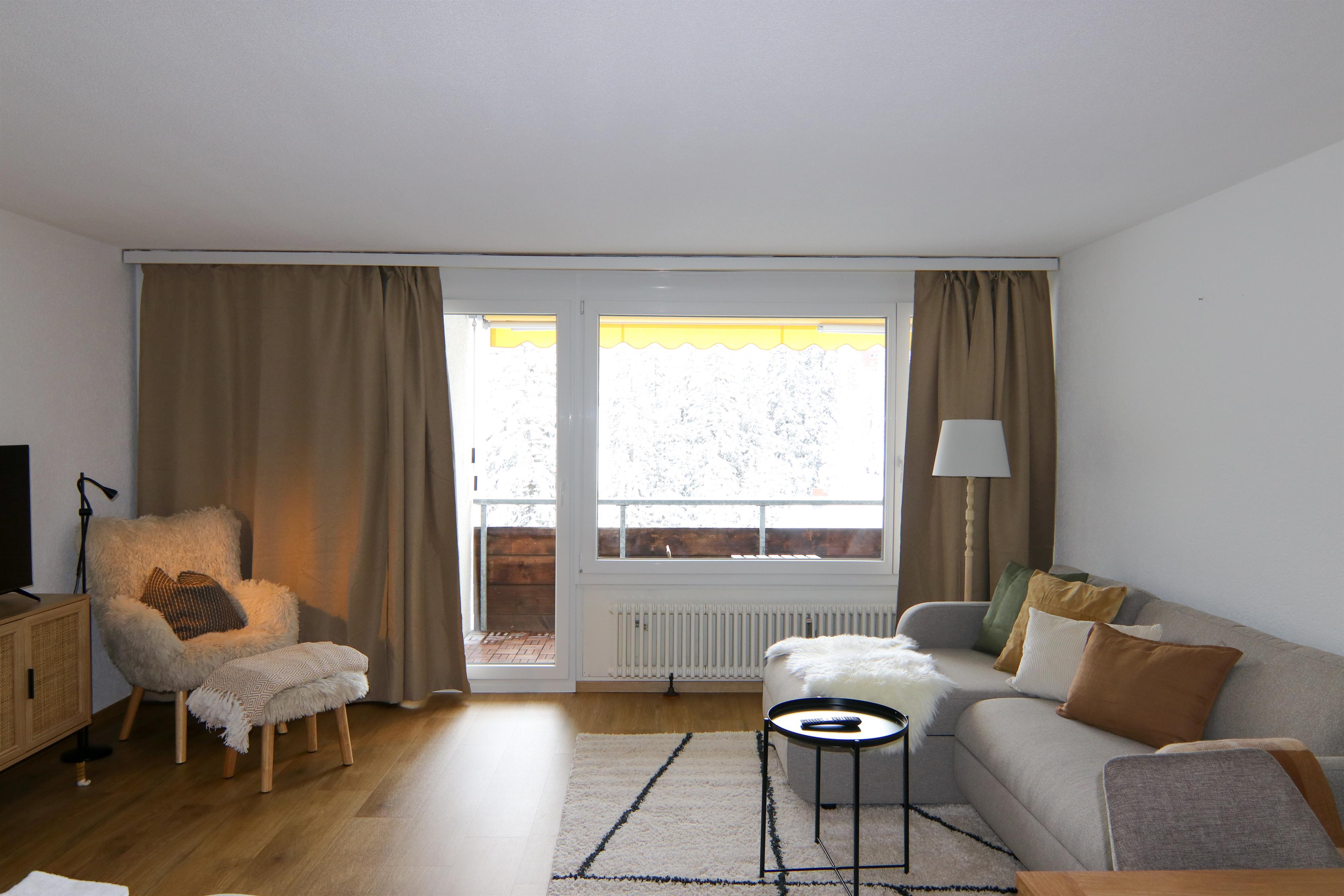 Die geräumige und moderne 2-Zimmer-Wohnung befindet sich im 8. Stock des Rothornblick Gebäudes an ruhiger Lage und von viel Natur umgeben. Der Balkon bietet einen herrlichen Bergblick.