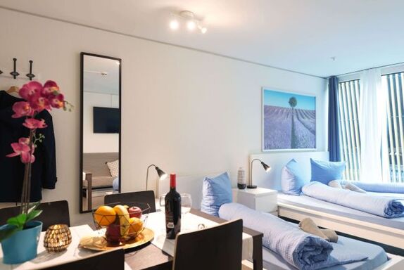 Geniessen Sie einen rundum Komfort in dieser stylishen Ferienwohnung mit Balkon.