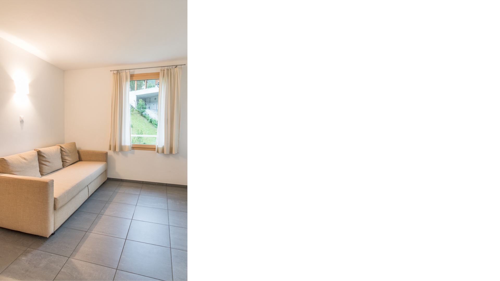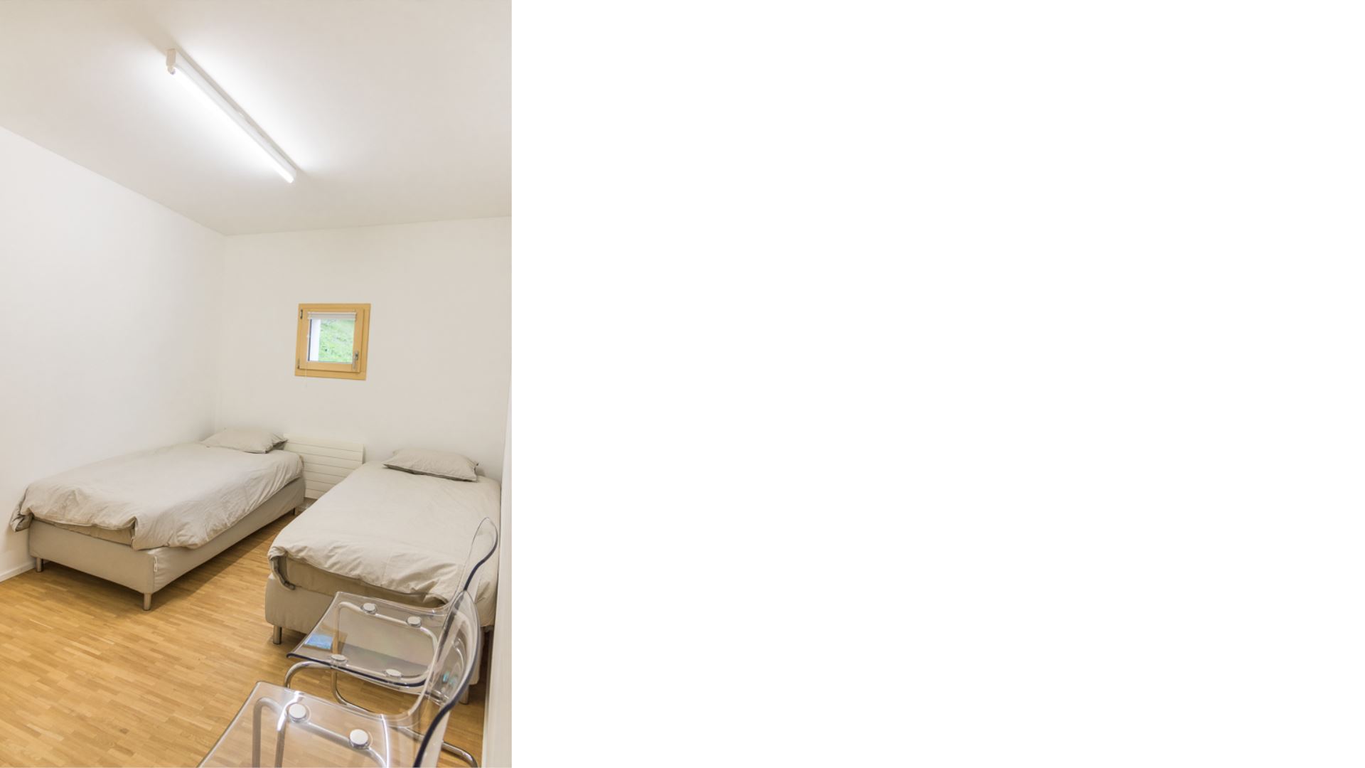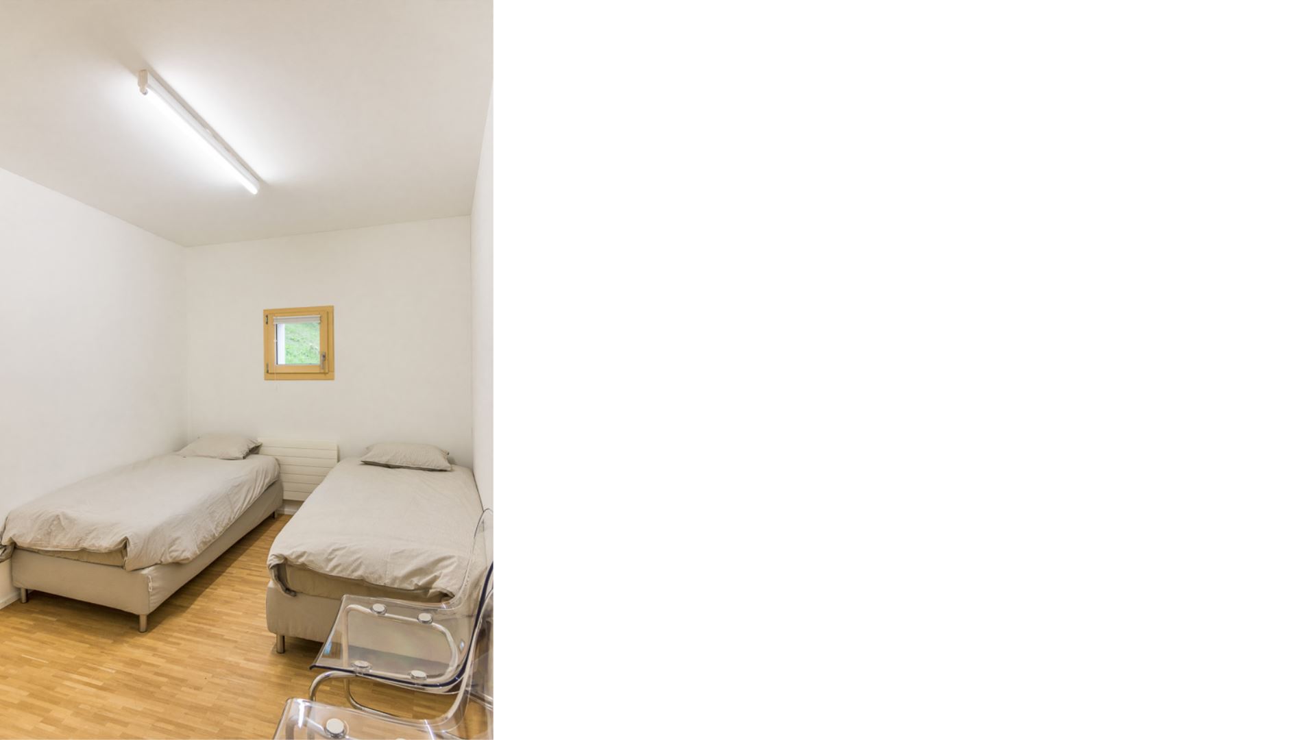 Im Sommer wie im Winter sind die Wege direkt vom Haus aus erreichbar. Die moderne und helle Wohnung befindet sich im ersten Stock des Gebäudes und ist über den Fußgängereingang zu erreichen, indem man eine Etage hinuntergeht. Sie besteht aus vier Schlafzimmern: eines mit einem Doppelbett, eines mit einem französischen Bett und zwei mit jeweils zwei Einzelbetten.