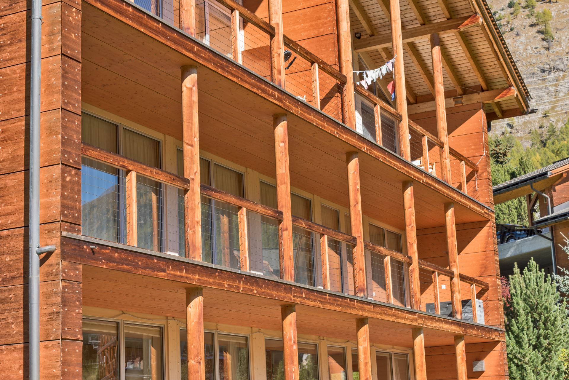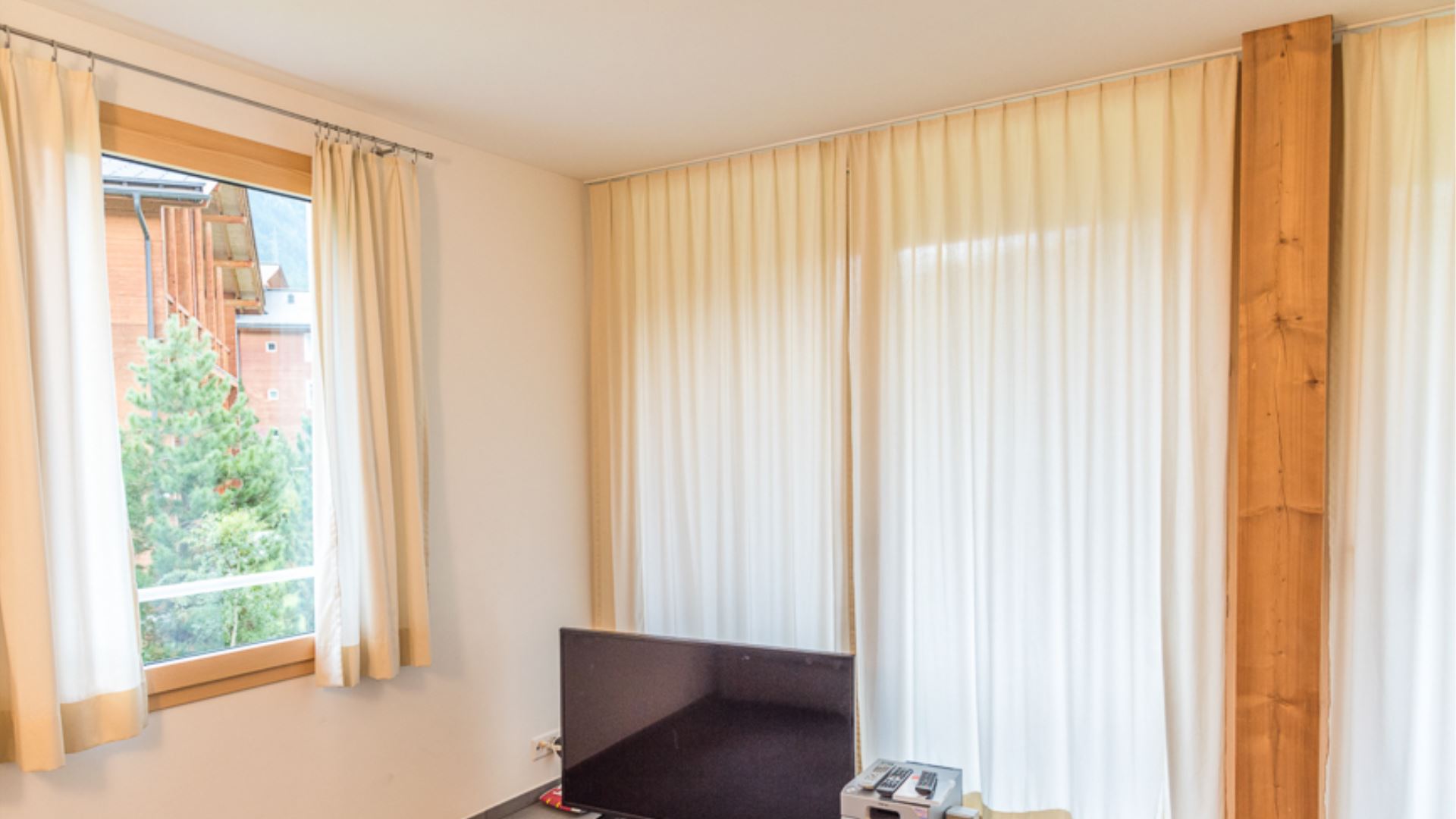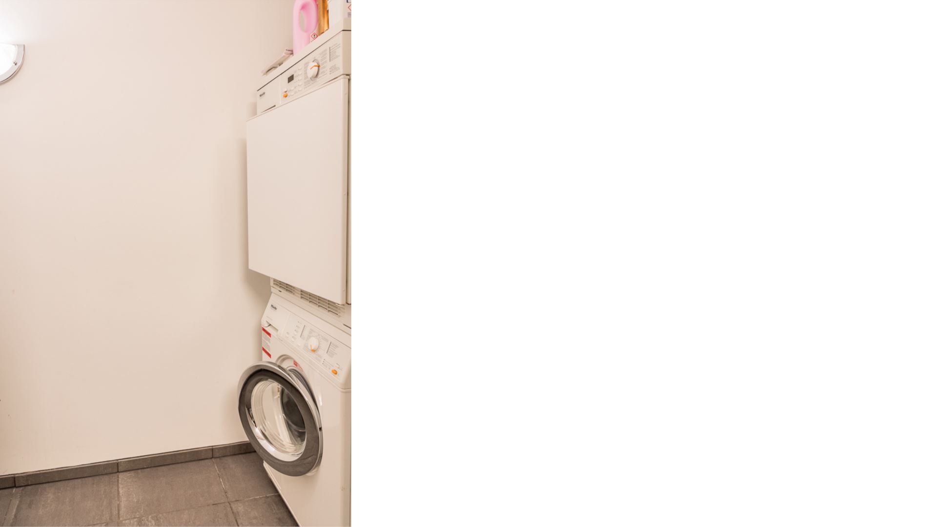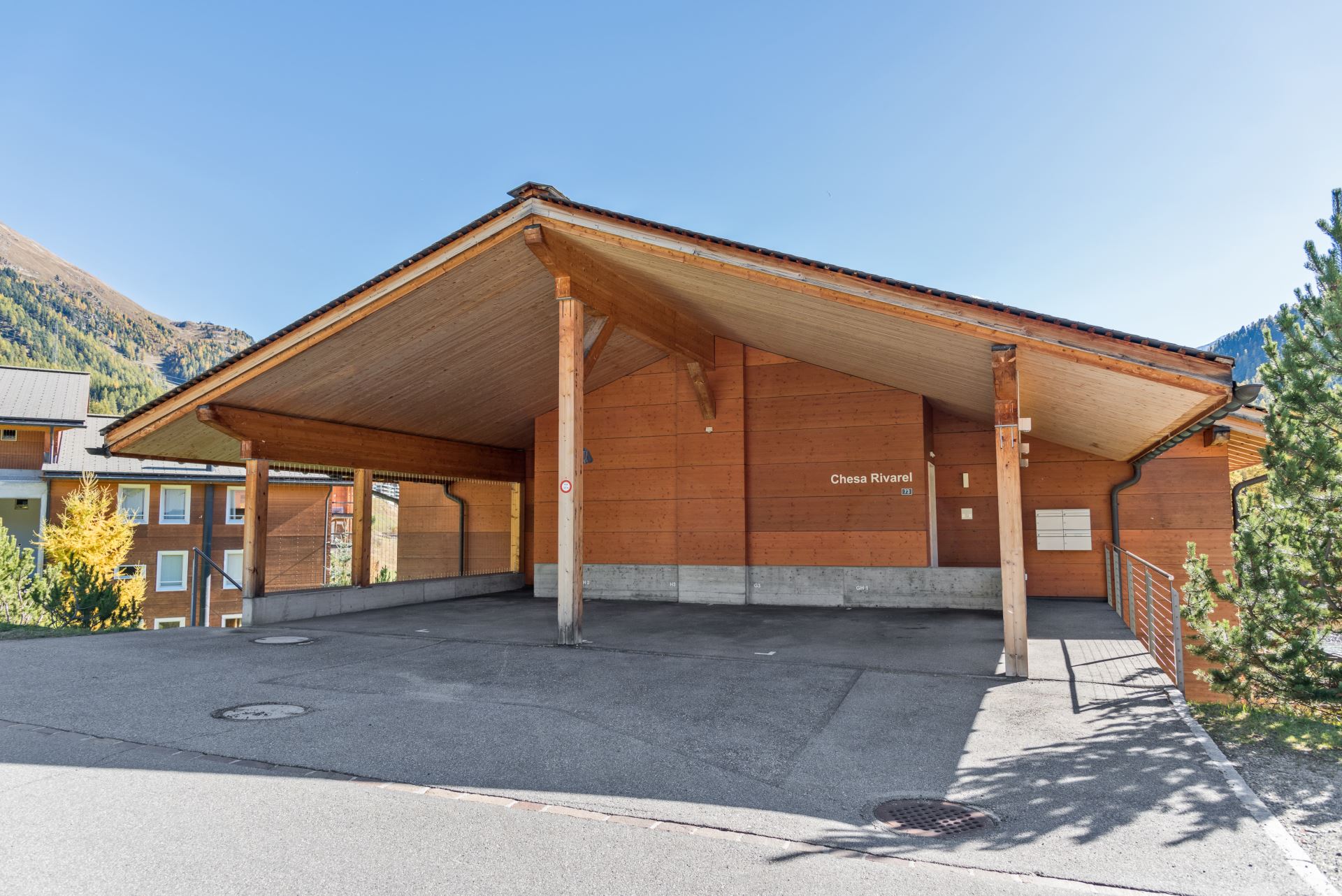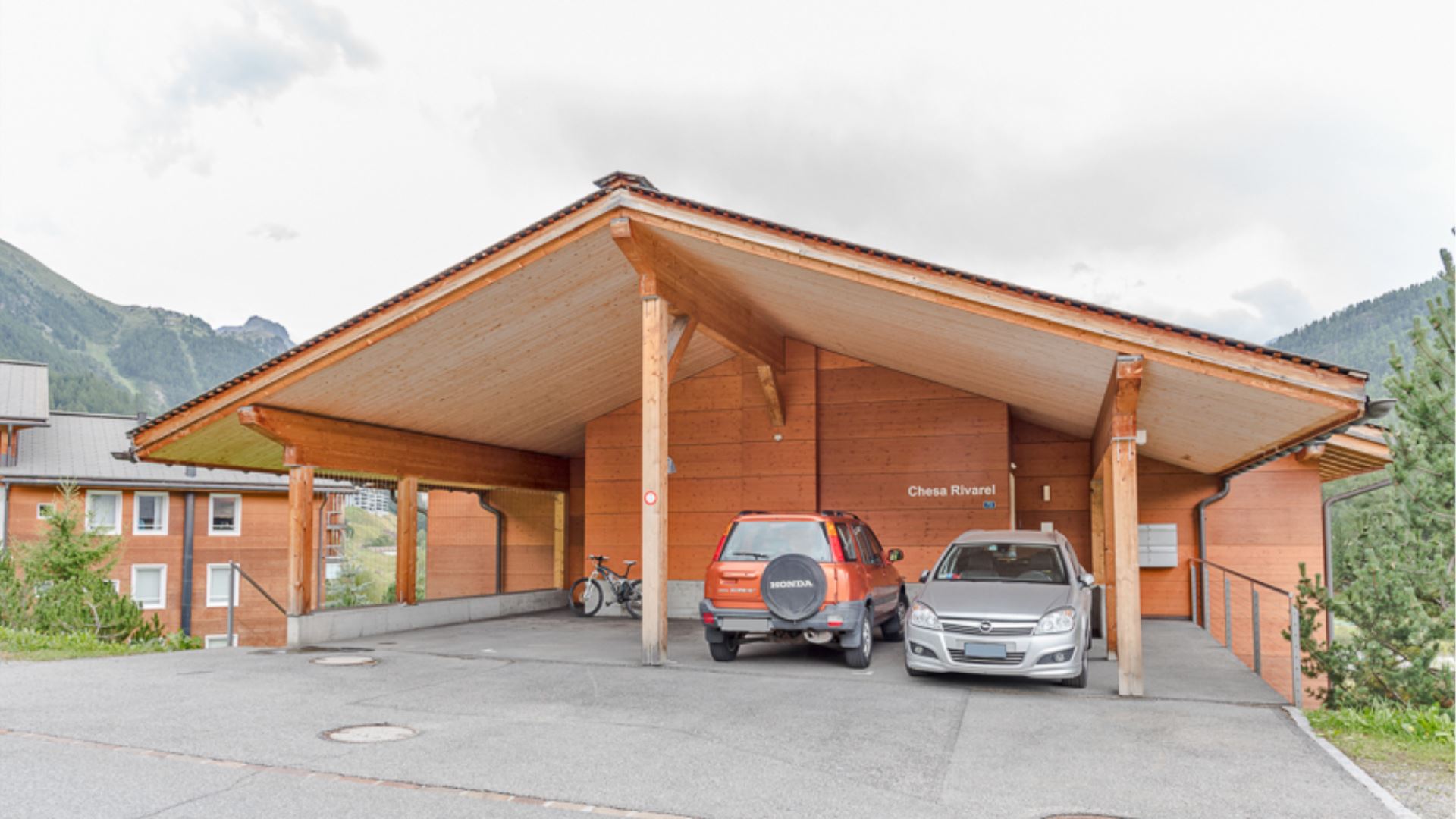 Es stehen zwei überdachte Außenparkplätze zur Verfügung, einer hinter dem anderen. Die Wohnung ist mit einer Waschmaschine, einem Trockner und einem kleinen Abstellraum für Skier, Stiefel und Jacken zur ausschließlichen Nutzung ausgestattet.