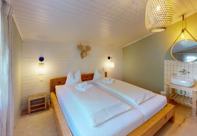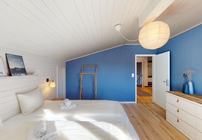 Die helle und großzügig geschnittene Ferienwohnung bietet reichlich Platz für Familien mit bis zu vier Erwachsenen und zwei Kindern und eignet sich hervorragend für längere Aufenthalte.