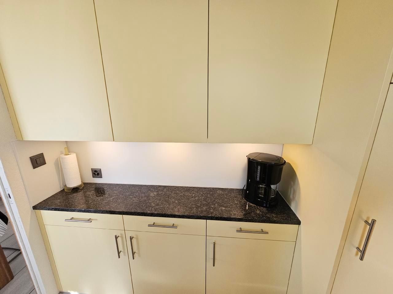 Die Innenausstattung des Chalets spiegelt einen modernen Stil wider, der kürzlich im Jahr 2022 sorgfältig renoviert wurde. Ihnen steht das ganze Erdgeschoss zur Verfügung, das über eine Aussentreppe leicht erreichbar ist. Der Wohnbereich verfügt über großzügige Sitzgelegenheiten, TV, Esstisch und bietet zusätzlich zwei Wand-Klappbetten für flexiblen Schlafkomfort. Das Schlafzimmer ist nicht nur geräumig, sondern auch mit einem großen Wandschrank und Abdunkelungsvorhängen ausgestattet. Die Küche lässt mit ihrer Großzügigkeit und der top Ausstattung keine Wünsche offen.
