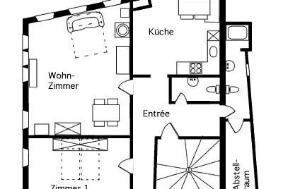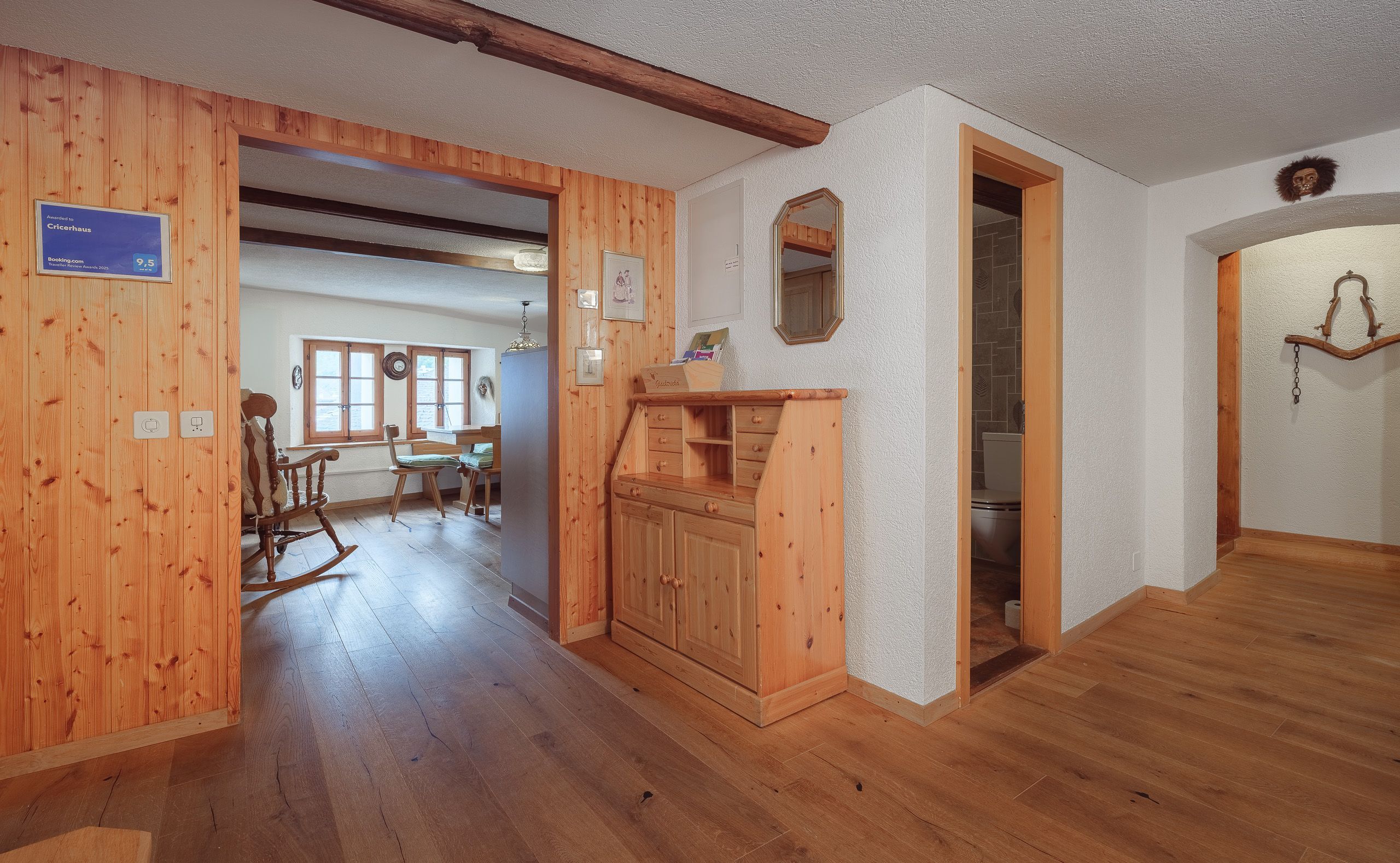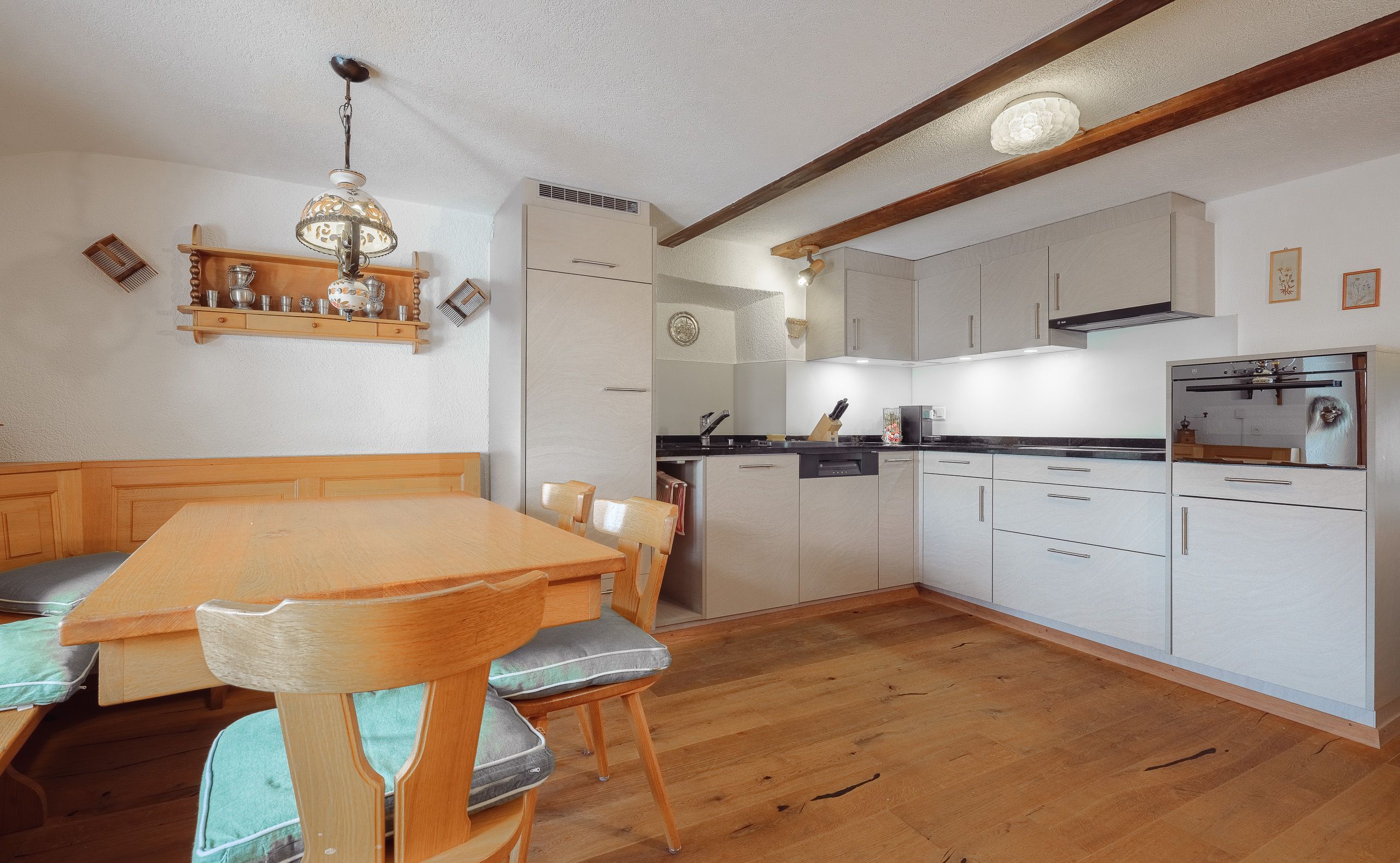 Die Wohnung besticht durch eine durchdachte Raumaufteilung und hochwertige Ausstattung. Das Wohnzimmer, ausgestattet mit zwei Doppel-Ausziehbetten, bietet Schlafmöglichkeiten für bis zu vier Personen, während das separate Schlafzimmer mit zwei Einzelbetten die perfekte Rückzugsmöglichkeit bietet. Ein großzügiger Eingangsbereich führt in die gut ausgerüstete Wohnküche mit großem Kühlschrank, Gefrierfach, Backofen, 4-Platten-Herd, Wasserkocher, sowie einer umfangreichen Auswahl an Küchenutensilien, Geschirr und Besteck. Zusätzlich verfügt die Wohnung über zwei Sanitäranlagen, eine mit WC und Dusche und ein separates WC, sowie über einen Abstellraum mit Waschmaschine und Wäscheaufhängevorrichtung.