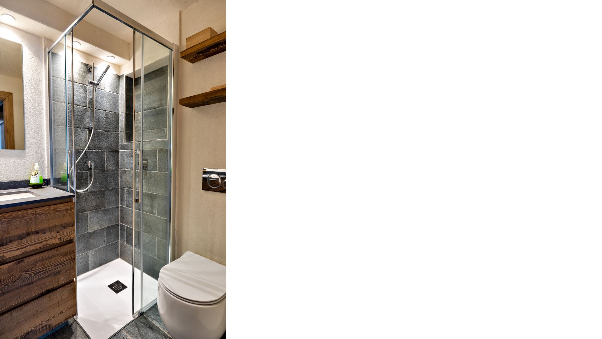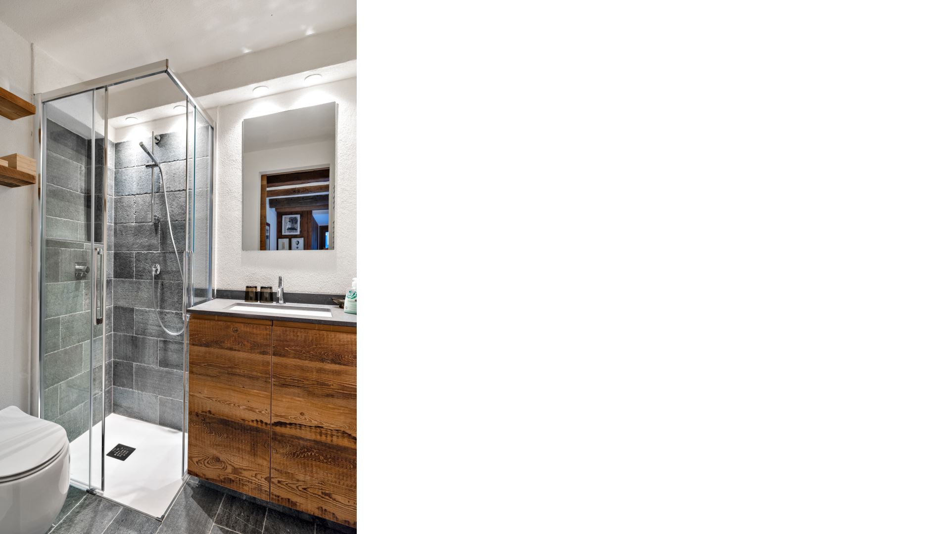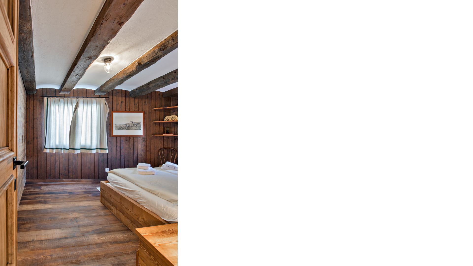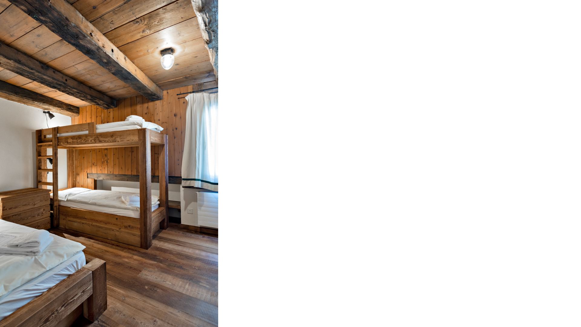 4-Zimmer-Wohnung im zweiten Stock ohne Aufzug mit ca. 120 Quadratmetern. Eingangshalle mit Garderobe. Wohn- und Esszimmer mit Balkon zur Südseite. Separate Küche mit Backofen, Geschirrspüler, Toaster, Nespressomaschine, Kühlschrank, Gefrierschrank und Mikrowelle. Ein Doppelschlafzimmer mit 2 Matratzen (80 x190) und eigenem Duschbad, ein Schlafzimmer mit Etagenbett, 1 Schlafzimmer mit 2 Einzelbetten. Ein Badezimmer mit Dusche. Ein Parkplatz in der Garage (Maße: Höhe 185 cm, Breite 200 cm Länge 320 cm) und ein Außenparkplatz. Haustiere sind nicht erlaubt. Kostenloses Wi-Fi.