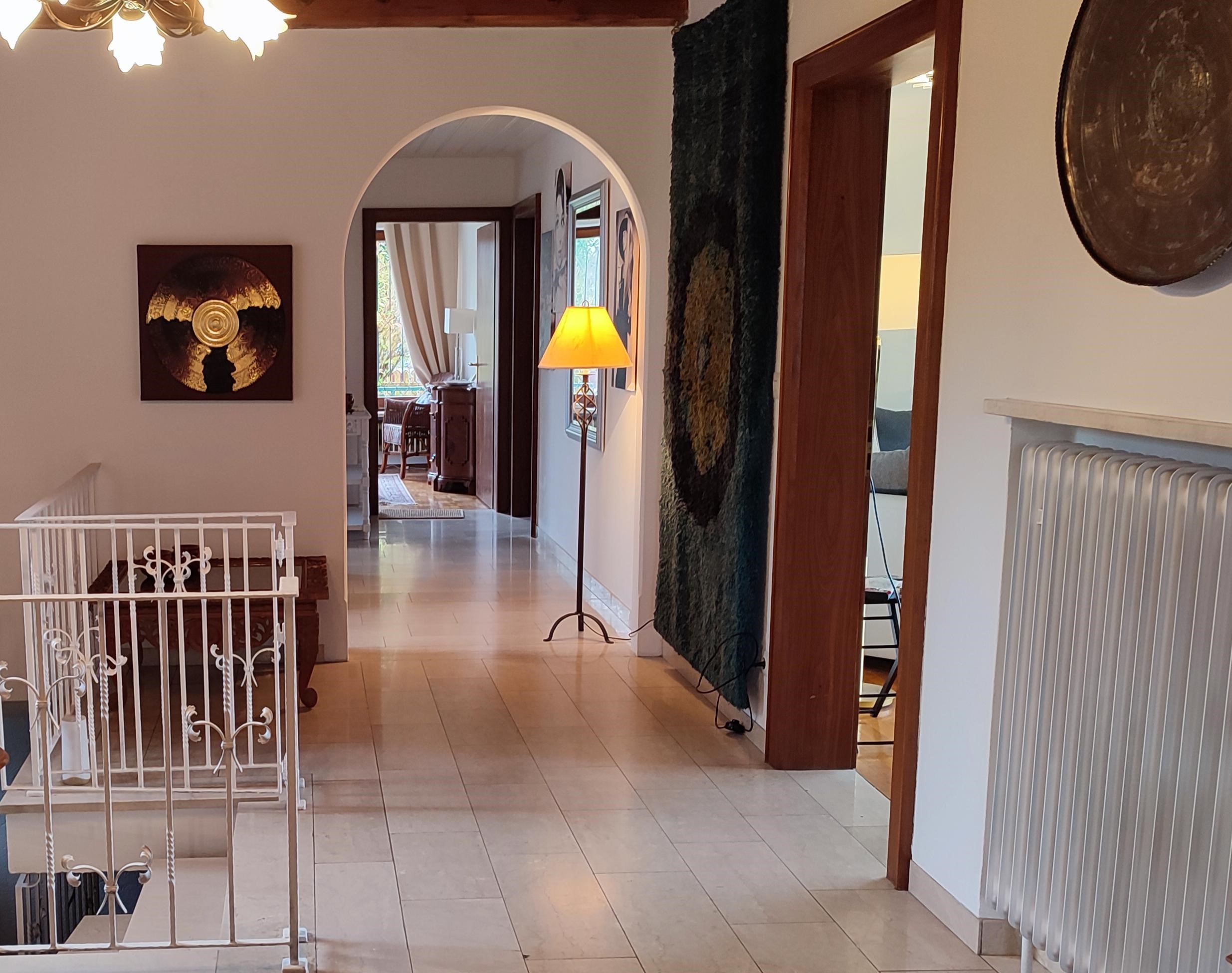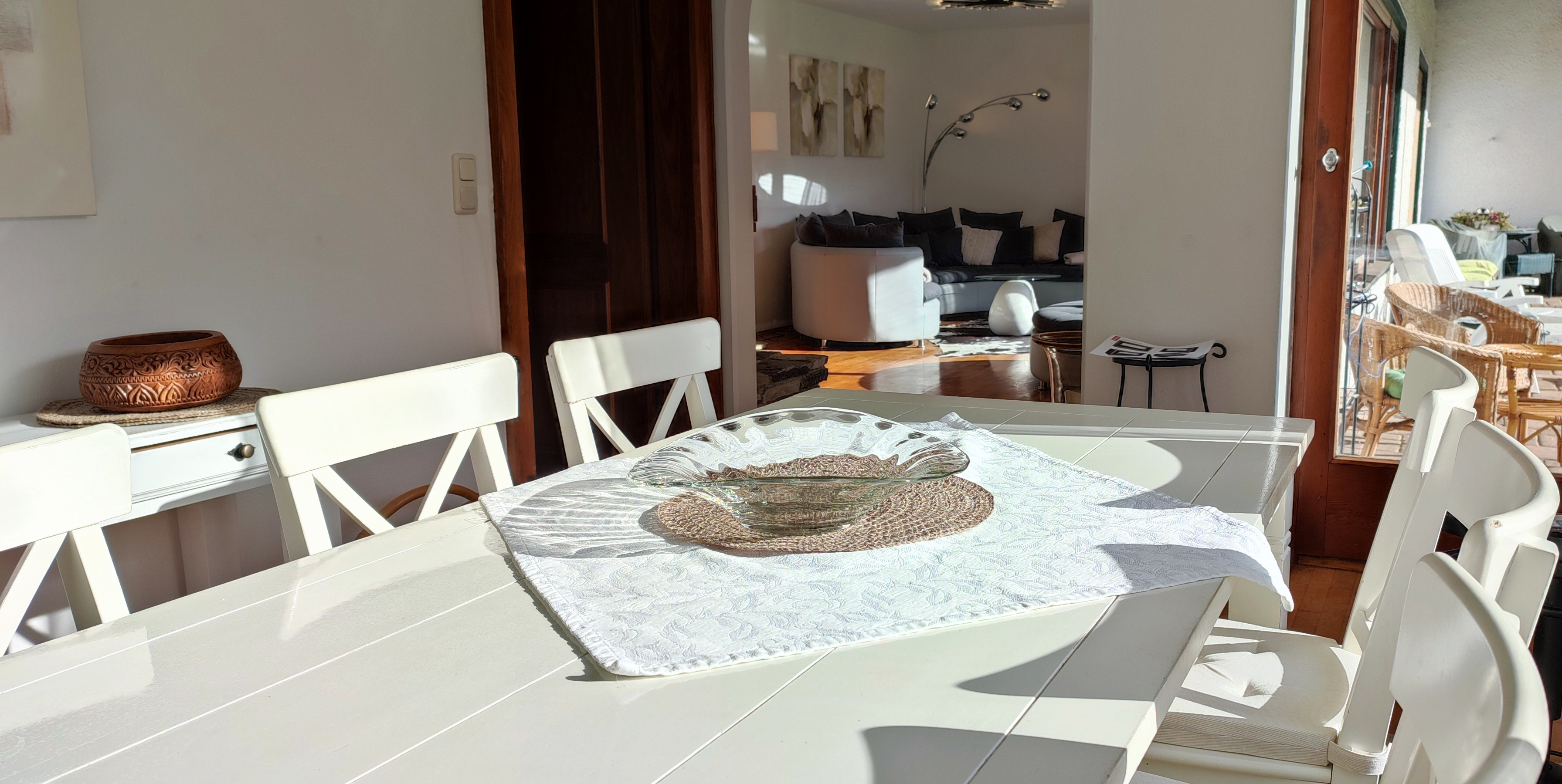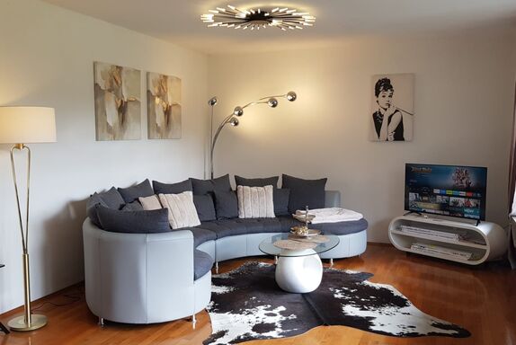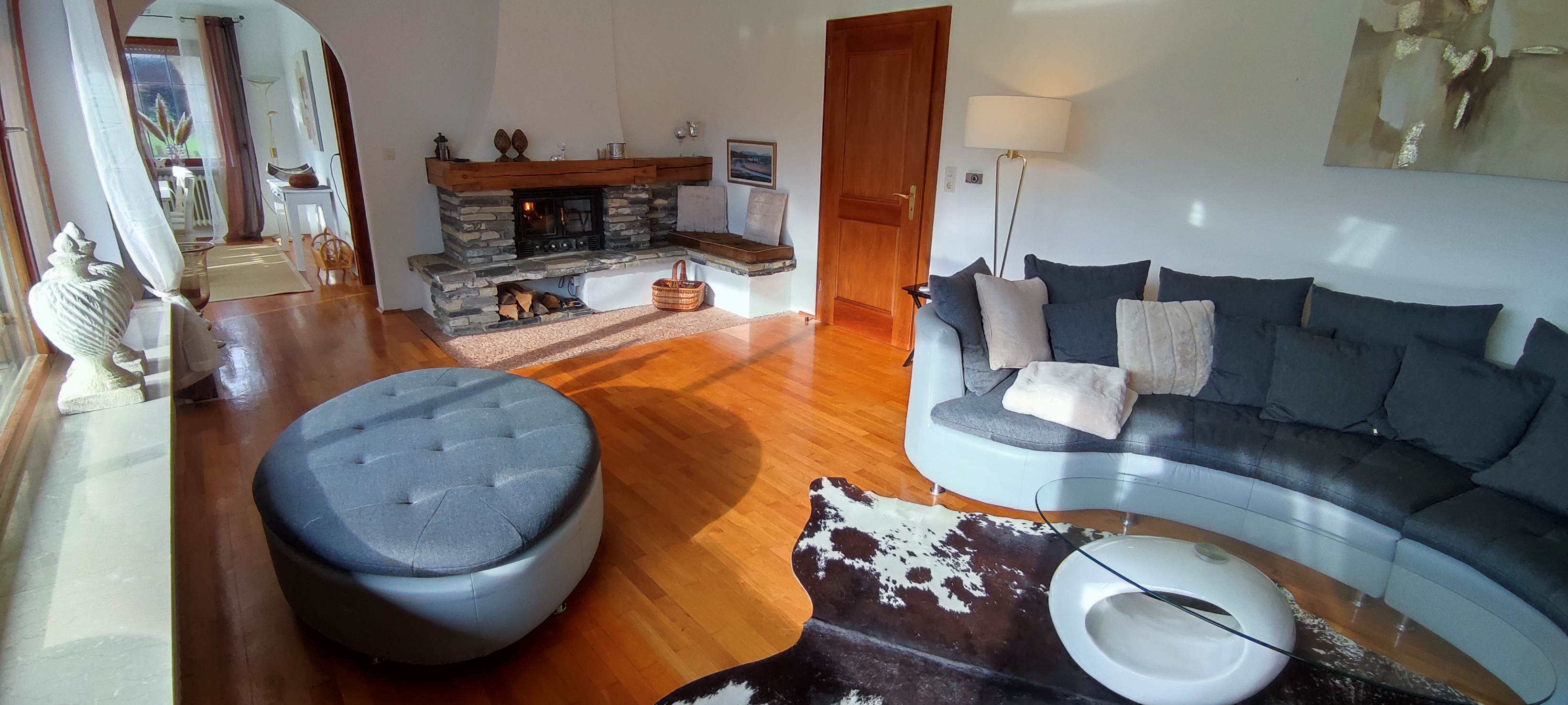 In dieser geräumigen Unterkunft erwartet Sie auf 45 m² 1 Wohnzimmer mit Kamin, sep. Esszimmer in Südausrichtung, 1 Schlafzimmer 18 m² mit franz. Doppelbett 180 x 200 cm mit Berg- und Gartenansicht, 1 Schlafzimmer 12m² mit Doppelbett 160 x 200 cm mit Morgnsonne, 1 Schlafzimmer 10 m² mit Doppelbett 160 x 200 cm mit Abendsonne. Dazu 1 Badezimmer mit einer ebenerdigen Dusche, WC, modernes Waschbecken und 1 sep. Gäste WC. Die komplett ausgestatteten Küche verfügt über ein Kochfeld, Backherd, ein Kühlschrank, ein Geschirrspüler, Kaffeemaschine, Toaster und genügende Ausstattung für 6 Personen! Grillmöglichkeiten stehen ebenfalls zur Verfügung. Freuen Sie sich auch auf eine ganztätig sonnenbeschienene, großzügige Terrasse mit Panorama Berg- und -Gartenblick. Bis zu 6 Personen können auf einem bequemen Rundsofa gemütliche Abende vor dem Flachbild-TV mit Streaming-Diensten verbringen. oder an kühleren Abenden vor dem knisternden Kamin den Urlaubsstag beenden. Kaminholz und Wlan ist kostenlos! Auf Anfrage kann jedem Schlafzimmer ein zusätzlicher Flachbild TV mit Streaming Diensten gegen Gebühr zugestellt werden.