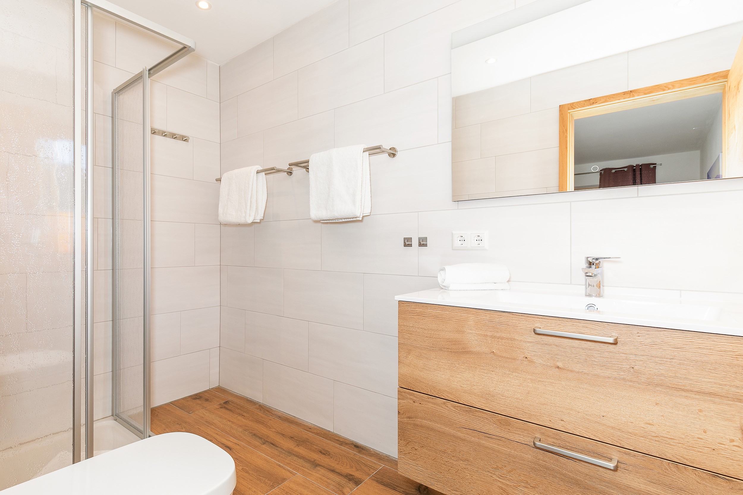 Mit ihren drei gemütlichen Schlafzimmern – zwei davon mit großzügigen 180 cm Doppelbetten, eines mit einem 160 cm Doppelbett – bietet die Wohnung Raum für bis zu 8 Personen. Ein Schlafzimmer ist mit einem eigenen Bad en suite ausgestattet, was zusätzlich für mehr Privatsphäre sorgt. Der großzügige Wohn- und Essbereich, in dem ein großer Esstisch und eine bequeme Couch zum Verweilen einladen, bietet einen Ort für gesellige Stunden oder entspannte Abende. Zwei moderne Bäder und ein Gäste-WC ergänzen den Komfort. Besonders verführerisch ist der große, möblierte Balkon, der zu jeder Tageszeit einen atemberaubenden Bergblick freigibt. Hier können Sie den Sonnenaufgang oder den Sonnenuntergang genießen – der Balkon ist sowohl vom größten Schlafzimmer als auch vom Wohnzimmer zugänglich und erstreckt sich nach Osten, Süden und Westen.
