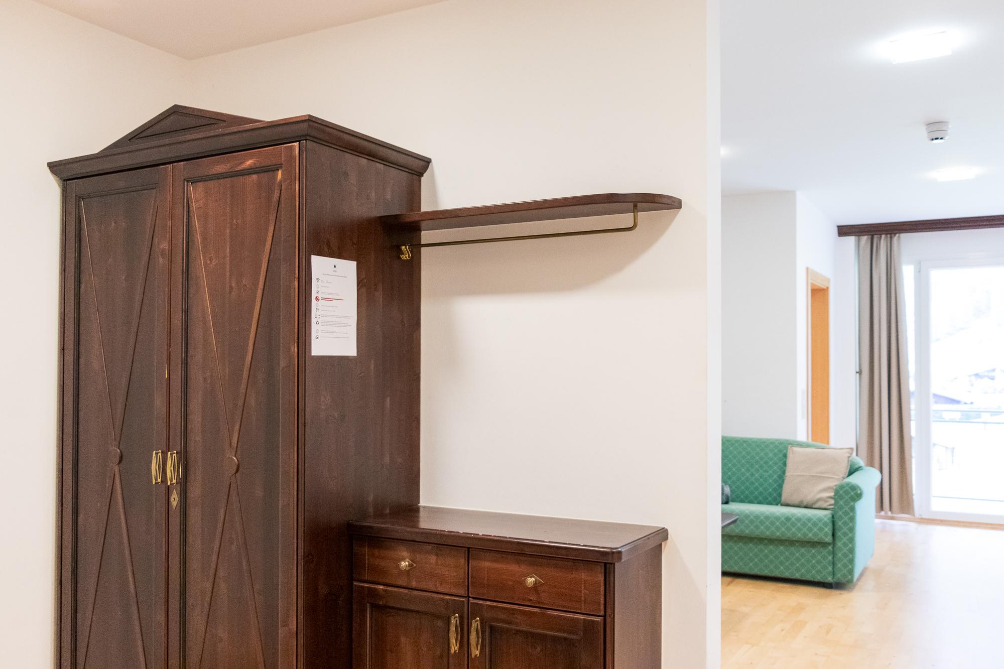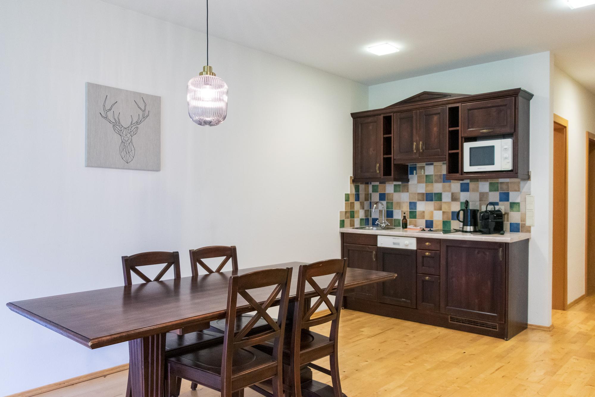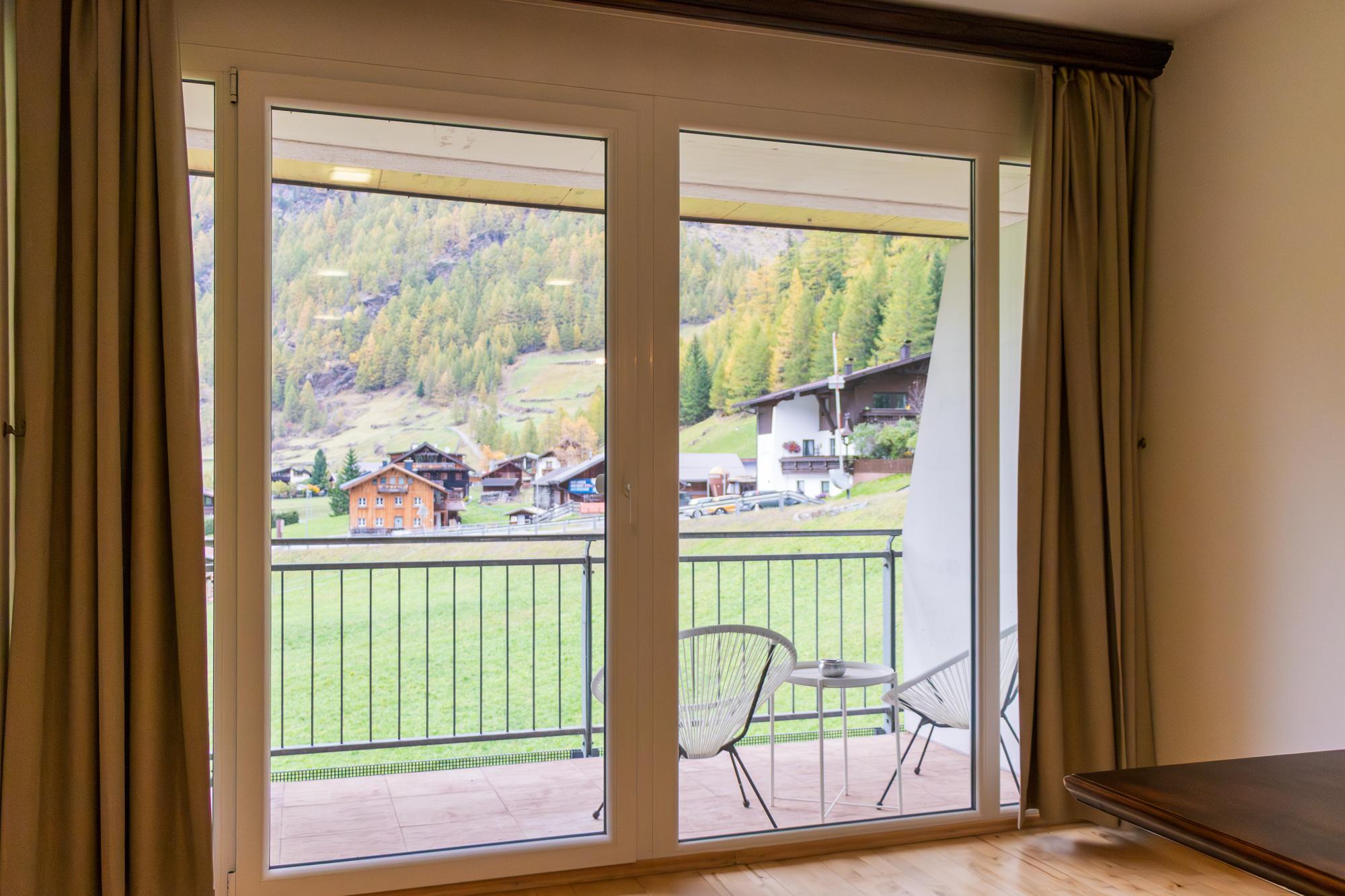 Das Apartment mit Balkon (ZW 12) mit ca. 58 m² besteht aus einem Doppelzimmer, einer vollausgestatteten Wohnküche (2 Platten Elektroherd, Wasserkocher, Kühlschrank, Geschirrspüler, Nespresso Kaffeemaschine uvm.) mit einem Schlafsofa für zwei Personen, 1 Badezimmer mit Badewanne und einem WC separat. Das einzigartige Bergpanorama kann auf dem möblierten Balkon genossen werden.