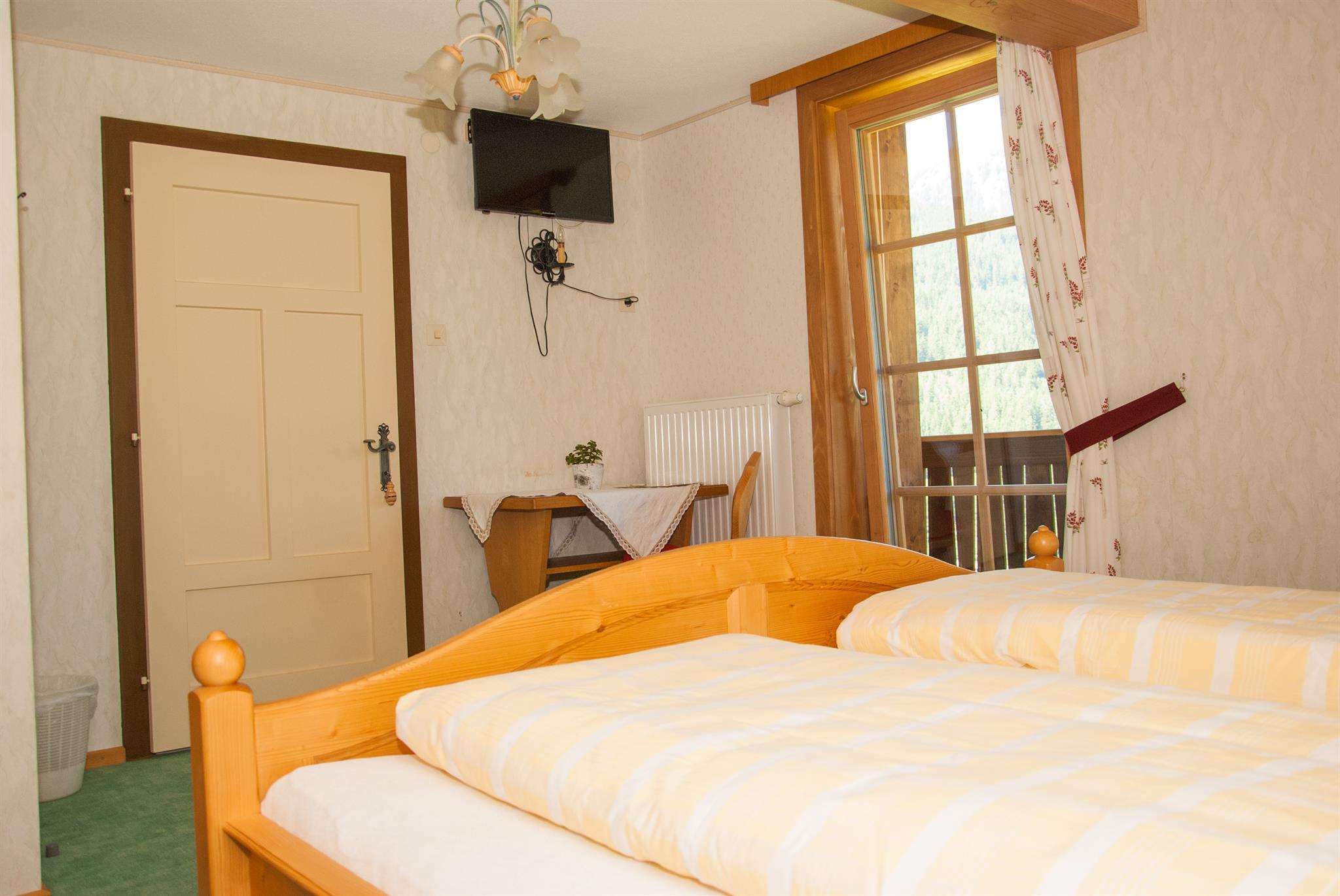 Stilvoll renoviertes und geschmackvoll eingerichtete Zimmer mit Vollholzmöbeln im ländlichen Stil. Nordseitiger Balkon - weiter Blick talauf- und abwärts, sowie mit DU/WC, Kühlschrank, Sitzecke und Sat-TV.
