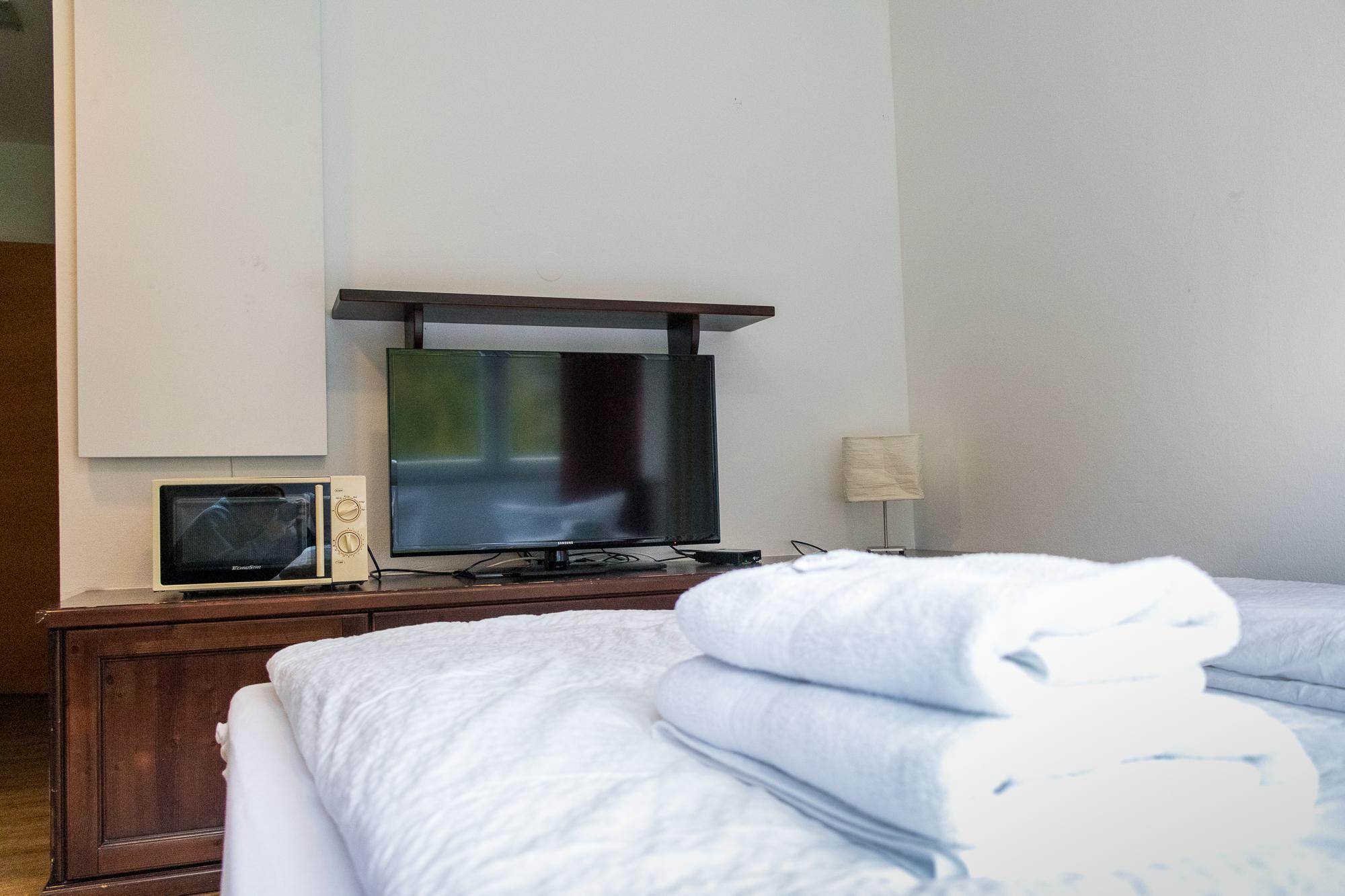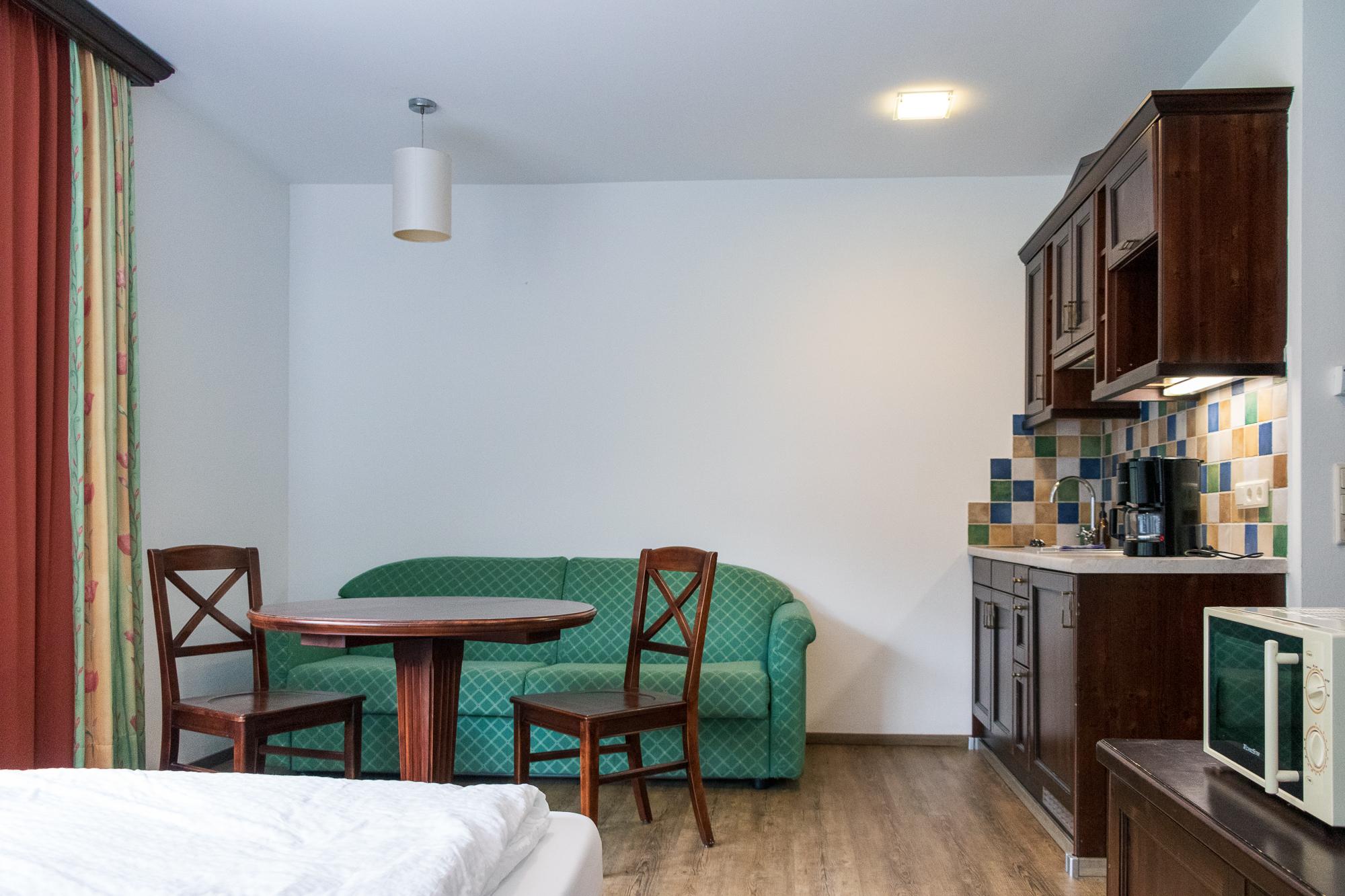 Das Studio mit Bergblick - inkl. Parkplatz # (ZW 1) mit ca. 32 m² besteht aus einem Doppelbett, einer vollausgestatteten Wohnküche (2 Platten Elektroherd, Wasserkocher, Nespresso Kaffeemaschine, uvm.) und einem 1 Badezimmer mit Dusche und WC. Das einzigartige Bergpanorama kann auf der möblierten Terrasse genossen werden.