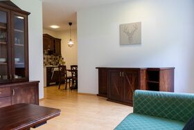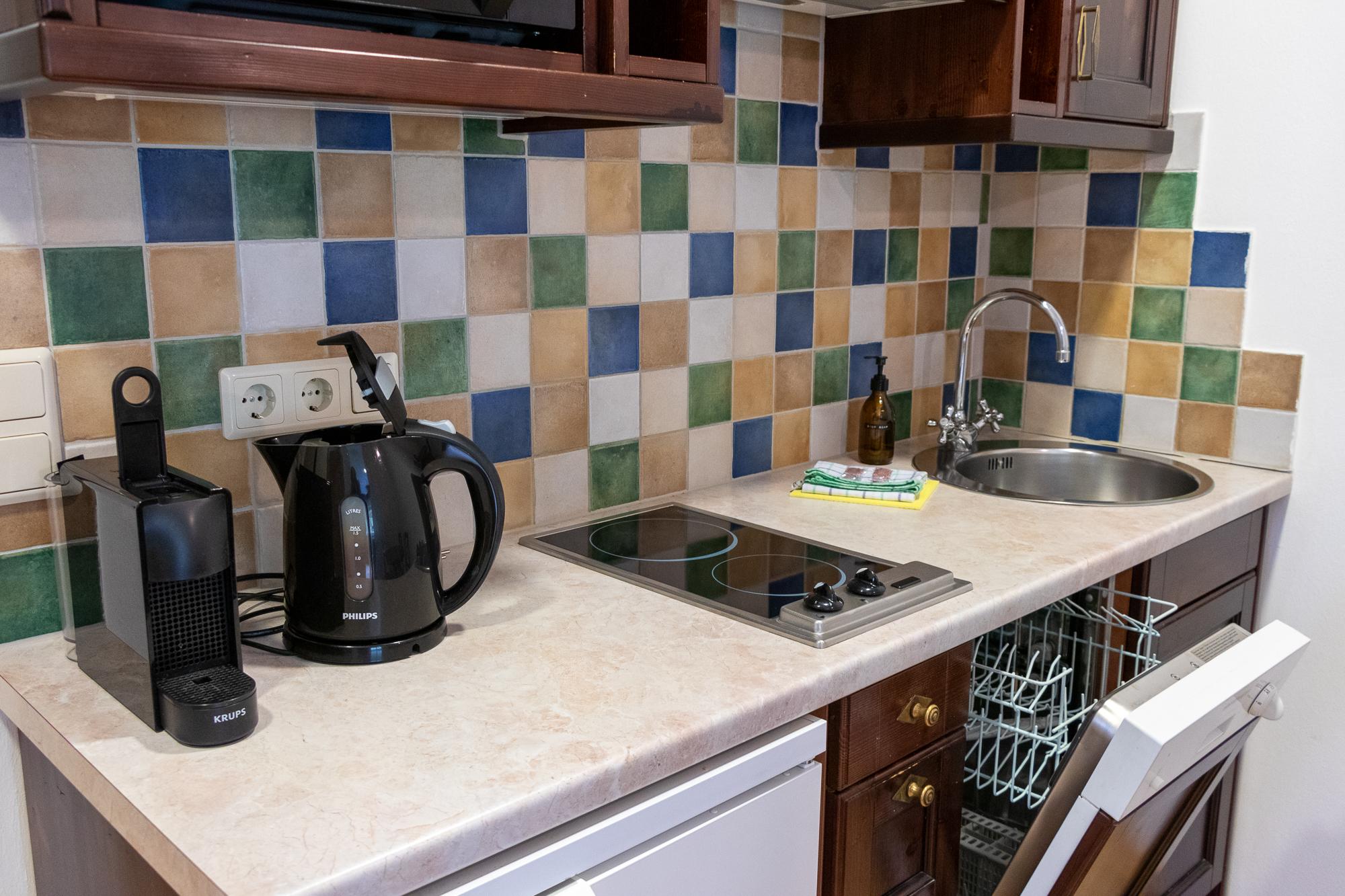 Das Standard Apartment (ZW 10) mit ca. 55 m² besteht aus einem Doppelzimmer, einer vollausgestatteten Wohnküche (2 Platten Elektroherd, Wasserkocher, Kühlschrank, Geschirrspüler, Nespresso Kaffeemaschine, Mikrowelle uvm.) mit einem Schlafsofa für zwei Personen, 1 Badezimmer mit Badewanne und einem WC separat.