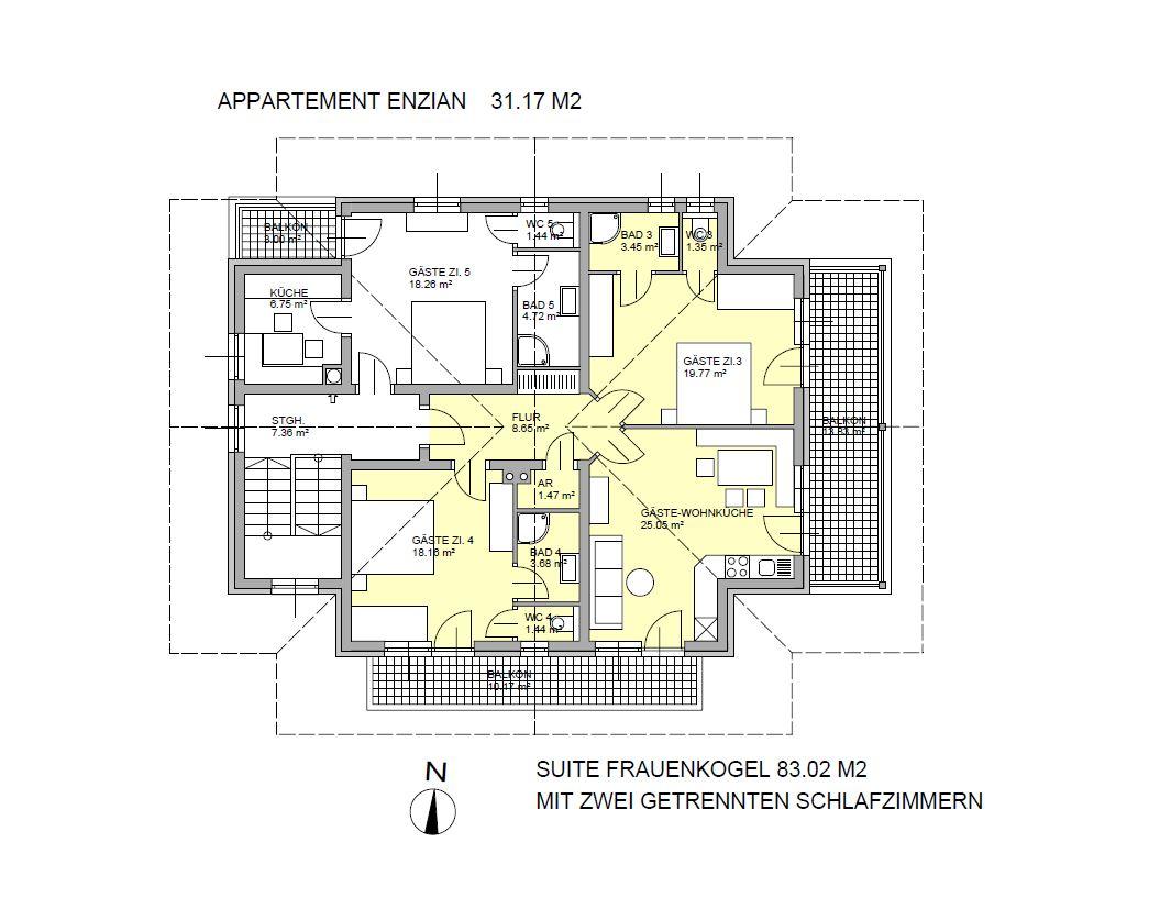 Sehr großzügig gestaltetes Appartement mit 2 getrennten Schlafzimmern sowie 2 separaten Bädern und 2 extra Toiletten. Eine komplett ausgestattete Küche. Pro Zimmer ein Balkon. Vorraum mit Garderrobe sowie ein Abstellraum für das Gepäck.