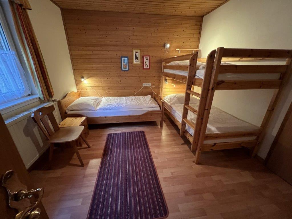 Unsere großzügigen Zimmer mit einer Größe von 32 m² bieten viel Platz für Ihren Aufenthalt. Sie bestehen aus zwei separaten Schlafzimmern: Im ersten Schlafzimmer finden Sie ein Doppelbett, im zweiten Schlafzimmer ein Einzelbett sowie ein Etagenbett – ideal für Familien oder kleine Gruppen.