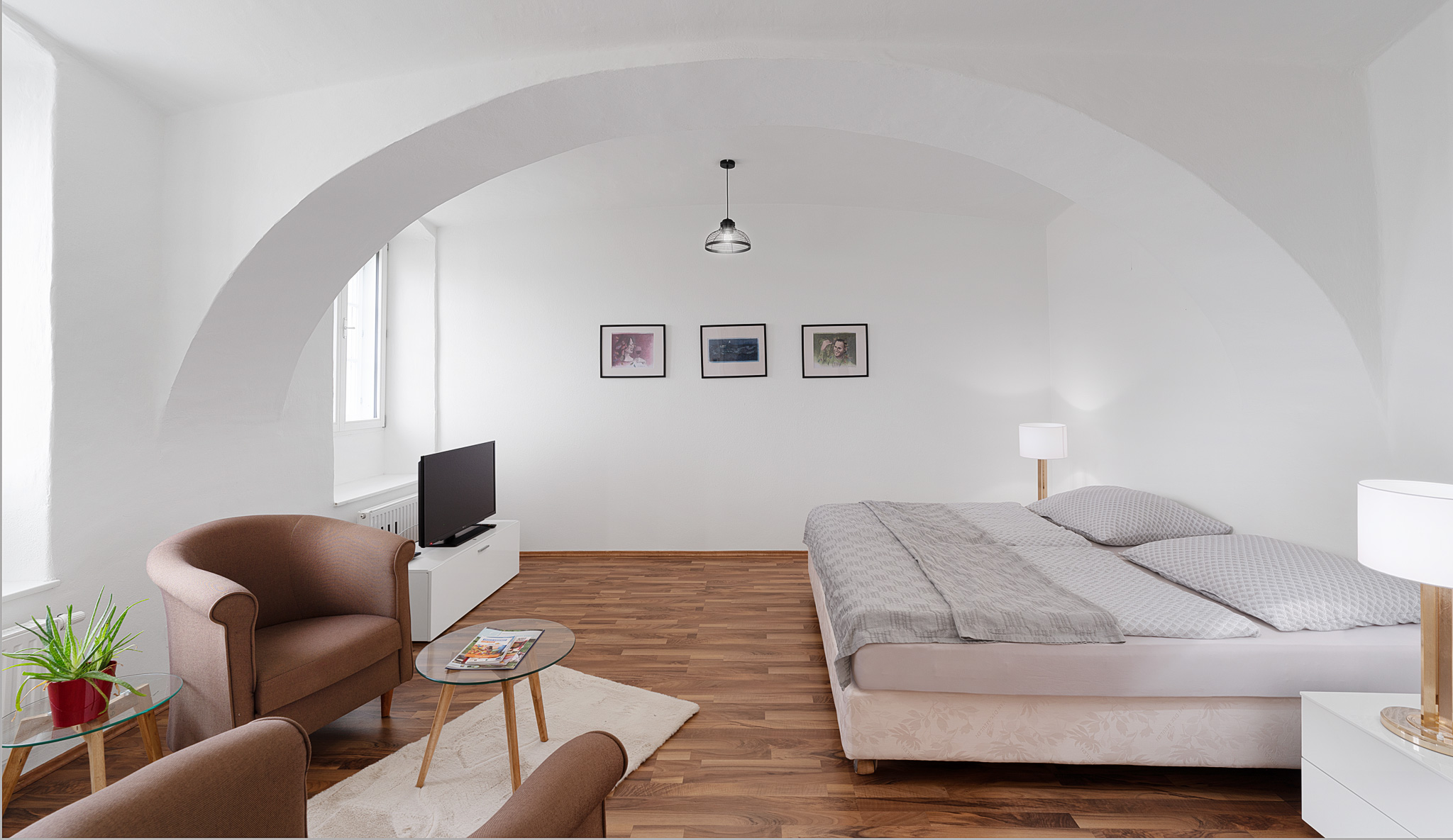 2022 entschied man sich, einige der historisch wertvollen Räume einem breiteren Publikum zugänglich zu machen und in eine kurzfristige Vermietung überzuführen. Es besteht daher im Gebäude eine Mischnutzung von bisherigen Mietwohnungen und Apartmentvermietung. Ein Gemeinschaftsgarten steht Ihnen zum Relaxen zur Verfügung.
