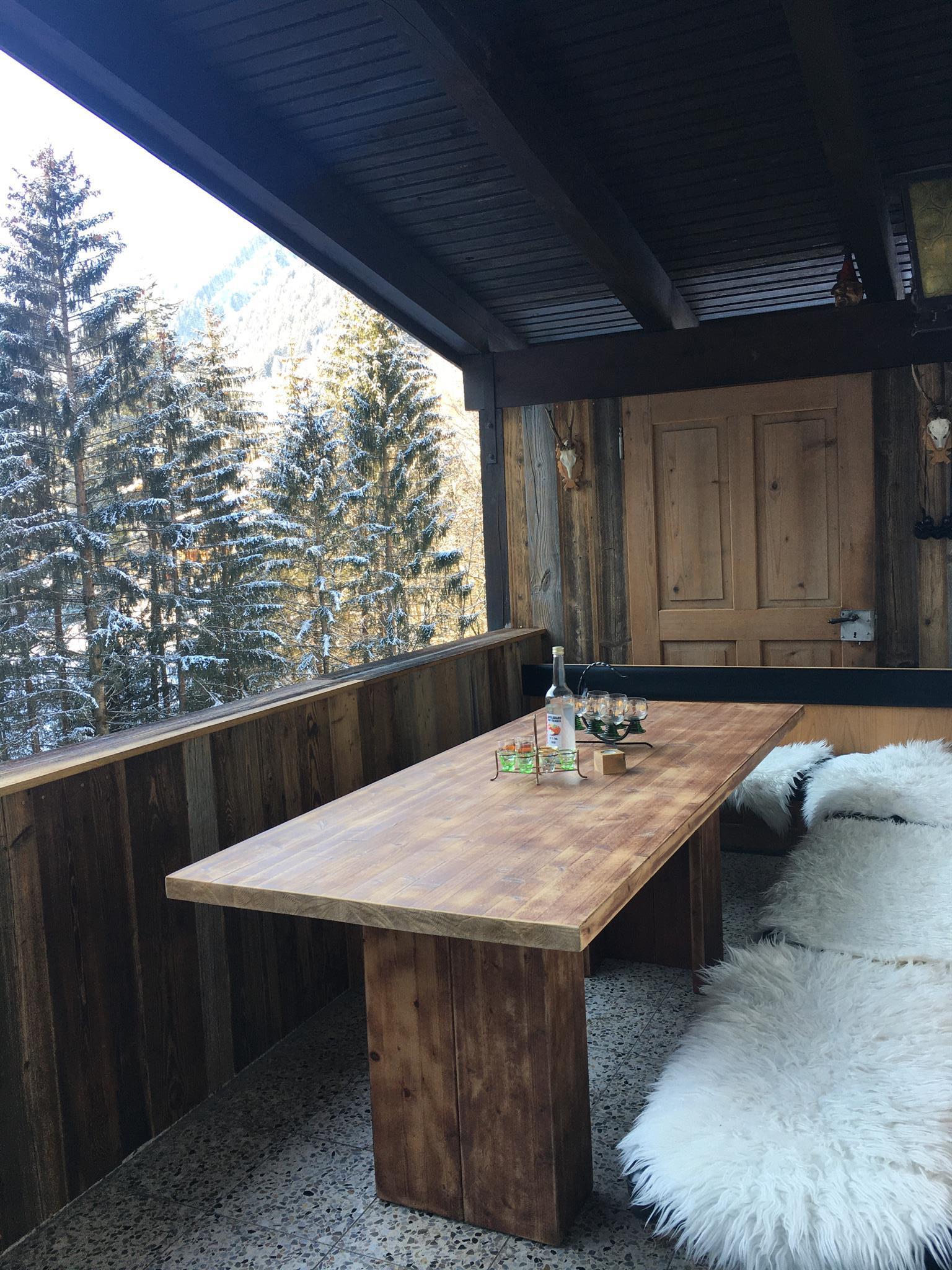 Genießt nach Eurer Wander-Bike- oder Skitour ein Après-Bierchen mit einer grandiosen Aussicht auf die Bergwelt auf dem großen Balkon, der zu Eurer alleinigen Benutzung ist.