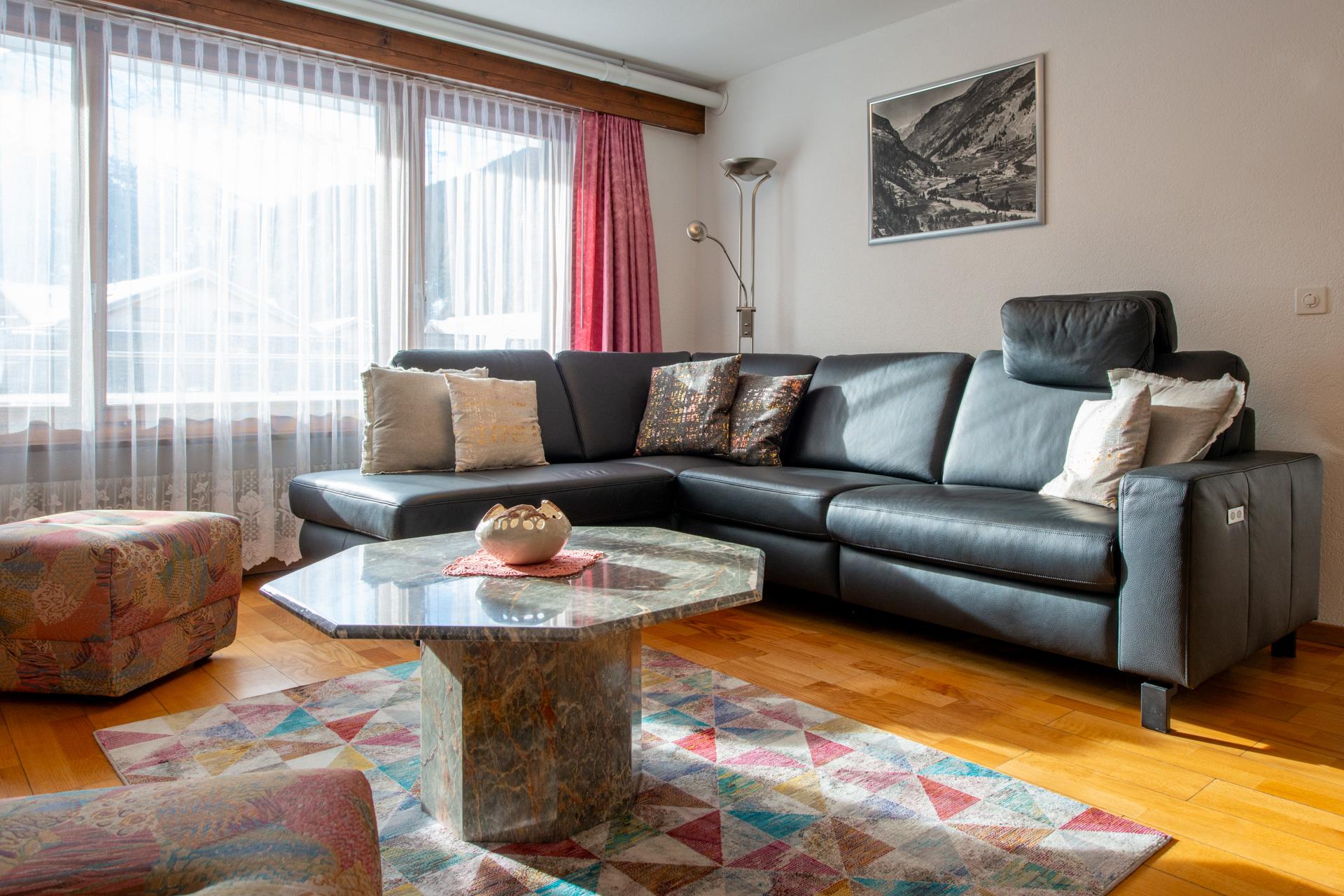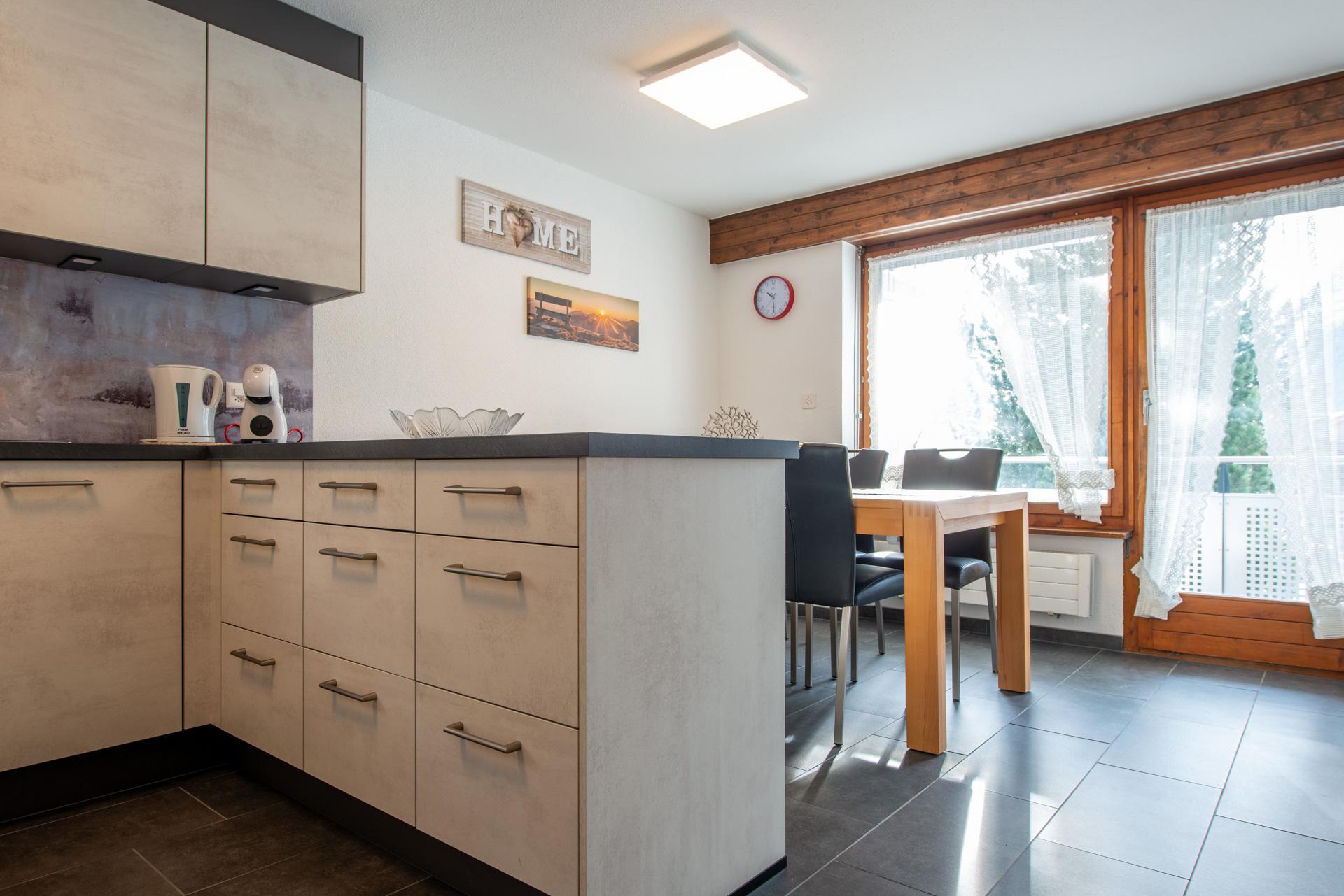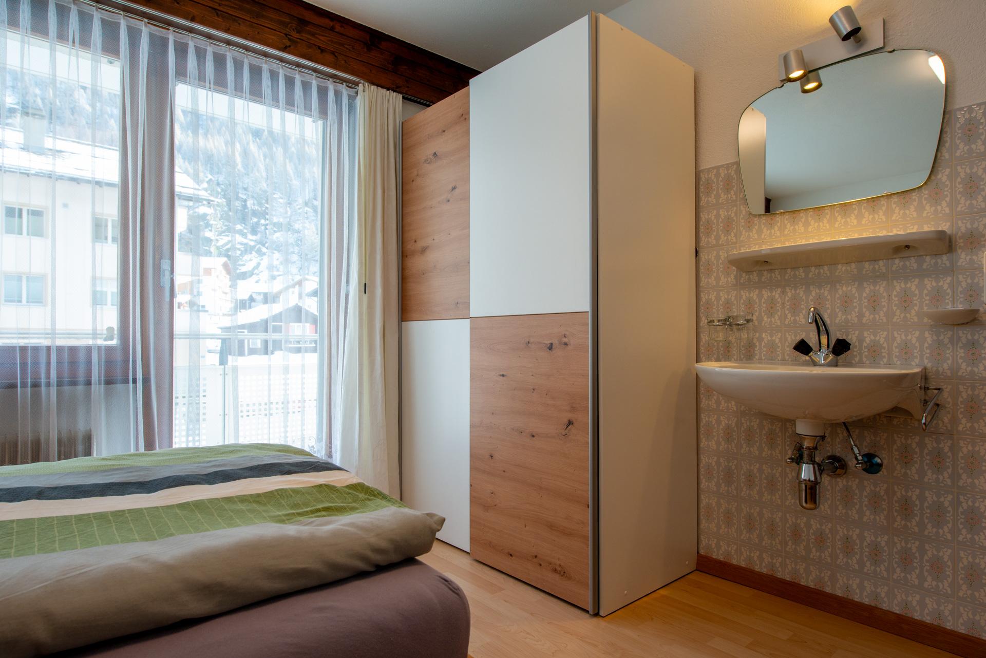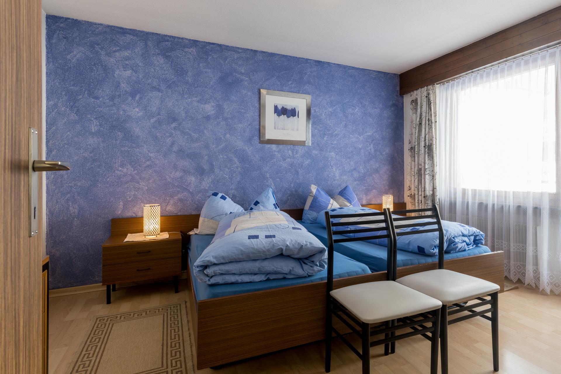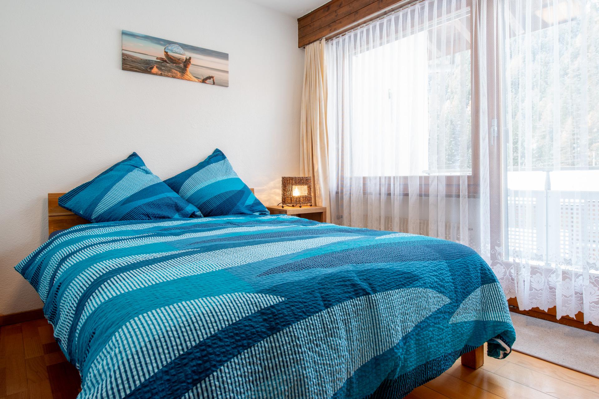 5 1/2 Zimmerwohnung für 1 bis 8 Personen an ruhiger Lage mit Parkplatz, grossem Rasenplatz und 3-seitigem Balkon mit Gartenmöbeln. Die Wohnung liegt im Dachgeschoss und verfügt über eine voll ausgestattete Küche mit Backofen, Herd, Mikrowelle, Geschirrwaschmaschine, Kühlschrank mit Gefrierfach, Filter-Kaffeemaschine und Kaffeemaschine Dolce Gusto, Raclette-Ofen und Fondue-Set.  Sehr grosses Wohnzimmer mit Satelliten-TV. 4 seperate Doppelschlafzimmer: 1 separates Schlafzimmer mit französischem Doppelbett (140x200cm), 2 separate Schlafzimmer mit je einem Doppelbett (200x200cm) und Lavabo, 1 separates Schlafzimmer mit einem Doppelbett (200x200cm). Badezimmer mit Dusche/WC sowie separates WC mit Lavabo.