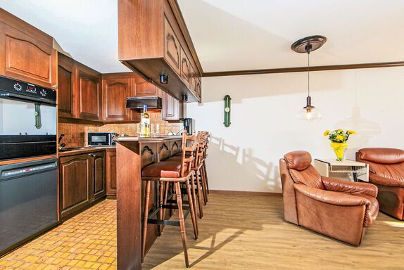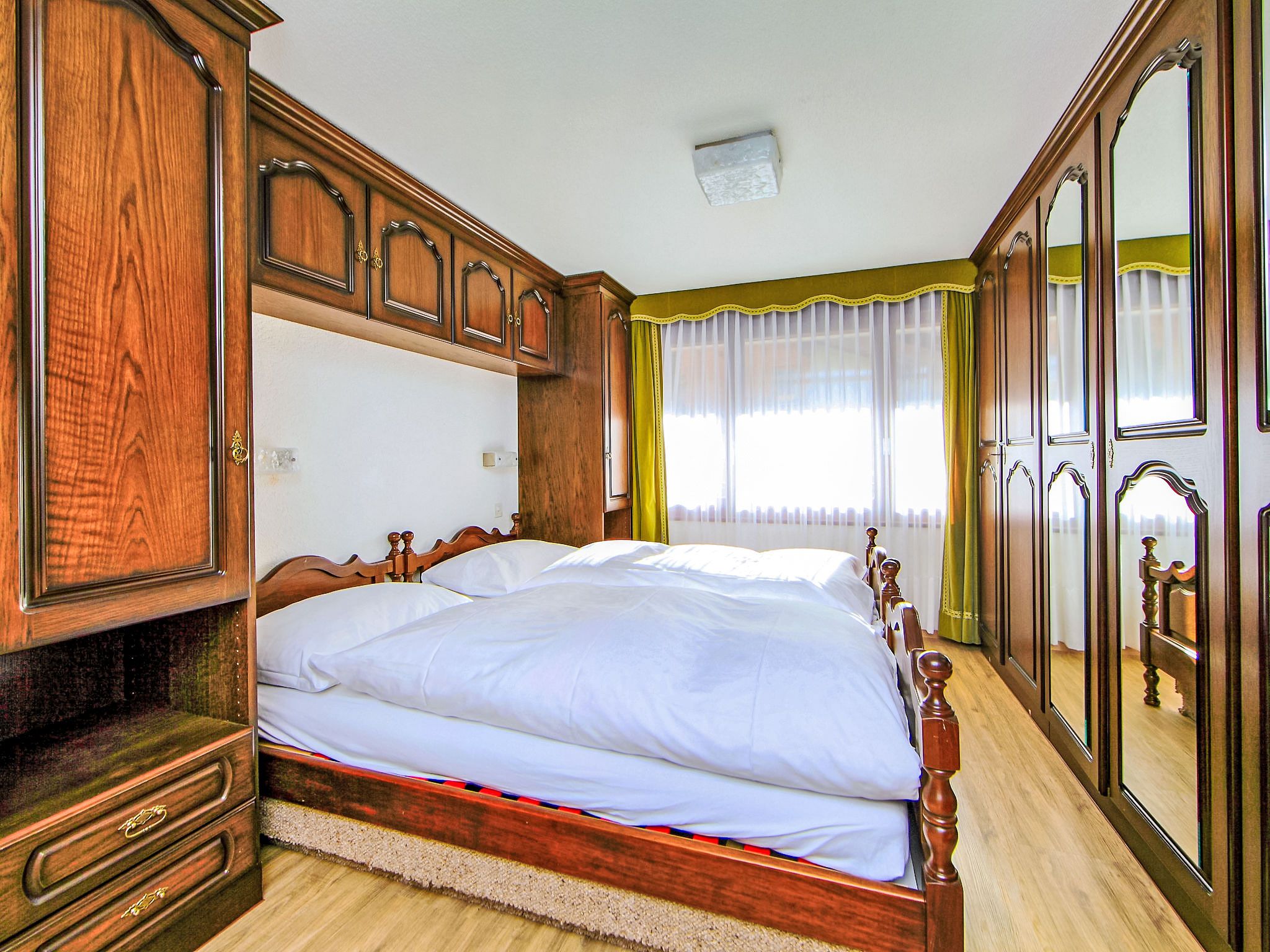 2-Zimmer-Wohnung 55 m2 im 2. Stock, Südlage. Einfach und gemütlich eingerichtet: Wohn-/Schlafzimmer mit 1 Diwanbett (160 cm, Länge 200 cm), Esstisch und TV. Ausgang zum Balkon. 1 Zimmer mit (Länge 200 cm), 1 Doppelbett (2 x 90 cm, Länge 200 cm). Offene Küche (Backofen, Geschirrspüler, 4 Glaskeramikplatten, Toaster, Wasserkocher, Mikrowelle, Tiefkühler, elektrische Kaffeemaschine, Fondue Set (Käse)). Bad/Dusche/WC. Balkon, Südlage. Balkonmöbel. Seitliche Sicht auf die Berge. Zur Verfügung: Haartrockner. Internet (Wireless LAN, gratis). Bitte beachten: Nichtraucher-Unterkunft.