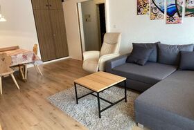 Gut möbilierte 2.5 Zimmer Wohnung mit separater Küche, TV, Radio-CD, ein Doppelschlafzimmer, ein grosses Sofabett im Wohnzimmer, Bad/WC . 58 m2