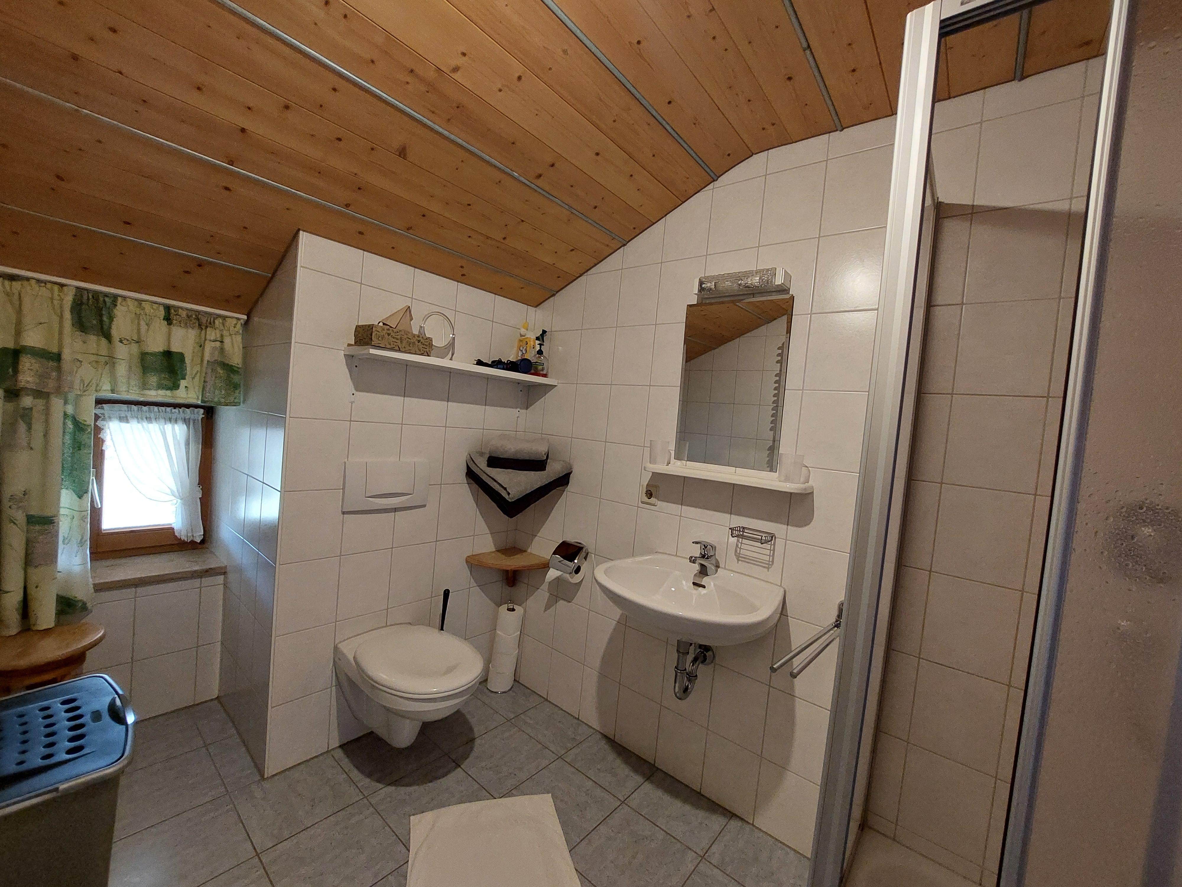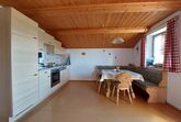 Genießen Sie die herrliche Aussicht auf dem möblierten Süd-West Balkon. Die Ferienwohnung ist gemütlich und komfortabel im ländlichen Stil eingerichtet. Die Ferienwohnung hat 2 getrennte Schlafzimmer und diese sind zur Wohnküche mit einem Flur getrennt. Ein Schlafzimmer ist mit Doppelbett, eines mit zwei große Einzelbetten. Die Wohnküche ist ausgestattet mit großer Essecke, Schlafcouch für 2 Personen, TV, einer Küchenzeile mit Spülmaschine, Kühl-Gefrierschrank, Micro, Toaster und Wasserkocher. Das Badezimmer verfügt über Dusche und WC. WLAN verfügbar.