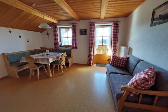 Unser Bauernhof liegt ruhig mit Panoramablick auf die Alpenkette. Die Ferienwohnung befindet sich im Nebenhaus im OG mit Balkon und lädt Sie ganzjährig zu einem erlebnisreichen Urlaub ein. Der Ortsteil Ostern nahe dem Illasbergsee ist einer der vielen idyllisch gelegenen Weiler der Gemeinde Halblech. Traumhafte Südhanglage und herrlichen Blick auf die Alpenkette. Erholen und entspannen Sie sich bei Fahrradtouren, Wanderungen und Natur pur. Ab Haus gibt es viele Möglichkeiten zum Radeln und Wandern. Sei es ein Spaziergang oder eine Klettertour, es ist für jeden etwas dabei. Sie erwartet ein für die Region typischer Allgäuer Bauernhof. Der landwirtschaftliche Familienbetrieb bewirtschaftet einen Grünlandbetrieb mit Milchviehhaltung. Wir freuen uns auf Ihren Urlaub bei uns.