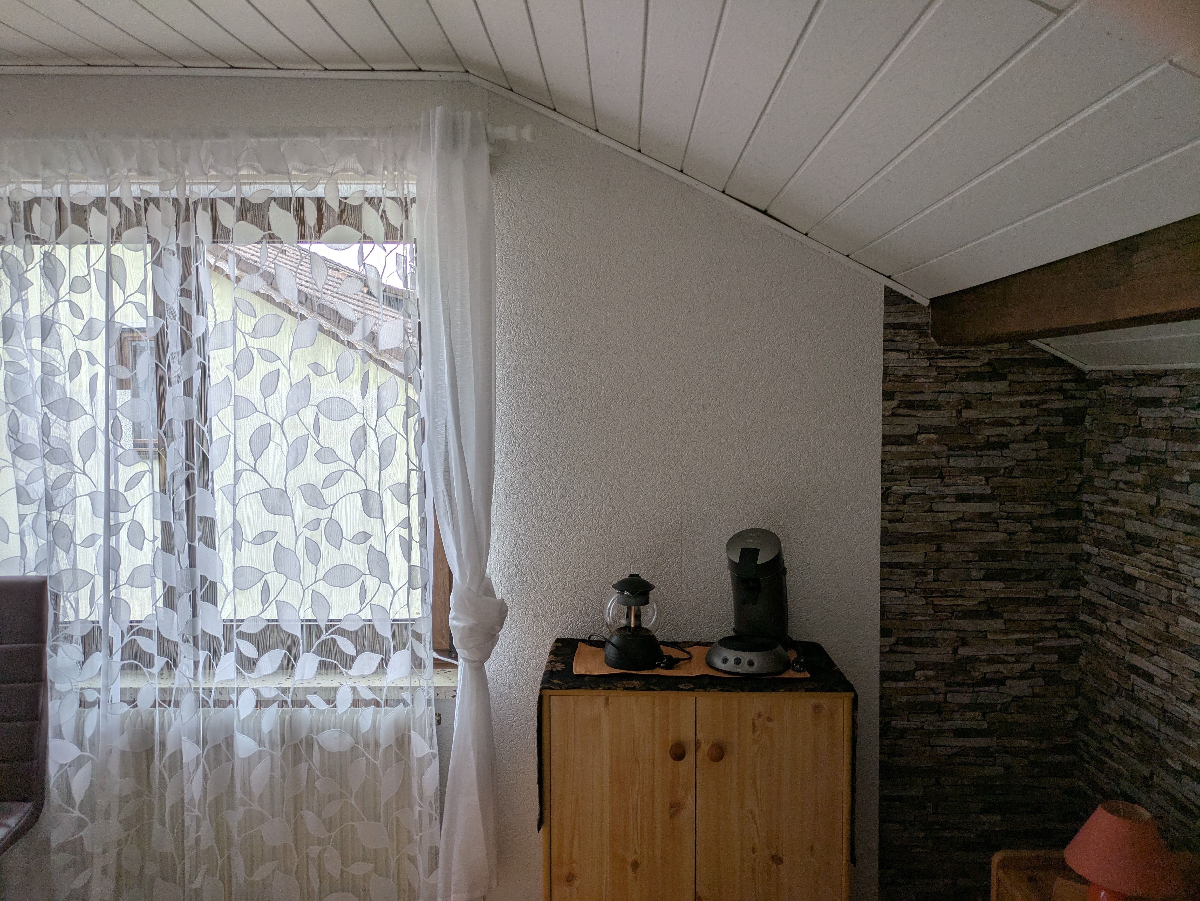 Ausserdem besteht die Möglichkeit sich Kaffee mit einer Senseo Maschine oder Tee mit einem Wasserkocher zuzubereiten. Auch entsprechenes Geschirr ist vorhanden. Zusätzlich gibt es einen Kühlschrank für Lebensmittel und Getränke.