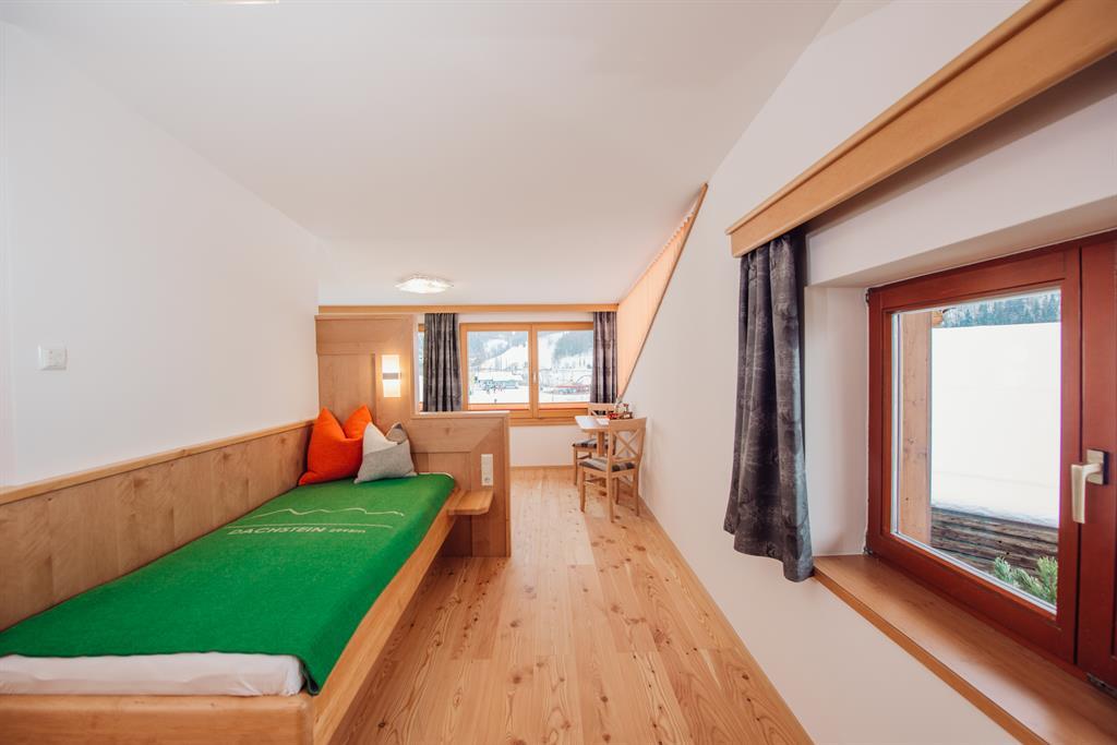 Schlafzimmer für 1-3 Pers. Dusche / WC, Haarföhn, großes Sichtfenster zum Dachstein
