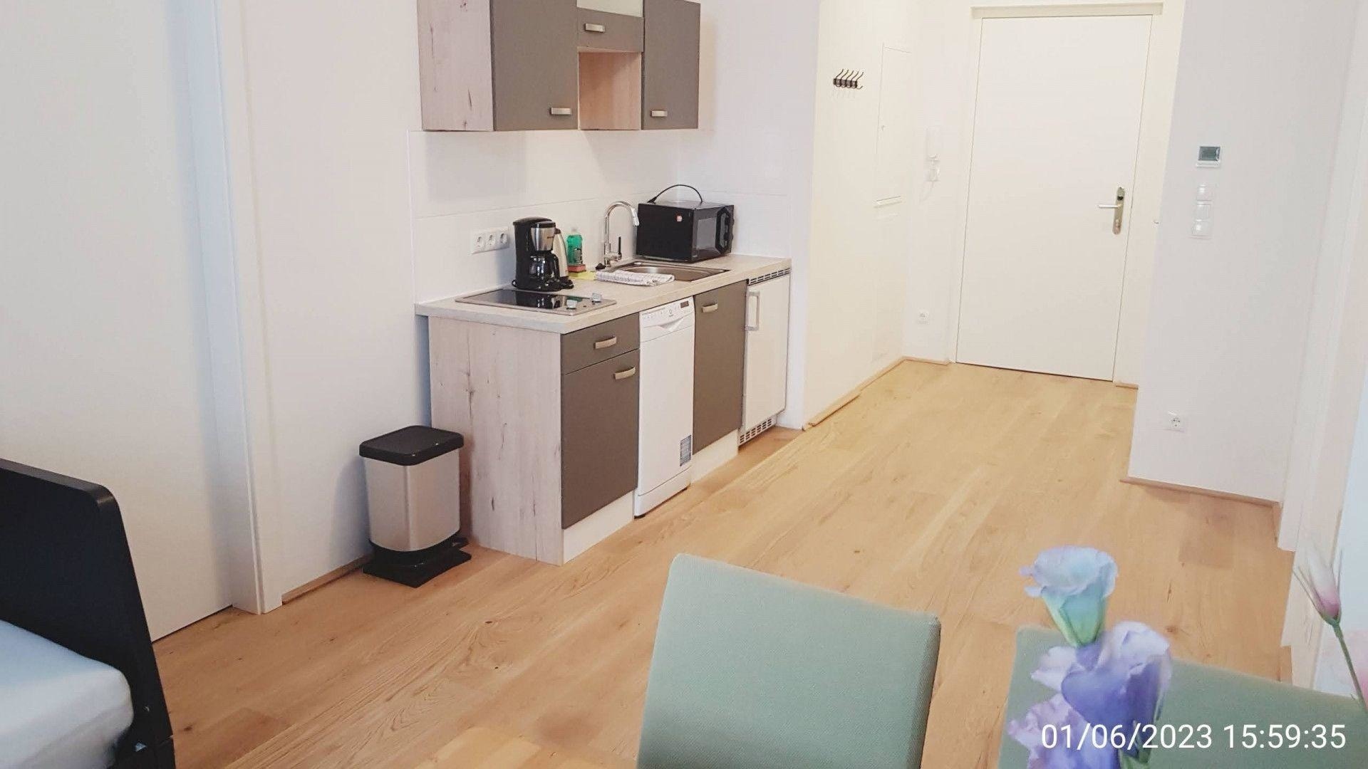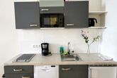 Die Küchenzeile ist voll ausgestattet inkl. Kaffeemaschine, Geschirrspüler, Mikrowelle und Kühlschrank. Sogar eine Waschmaschine steht im Apartment für Sie bereit (Badezimmer).