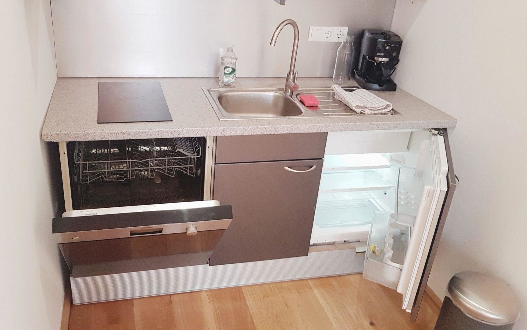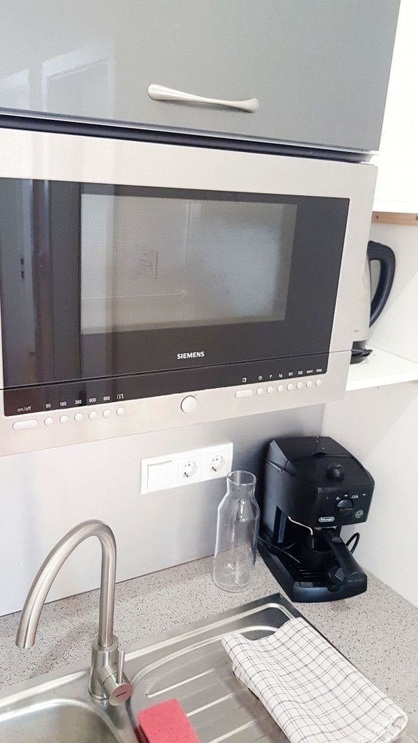 Weiters bietet das Apartment neben dem Badezimmer mit bodentiefer Dusche eine vollausgestattete Küche mit Herd, Mikrowelle, Kaffeemaschine und auch Geschirrspüler.