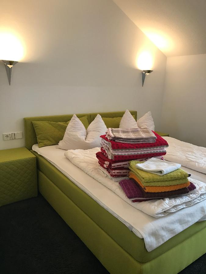 Komfortables Wohlfühlappartement grün-schwarz ausgestattet mit zwei sep. Schlafräumen mit jeweils zwei Boxspringbetten, neue Küche mit Spülmaschine und neu ausgestattetes Badezimmer, Wohnküche mit großzügigem Sofa und kleiner Essecke, Sat-TV und Balkon Richtung Regenseite, freier Eintritt für 2 Personen in die Bade- und Saunawelt AQACUR, ca. 3-4 Gehminuten entfernt, die 3. und 4. Person erhalten mit der Gästekarte Nachlass auf den Eintritt ins AQACUR