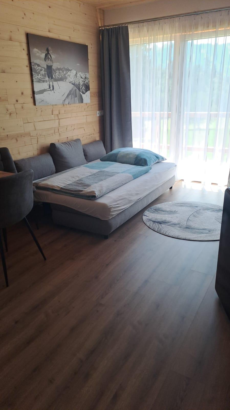 Das Appartement verfügt über eine Wohnküche, ausgestattet mit den wichtigsten Kochutensilien ein separates Schlafzimmer sowie ein großzügiges Badezimmer mit Dusche und WC.
