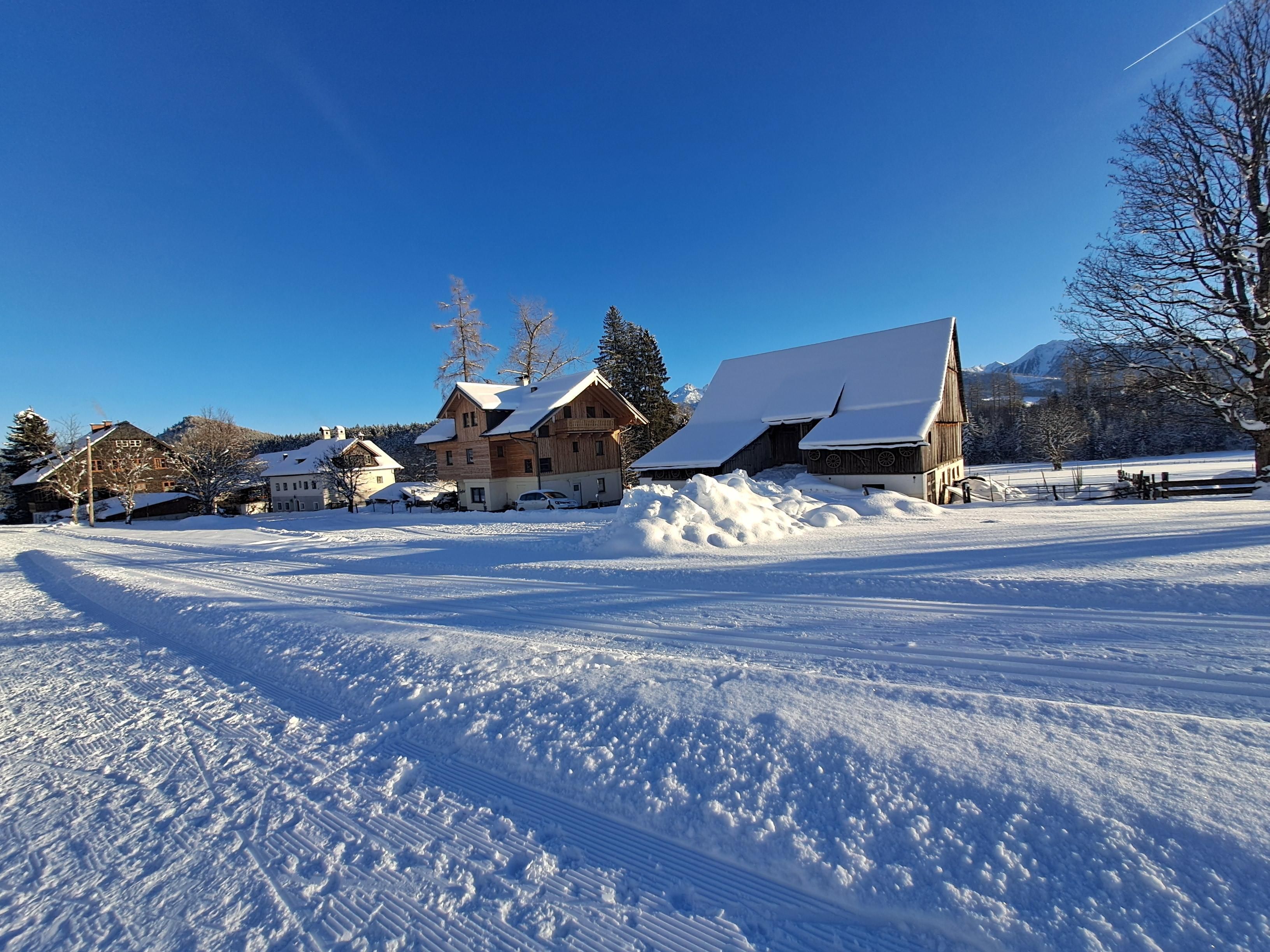 Im Winter liegt der Einstieg in das Loipen- und Winterwanderwegenetz direkt vor der Haustüre. Und auch die familienfreundlichen Skipisten der Ramsau sind nur einen Katzensprung entfernt. Im Herzen von Ski amadé gelegen, fahren Sie mit dem Auto oder Skibus in nur 15 Minuten zur 4-Berge Skischaukel Hauser Kaibling, Planai, Hochwurzen, Reiteralm und auf den Dachstein-Gletscher. Die schneesicheren Pisten in Ramsau und der Region Schladming-Dachstein werden Sie begeistern. Für alle, die es gemütlicher angehen möchten, organisieren wir eine romantische Pferdeschlittenfahrt mit unserem eigenen Gespann.