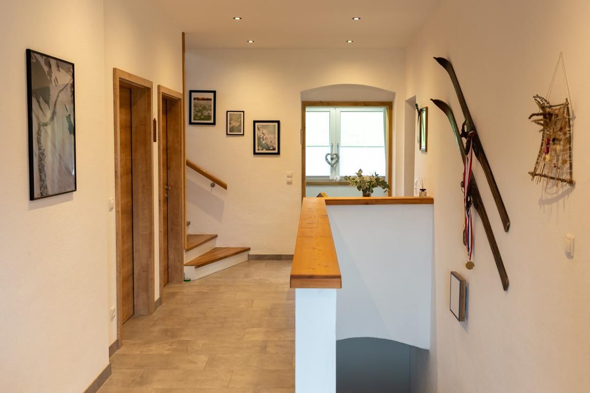 Über den gemeinsam genutzten Stiegenaufgang erreichen Sie die modern eingerichtete Wohneinheit. Diese besticht duch den gemütlich-alpinen Stil mit vielen Holz-Elementen.