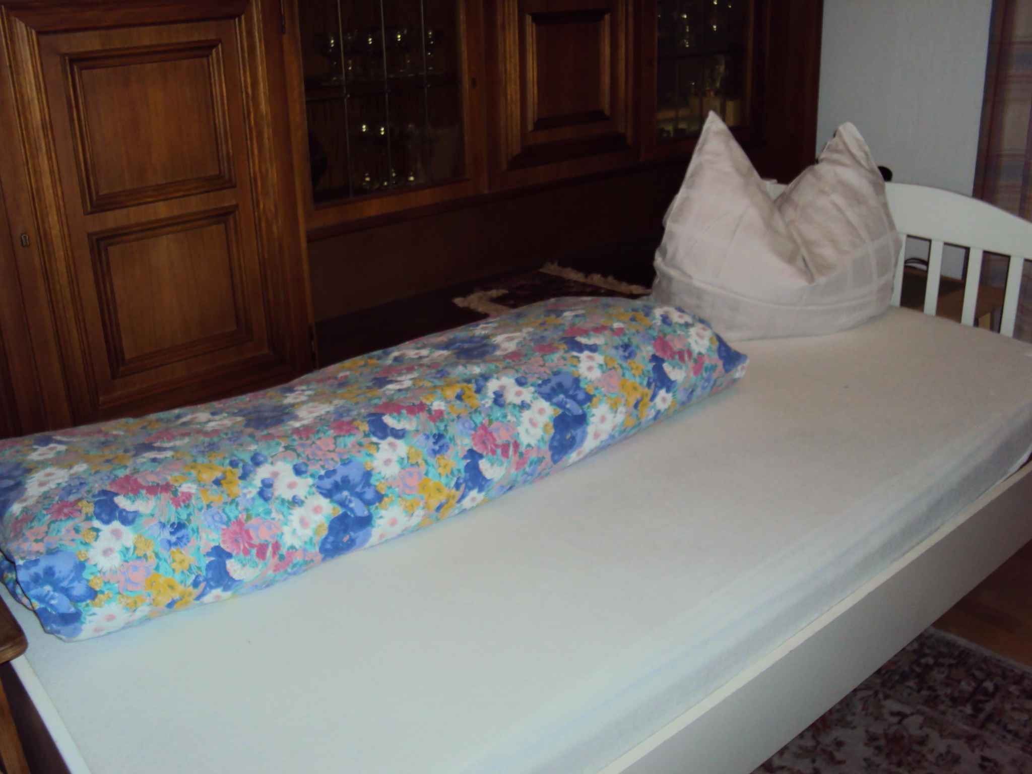 Ihr Ferienhaus hat 1 Etage, 3 Zimmer (davon 1 Schlafzimmer), ist 85 qm groß und ist für maximal 4 Personen geeignet. An kälteren Tagen kann Ihr Ferienhaus beheizt werden mit Zentralheizung. Der Eingang führt über eine Innentreppe direkt in den Flur. Im Erdgeschoss befinden sich Garagen des Vermieters. Die Zimmer teilen sich wie folgt auf: Wohnküche mit Essecke. Wohn/Schlafzimmer mit 1 Einzelbett, Sitzecke und TV. Sie haben Zugang zum Balkon mit Gartenmöbeln. Schlafzimmer mit 1 Doppelbett und 1 Zusatzbett. Küche mit Elektroherd, Backofen, Kühlschrank, Mikrowelle, Kaffeemaschine, Toaster und elektrischem Wasserkocher. Bad mit mit Duscheinrichtung, Dusche, WC, Föhn und Waschmaschine. Abstellraum Darüber hinaus ist Ihr Ferienhaus mit WLAN- Internetzugang und Kinderspielzeug ausgestattet. TV- bzw. Rundfunksender können per Satellit empfangen werden.