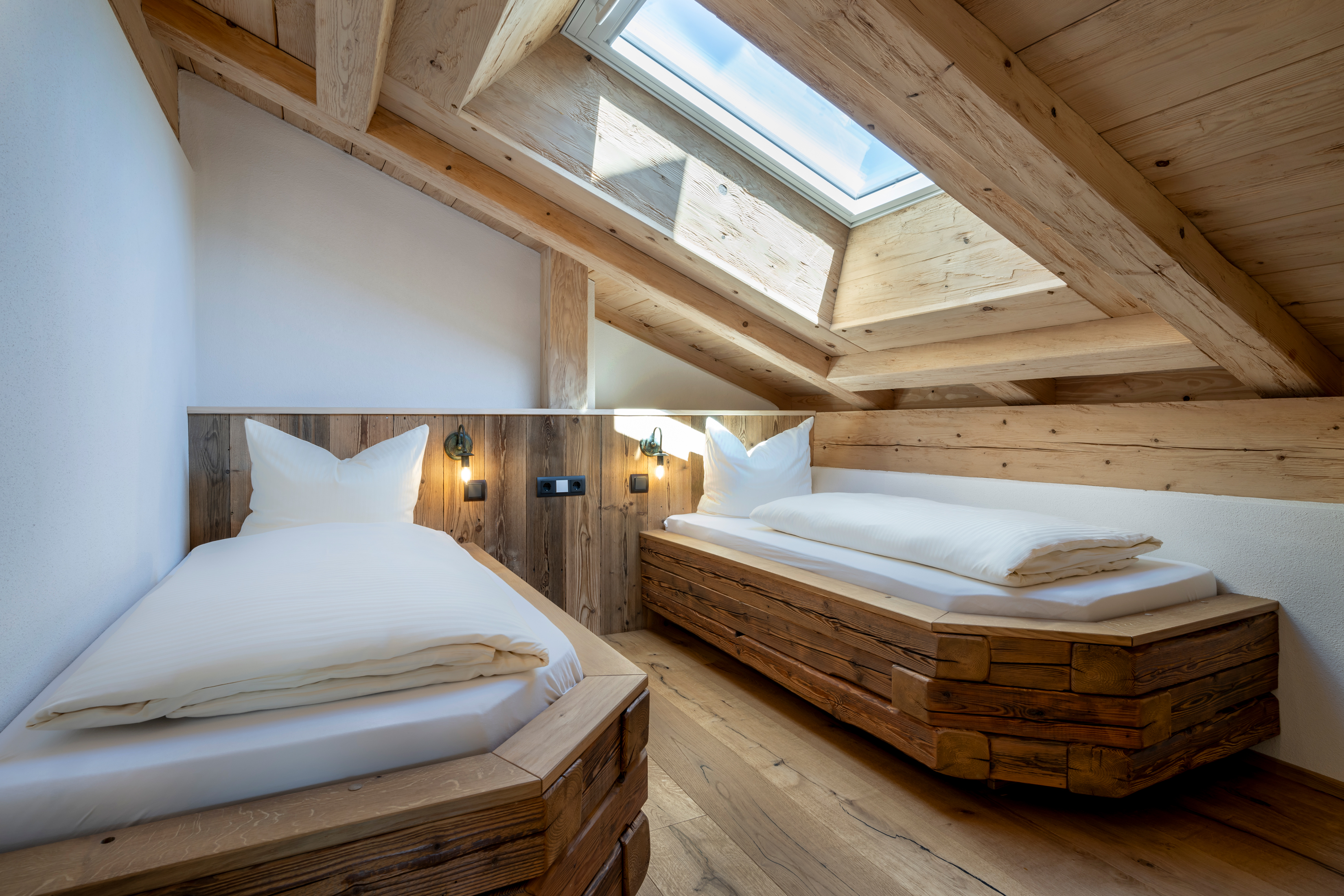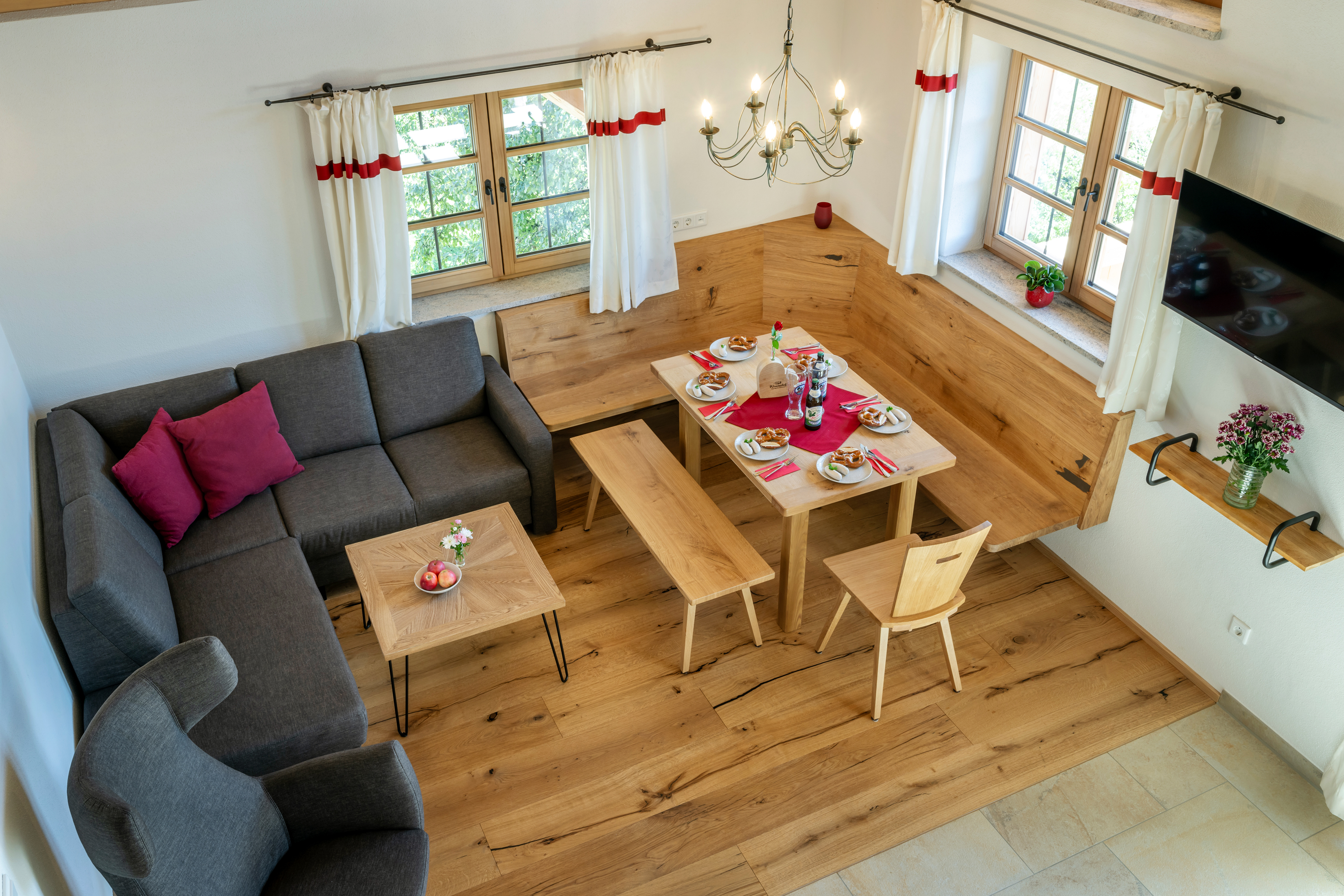 Sie haben die Möglichkeit, in einer unserer neuen 5-Sterne-Luxus-Wohnungen zu wohnen. Hier trifft modernste Ausstattung auf uriges, rustikales Ambiente. Die exklusive, 2-stöckige Maisonetten-Wohnung Watzmann ist ähnlich eingerichtet wie unser Apartment Kampenwand und belegt 100 m² der ersten Etage.