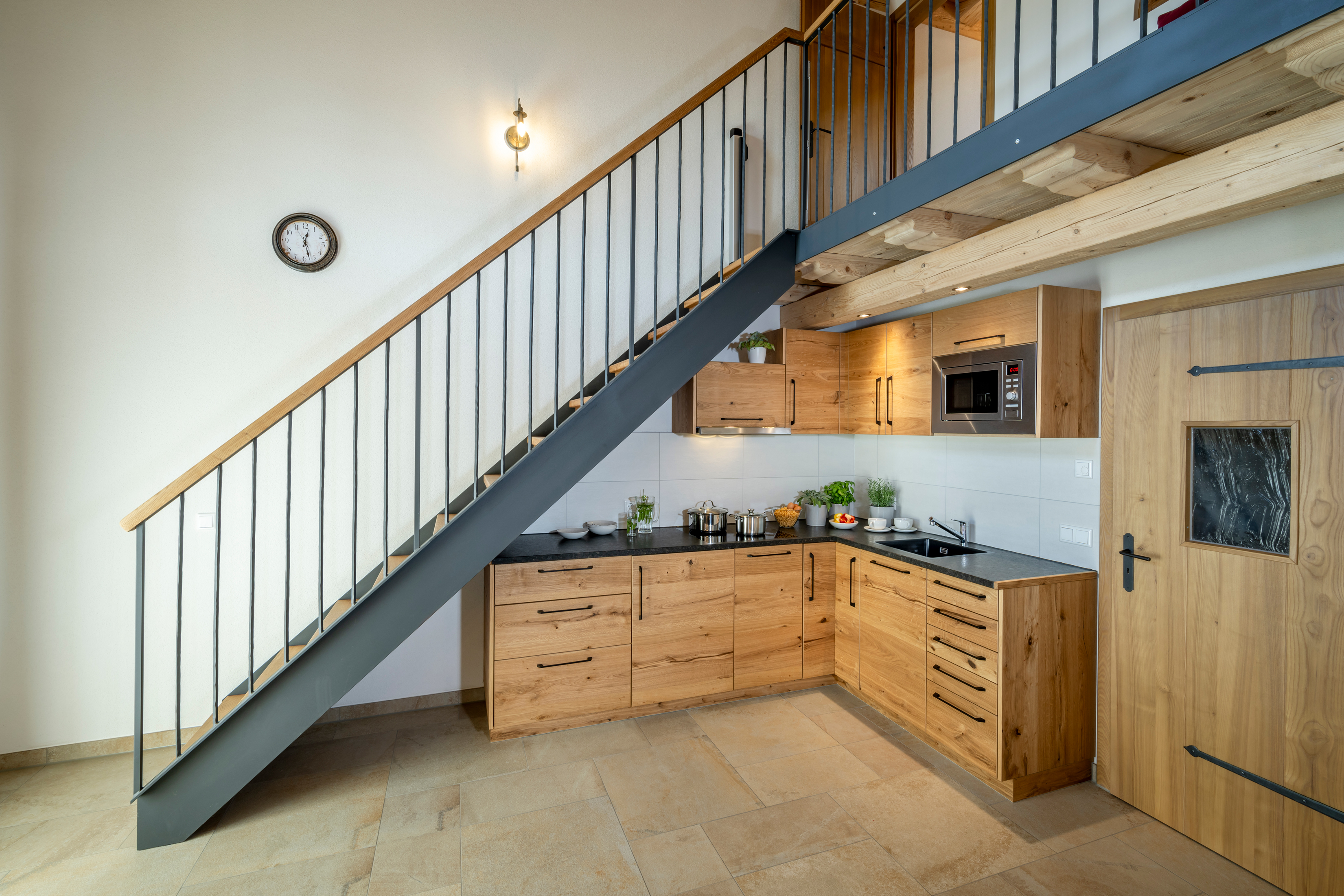 Im unteren Bereich befinden sich der Eingangsbereich mit Garderobe, 2 Schlafzimmern, zwei Bäder mit DU/WC sowie ein großzügiger, wohliger Wohn- und Essbereich mit erstklassig ausgestatteter Küchenzeile. Das 3 Schlafzimmer ist in einer Galerie im oberen Teil untergebracht und durch eine kindersichere Treppe zu erreichen. Ihre Wohnung verfügt über zwei separate Balkone, auf denen Sie ganz ungestört entspannen und das herrliche Panorama mit freiem Blick in die Berge genießen können.
