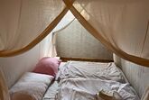 Elektrisches Licht ist vorhanden, jedoch gibt es keine Steckdosen. Die Nachttischlampen werden solar betrieben.