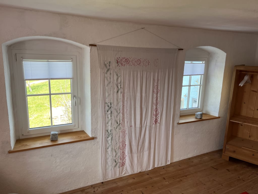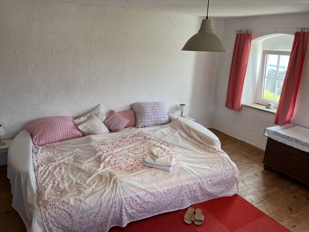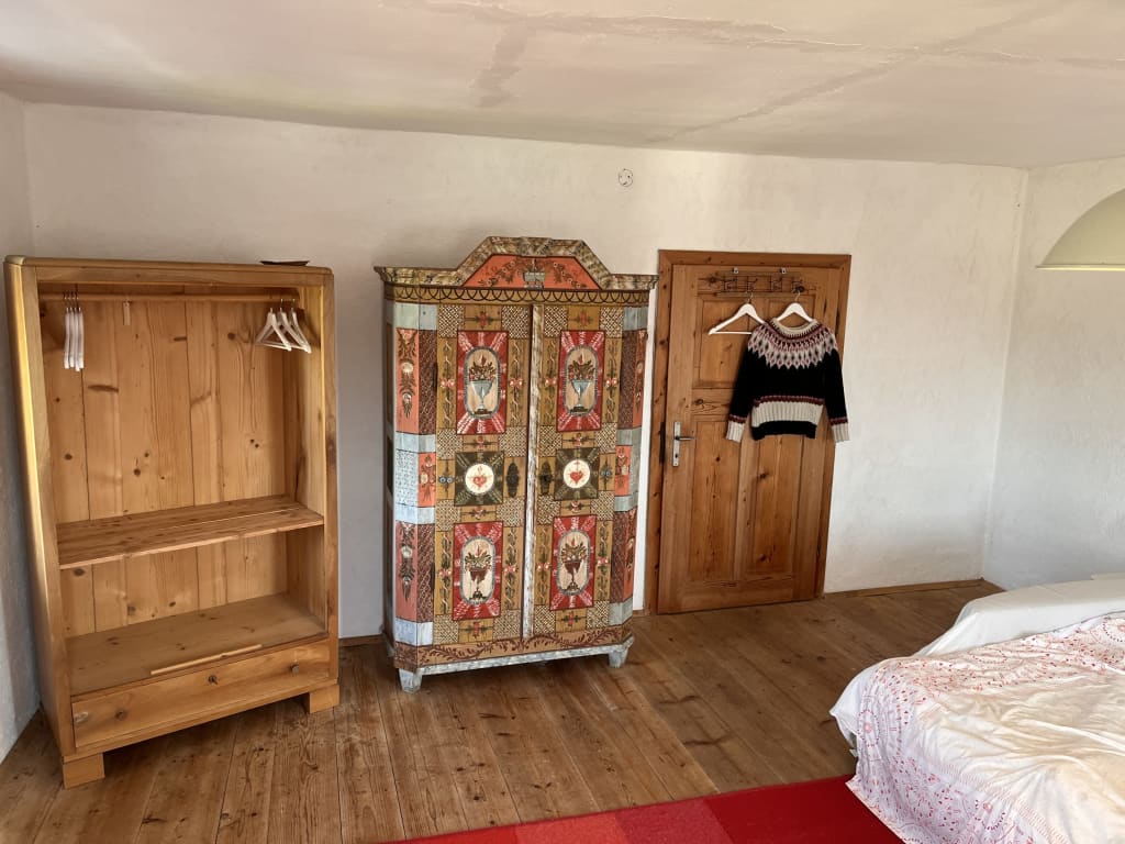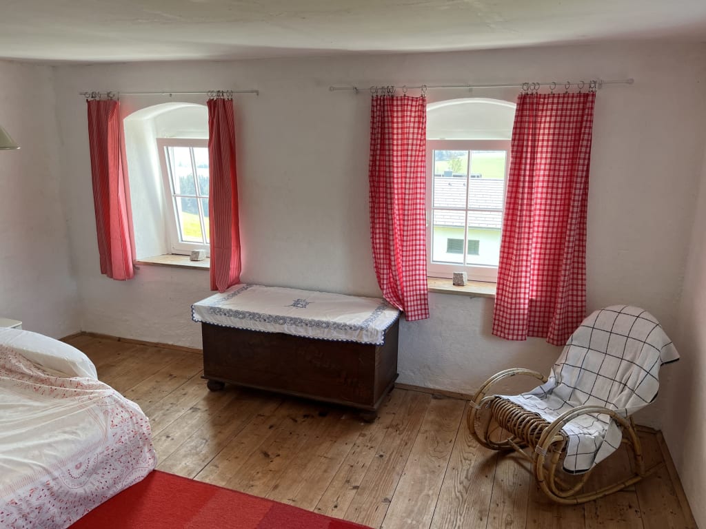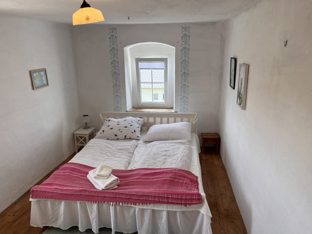• Schlafzimmer 2 (ehemalige Troadkammer): Boxspringbett (2 m x 2 m), Ostseite, kleines Fenster, kühl und schattig