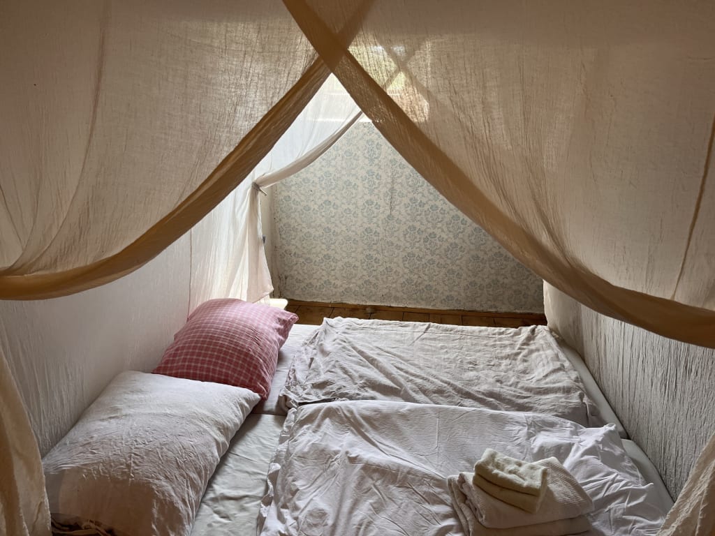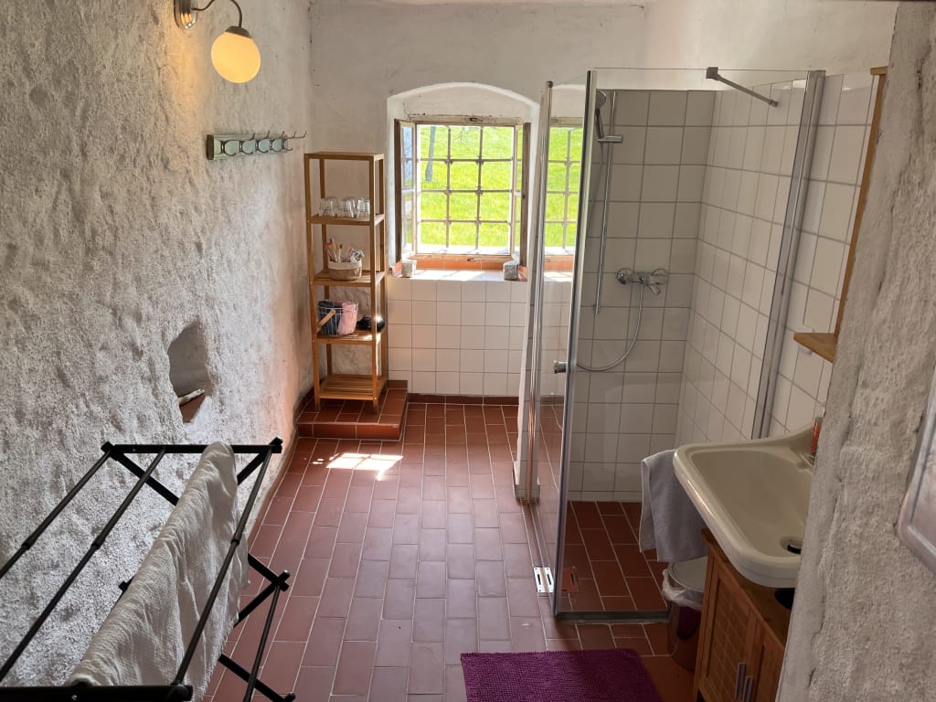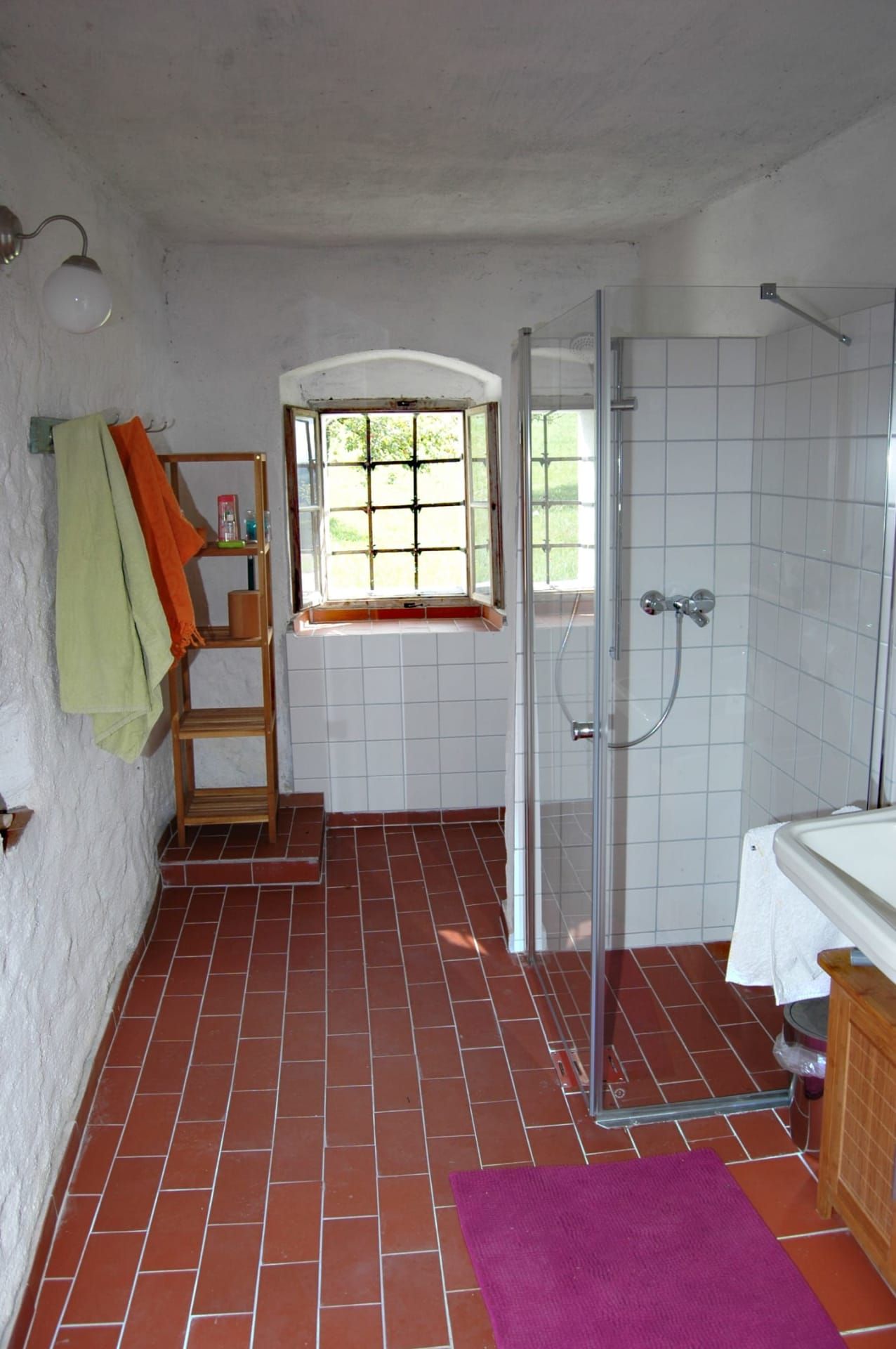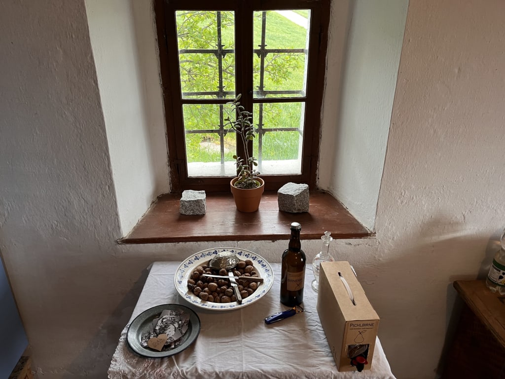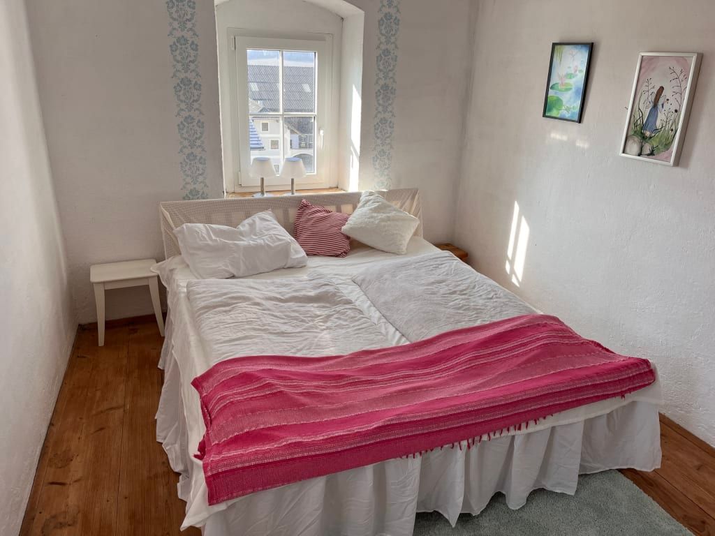 • Schlafzimmer 2 (ehemalige Troadkammer): Boxspringbett (2 m x 2 m), Ostseite, kleines Fenster, kühl und schattig